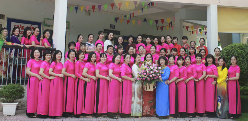 Ảnh Tập thể CBGVNV trường Mầm non Họa Mi trong tà áo dài thướt tha