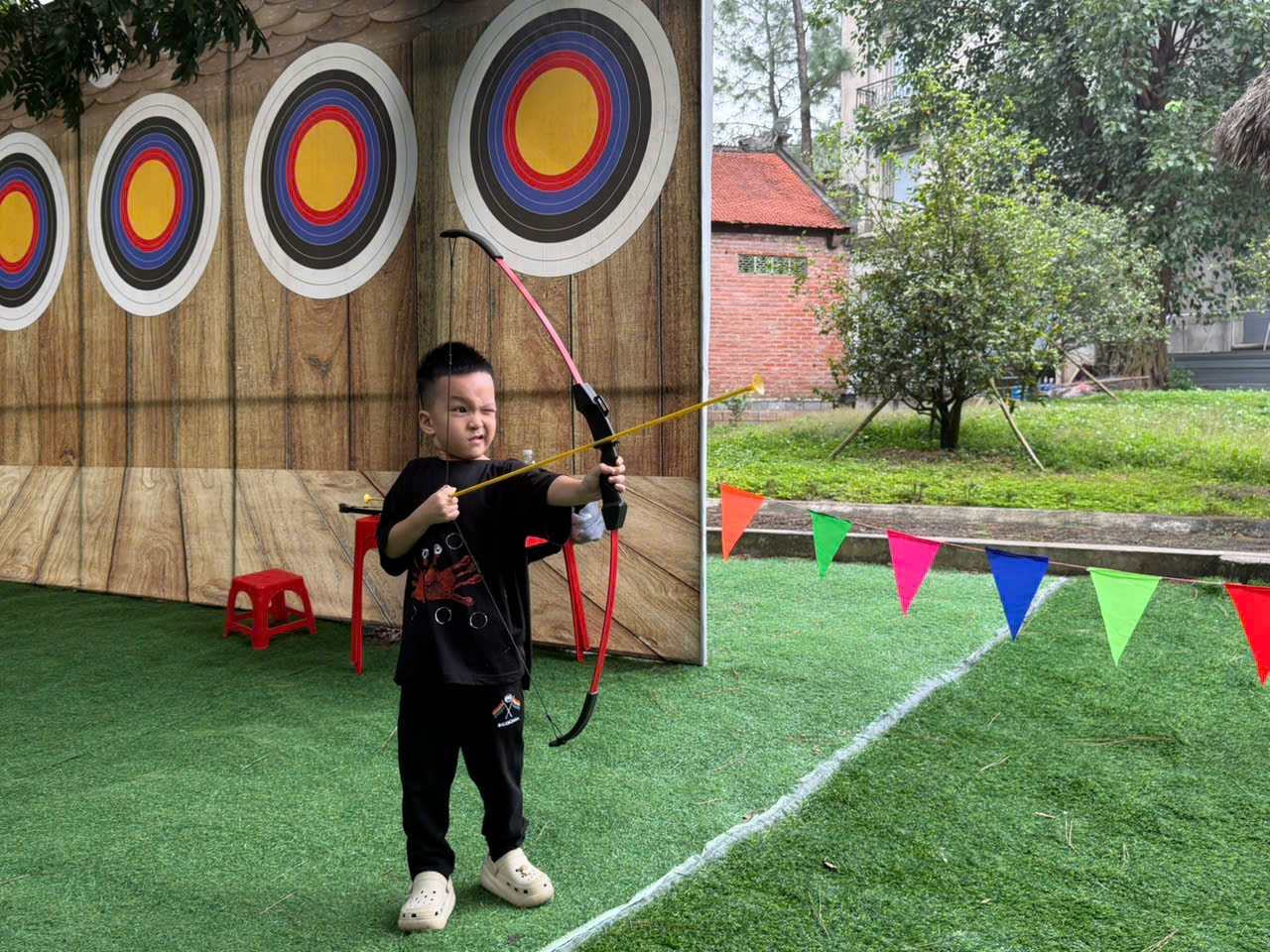 Tại khu gian hàng truyền thống, các bé được tham gia nhiều trò chơi dân gian quen thuộc, trải nghiệm pickleball, bắn cung và các hoạt động thủ công dân dã. Những trải nghiệm này không chỉ mang lại tiếng cười mà còn giúp trẻ thêm hiểu biết, yêu mến văn hóa dân tộc.