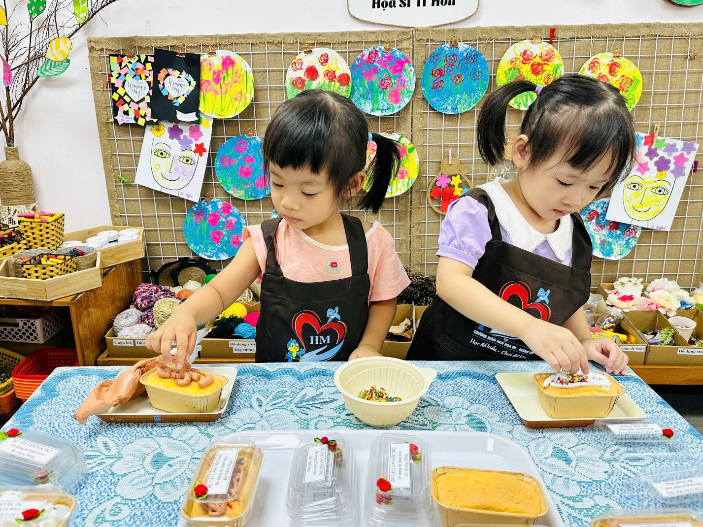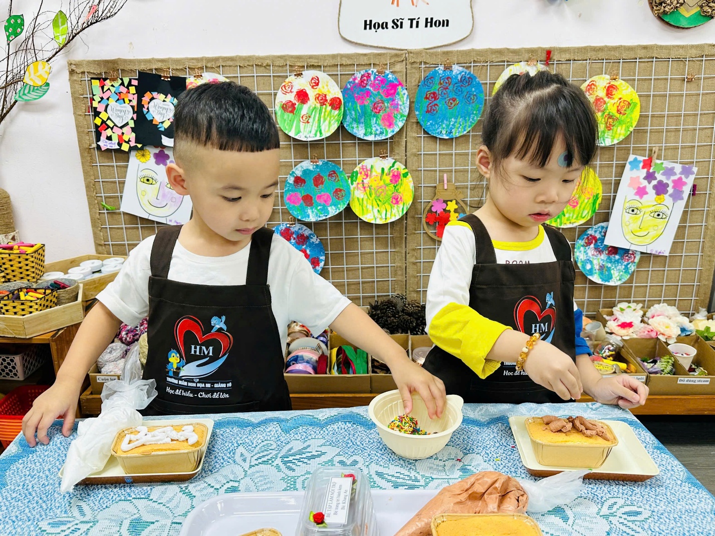 Nhìn những khuôn mặt nhỏ xíu lấm lem kem mà ánh mắt lại lấp lánh hạnh phúc, ai nấy đều thấy lòng mình ấm áp. Mỗi chiếc bánh, dù không hoàn hảo, lại mang một vẻ đẹp riêng – đó là chiếc bánh của tình yêu, của sự cố gắng, của niềm vui con trẻ.