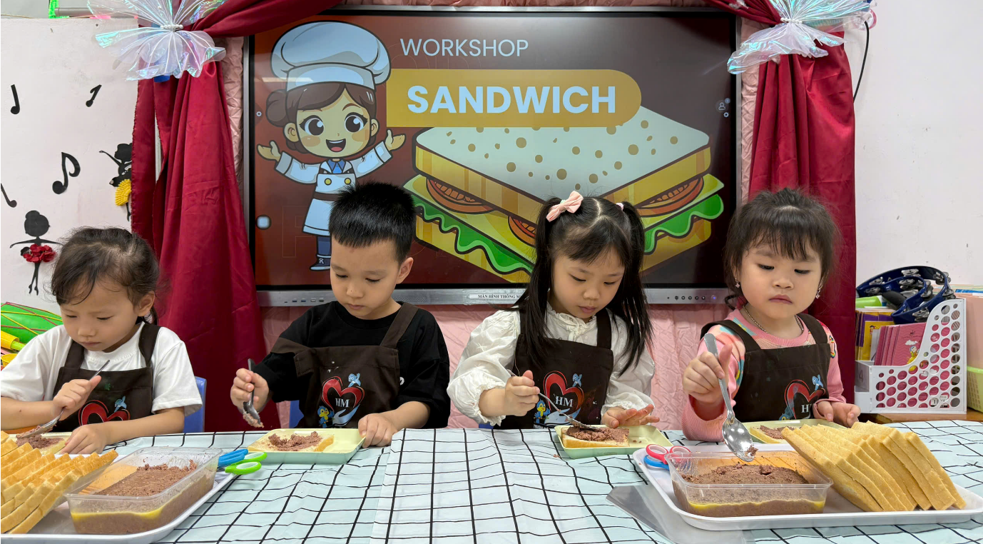ĐẨY MẠNH GIÁO DỤC KỸ NĂNG SỐNG THÔNG QUA WORKSHOP LÀM BÁNH SANDWICH CHO TRẺ MẦM NON