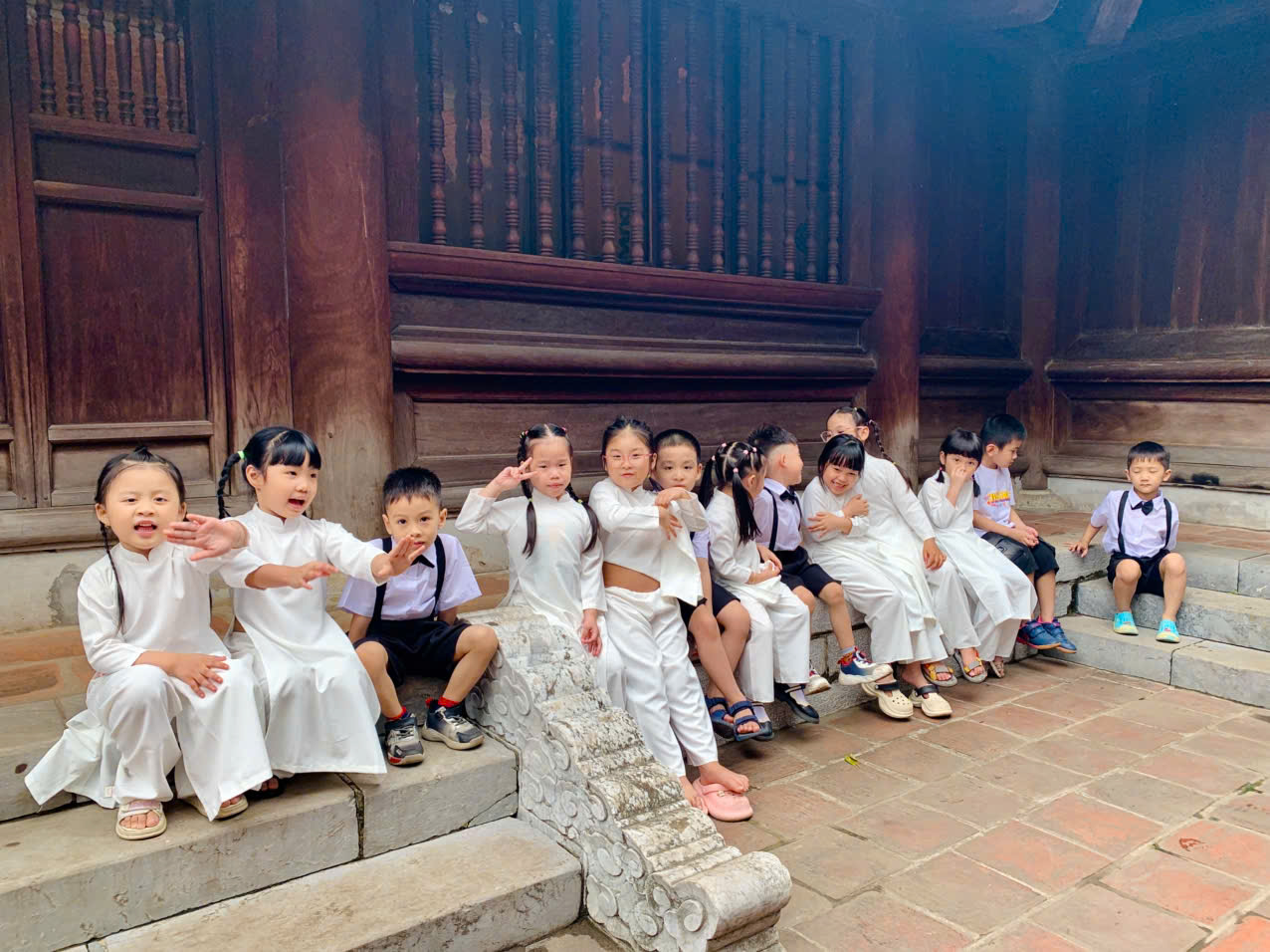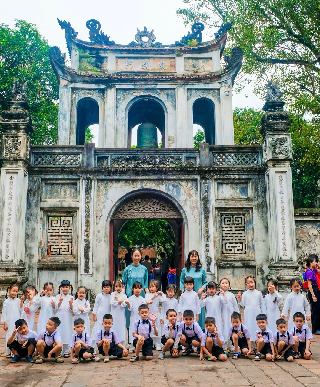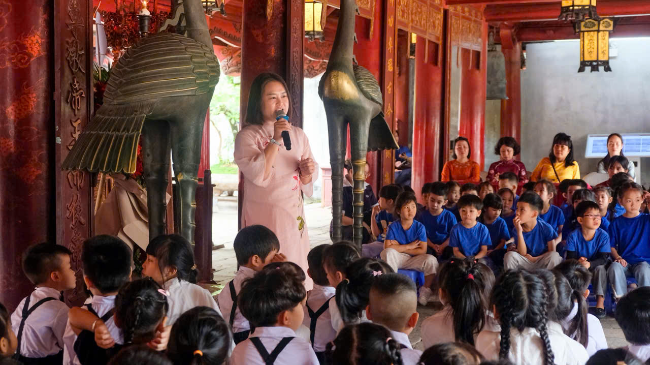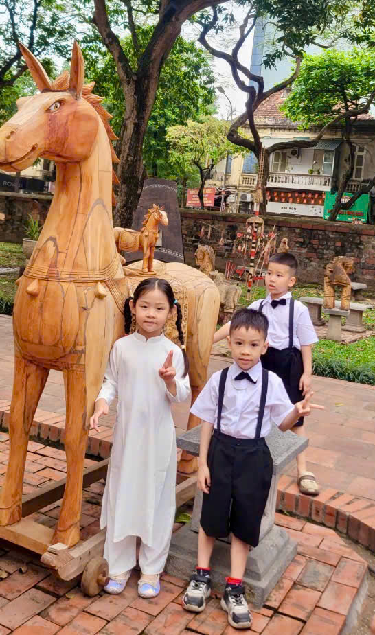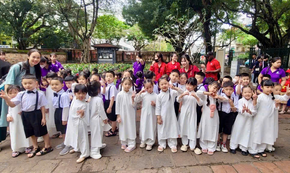 Không chỉ dừng lại ở đó, các con còn được nghe hướng dẫn viên giới thiệu về lịch sử, ý nghĩa của Văn Miếu – Quốc Tử Giám – nơi từng là trường đại học đầu tiên của Việt Nam. Qua từng câu chuyện, từng hình ảnh, những hạt mầm về tinh thần hiếu học, ý chí vươn lên và lòng kính trọng tri thức đã dần được gieo vào tâm hồn non nớt của các con.