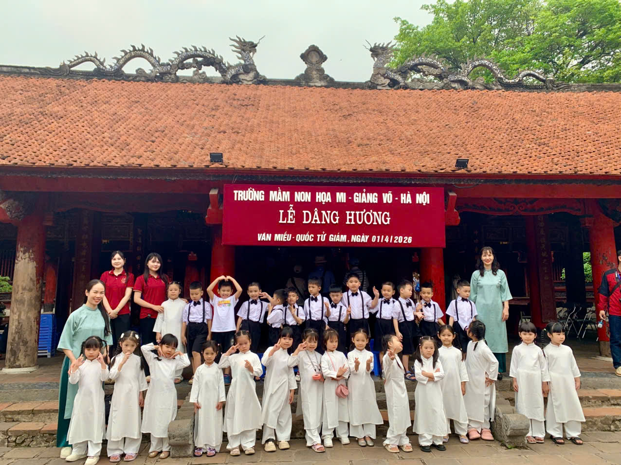 Trong không khí rộn ràng của những ngày cuối năm học, khi các con đang dần khép lại hành trình ở bậc mầm non để chuẩn bị bước sang một chặng đường mới – bậc Tiểu học, khối MGL Trường MN Họa Mi đã tổ chức cho các con chuyến tham quan, dâng hương đầy ý nghĩa tại Văn Miếu – Quốc Tử Giám – nơi được xem là biểu tượng của truyền thống hiếu học và tôn sư trọng đạo của dân tộc Việt Nam.