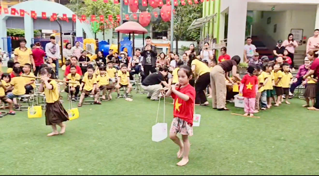 Bạn có biết? Không chỉ các con hăng hái mà các bậc phụ huynh lớp B2 cũng "lăn xả" hết mình! Tiếng cổ vũ vang dội cả một góc sân khi các bố/mẹ và bé phối hợp nhịp nhàng, mang những túi đất màu mỡ và những thùng nước mát lành về đích.