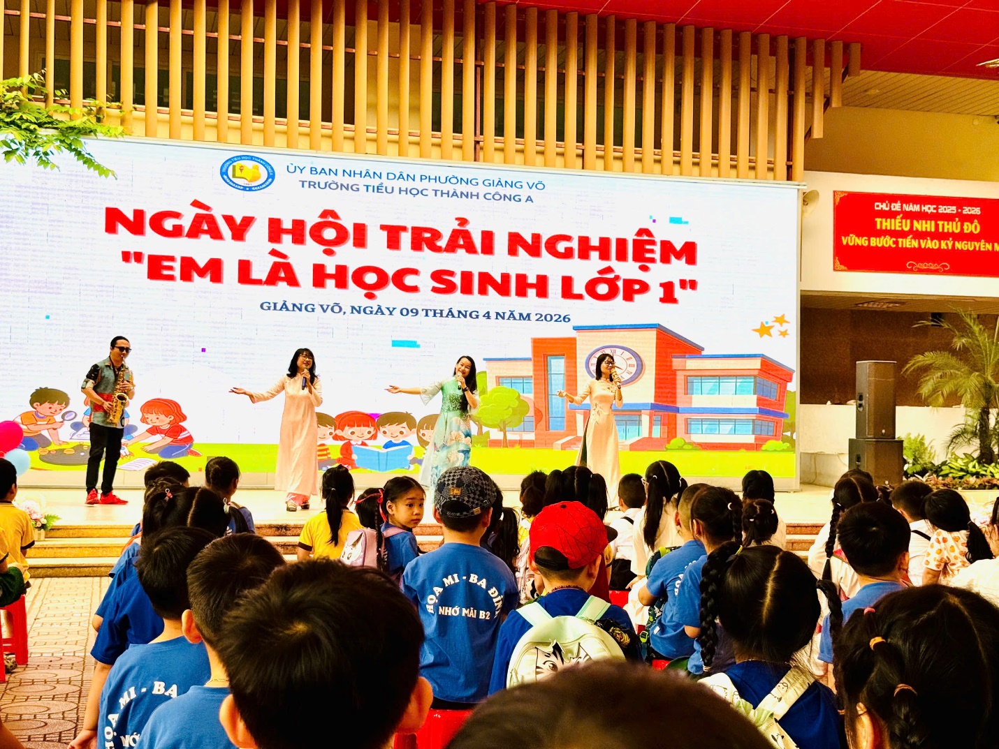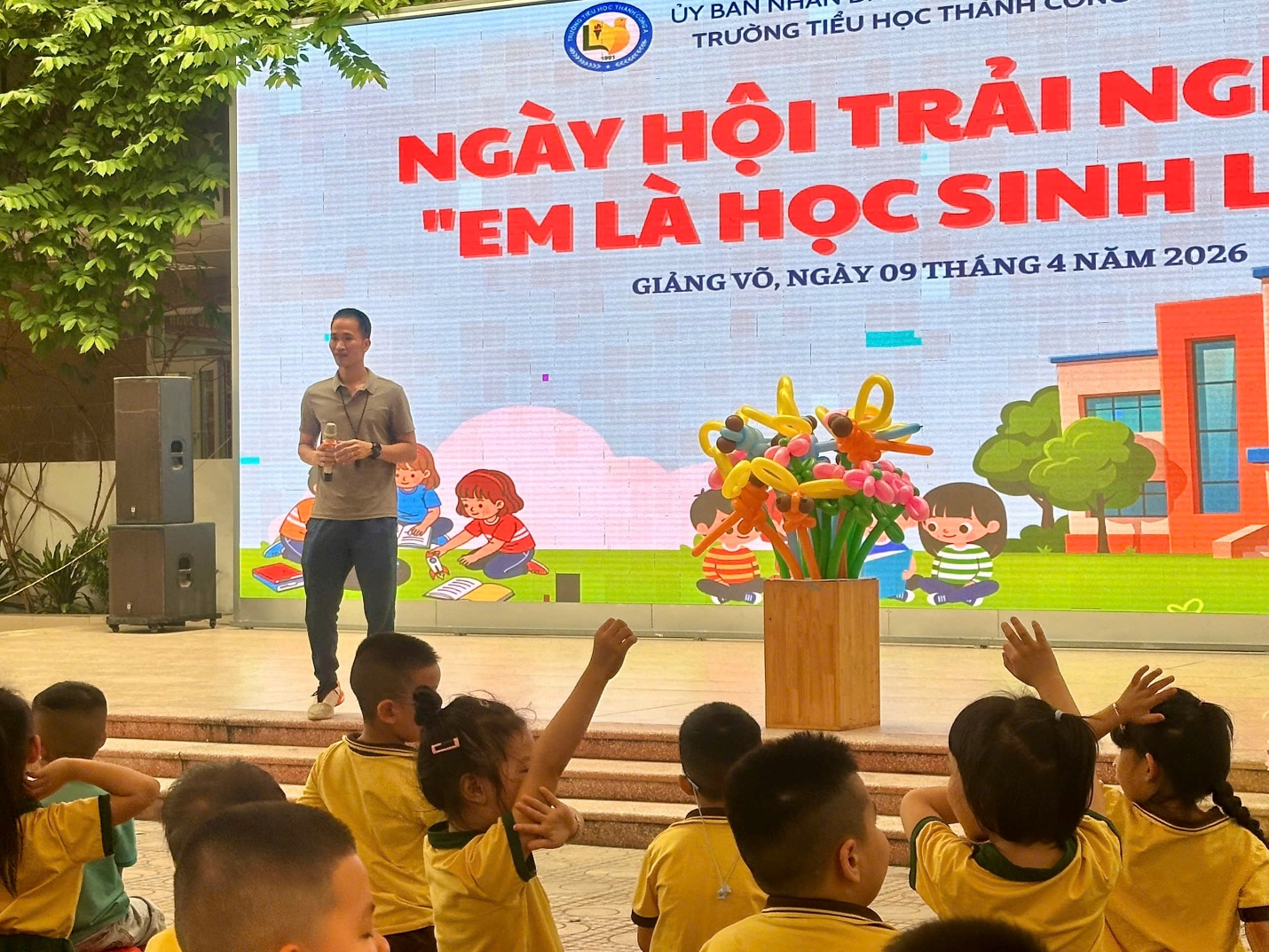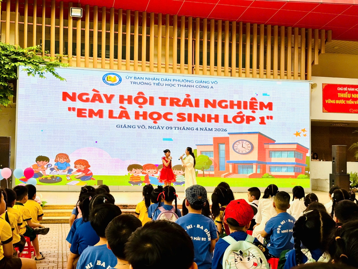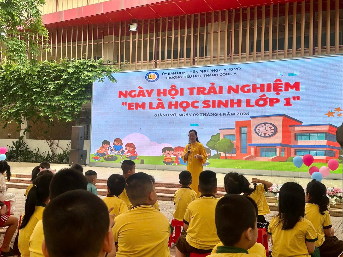 Mở đầu chương trình, các con được thưởng thức các tiết mục văn nghệ vô cùng hấp dẫn do các thầy cô giáo và học sinh trường TH Thành Công A biểu diễn, chào mừng các con đến tham gia trải nghiệm tại trường. Sau đó, các con được trò chuyện với cô Hiệu trưởng trường TH Thành Công A - Trịnh Phương Linh trò chuyện. Những lời chia sẻ nhẹ nhàng nhưng đầy yêu thương ấy đã giúp các con cảm thấy gần gũi, tự tin và thêm háo hức với ngôi trường mới.
