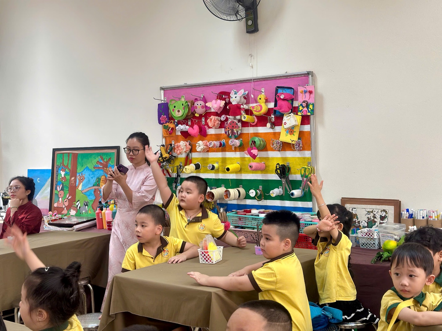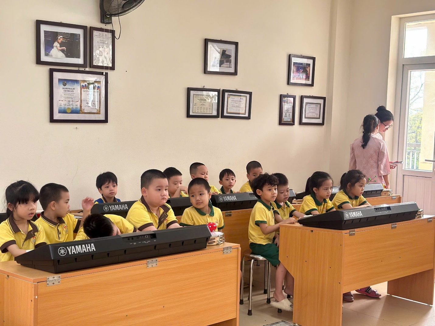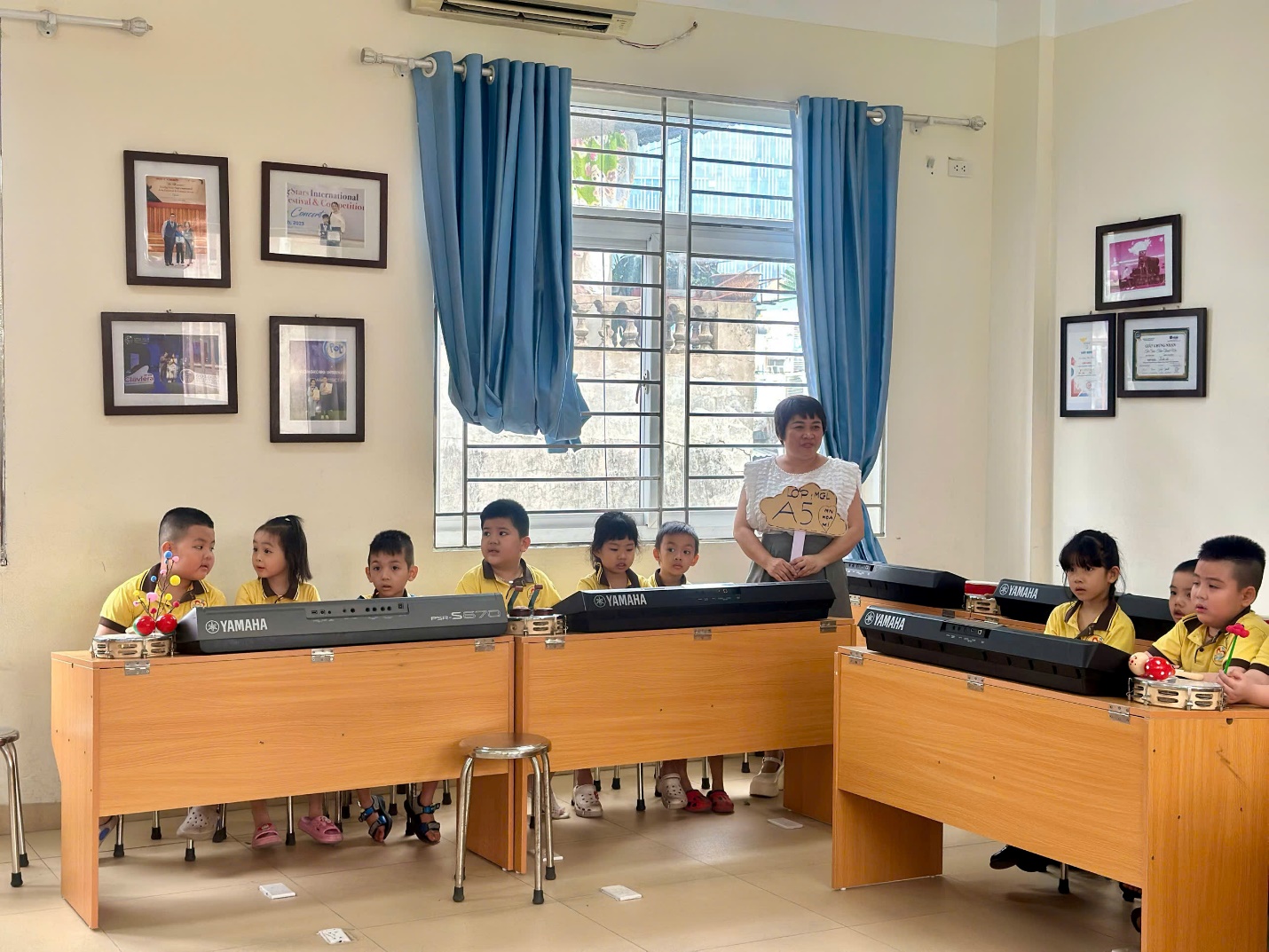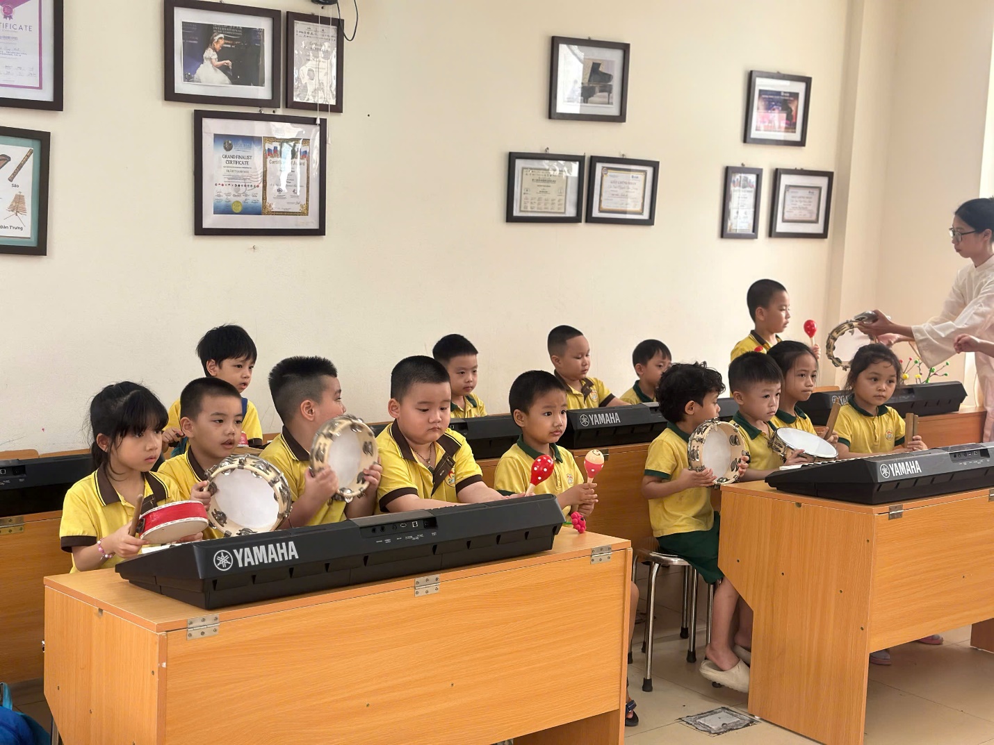 Không khí càng thêm sôi động khi các con bước vào phòng Âm nhạc, được tự tay trải nghiệm các nhạc cụ và cùng nhau nhảy múa tập thể. Tiếng cười giòn tan vang lên khắp căn phòng, tạo nên những khoảnh khắc thật đáng nhớ.