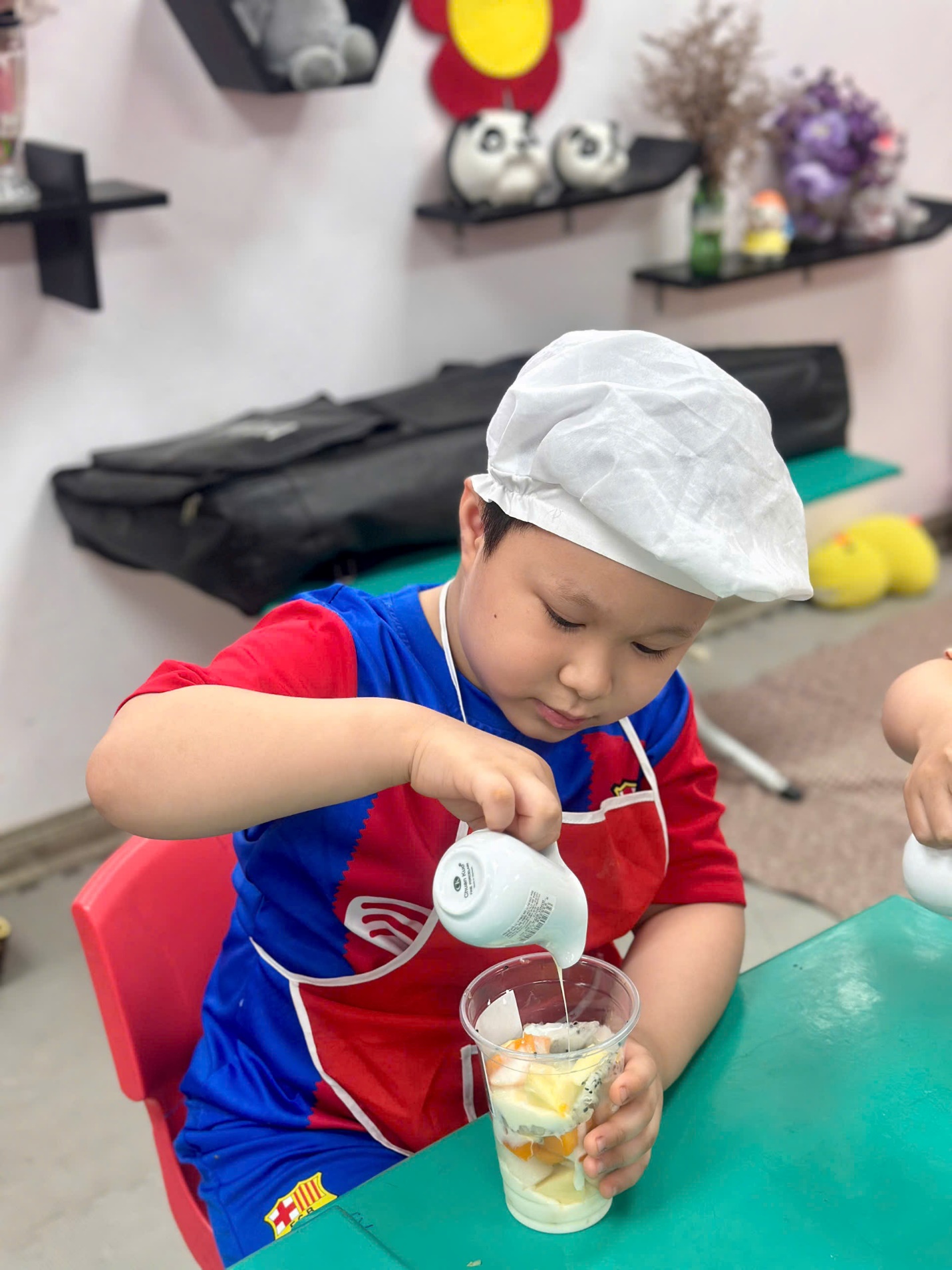 Khoảnh khắc các con tự tay thưởng thức món hoa quả trộn sữa chua do chính mình làm ra, nụ cười rạng rỡ và ánh mắt thích thú chính là minh chứng cho một giờ học thật ý nghĩa.