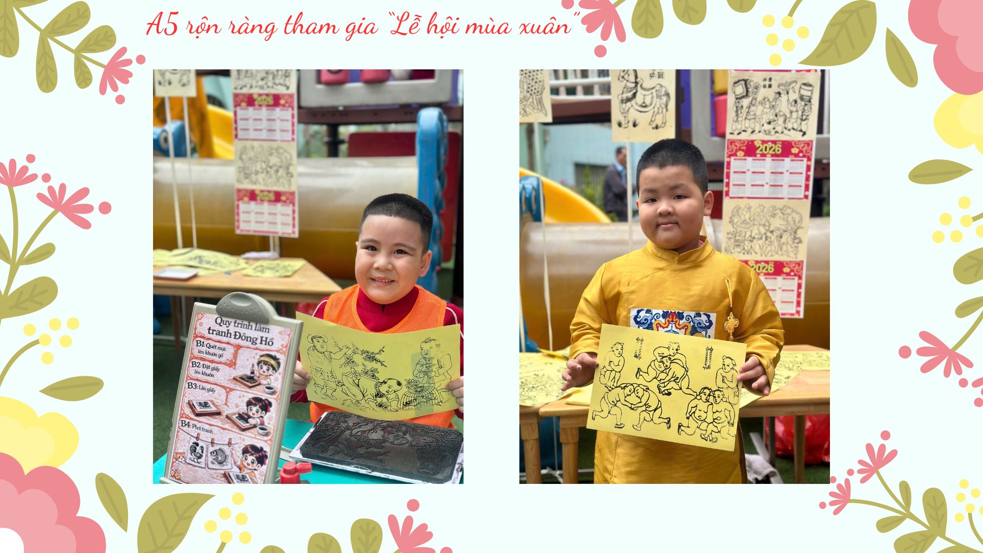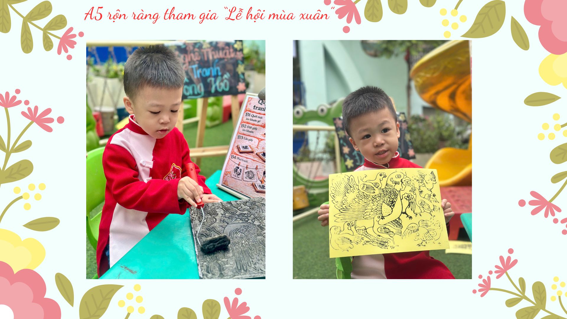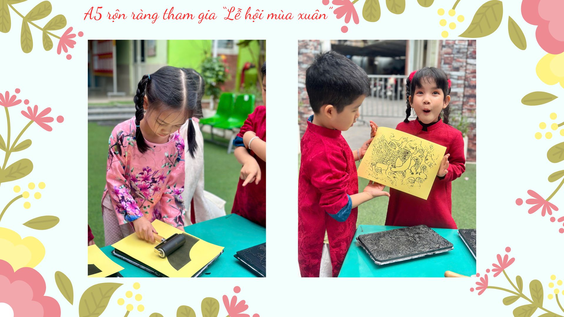 Lễ hội mùa xuân không chỉ mang đến cho các bé lớp A5 những phút giây vui chơi đầy hứng khởi mà còn giúp các con hiểu thêm về nét đẹp văn hóa truyền thống, rèn luyện sự tự tin, khéo léo và tinh thần gắn kết với bạn bè.