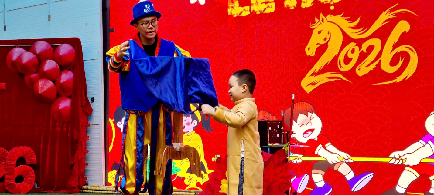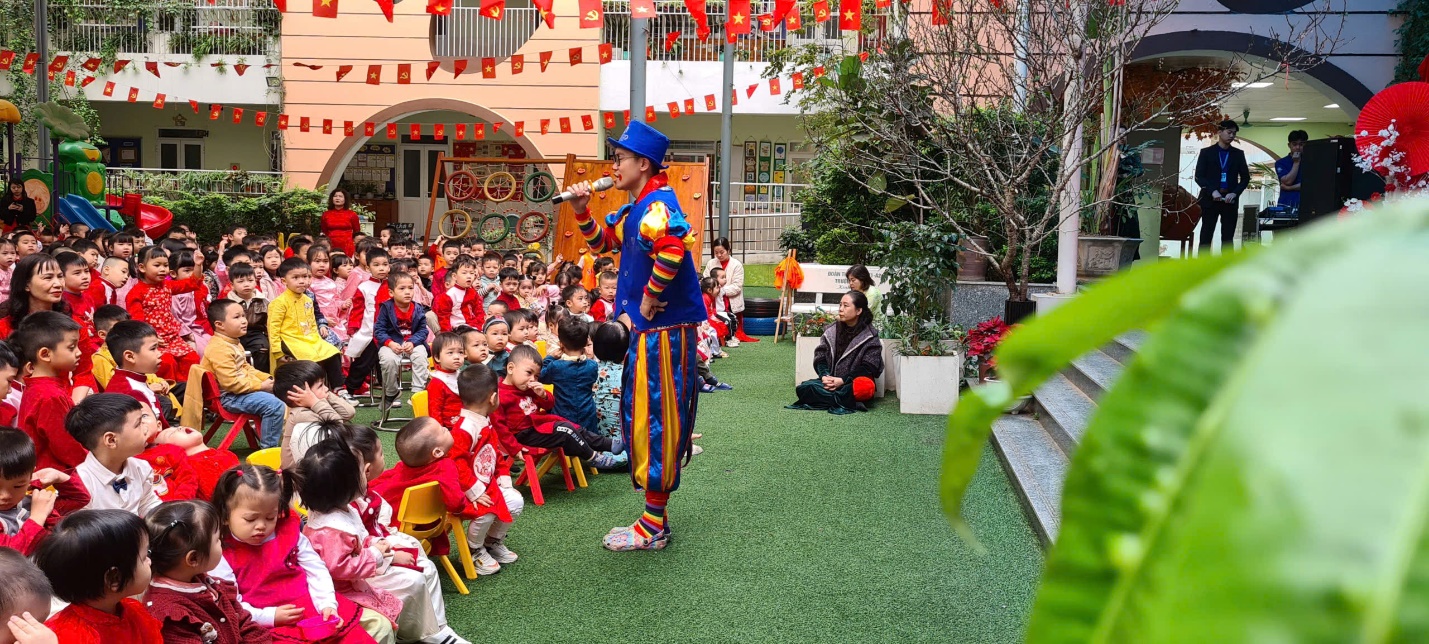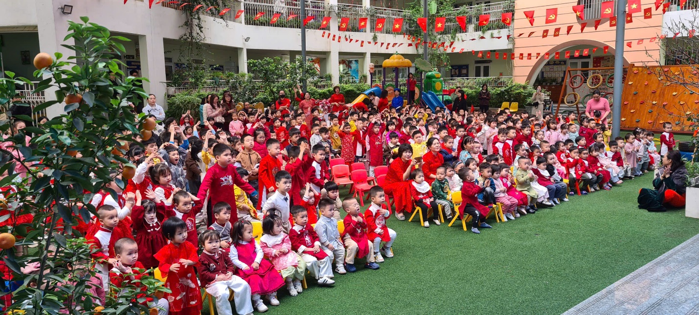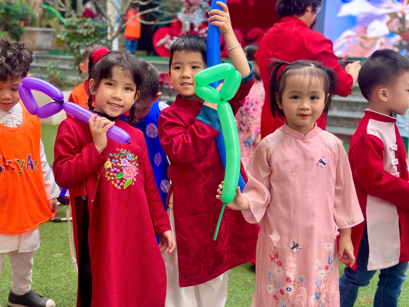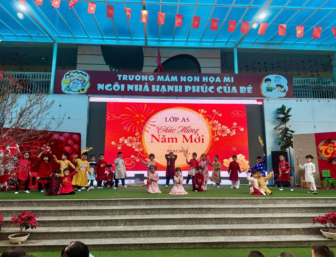 Mở đầu chương trình, các bé tự tin bước lên sân khấu biểu diễn tiết mục văn nghệ “Tết ơi, Tết à”. Những giai điệu rộn ràng cùng những động tác đáng yêu đã mang đến bầu không khí vui tươi, khiến cả sân trường tràn ngập sắc xuân và tiếng vỗ tay cổ vũ.
