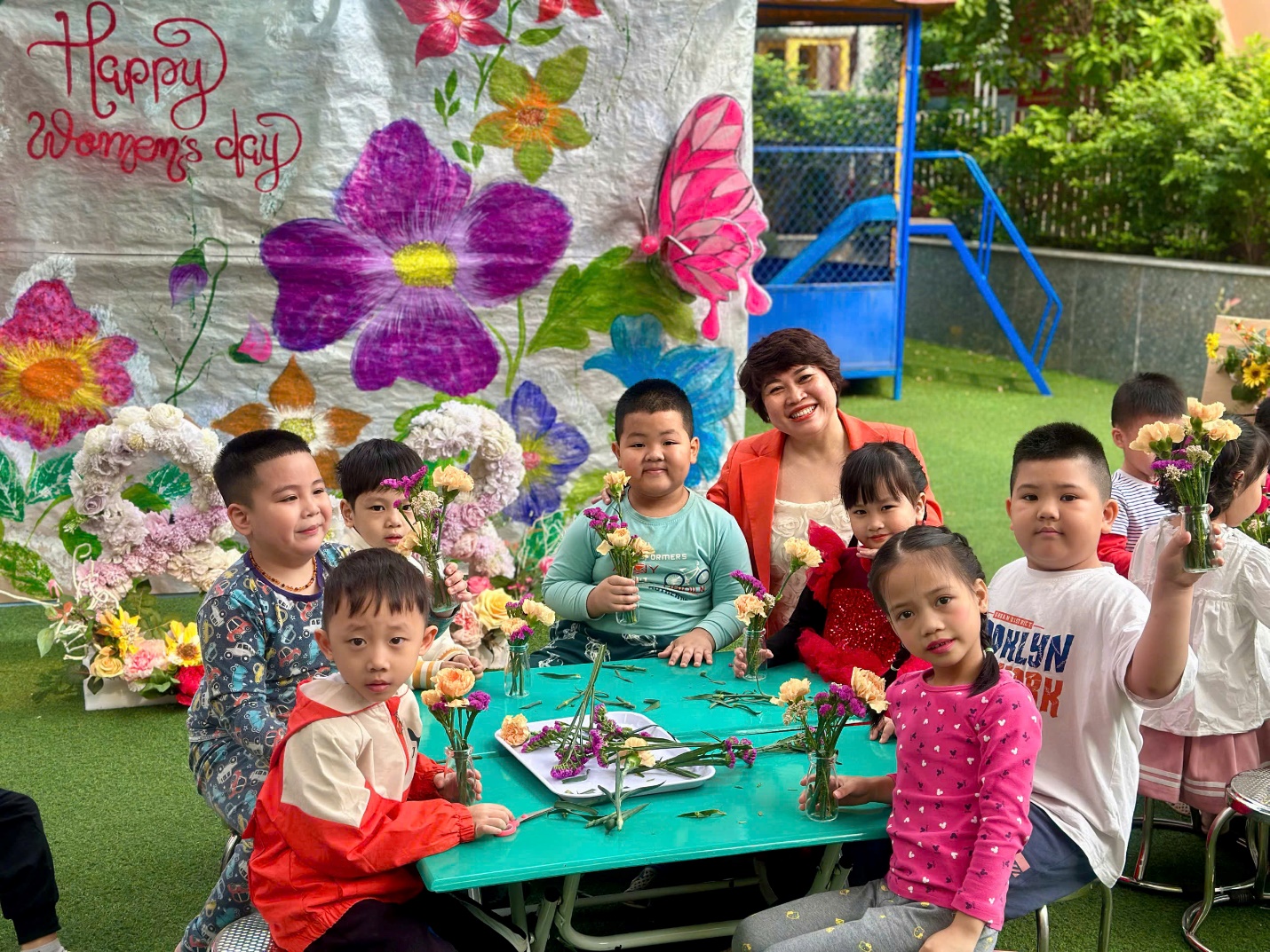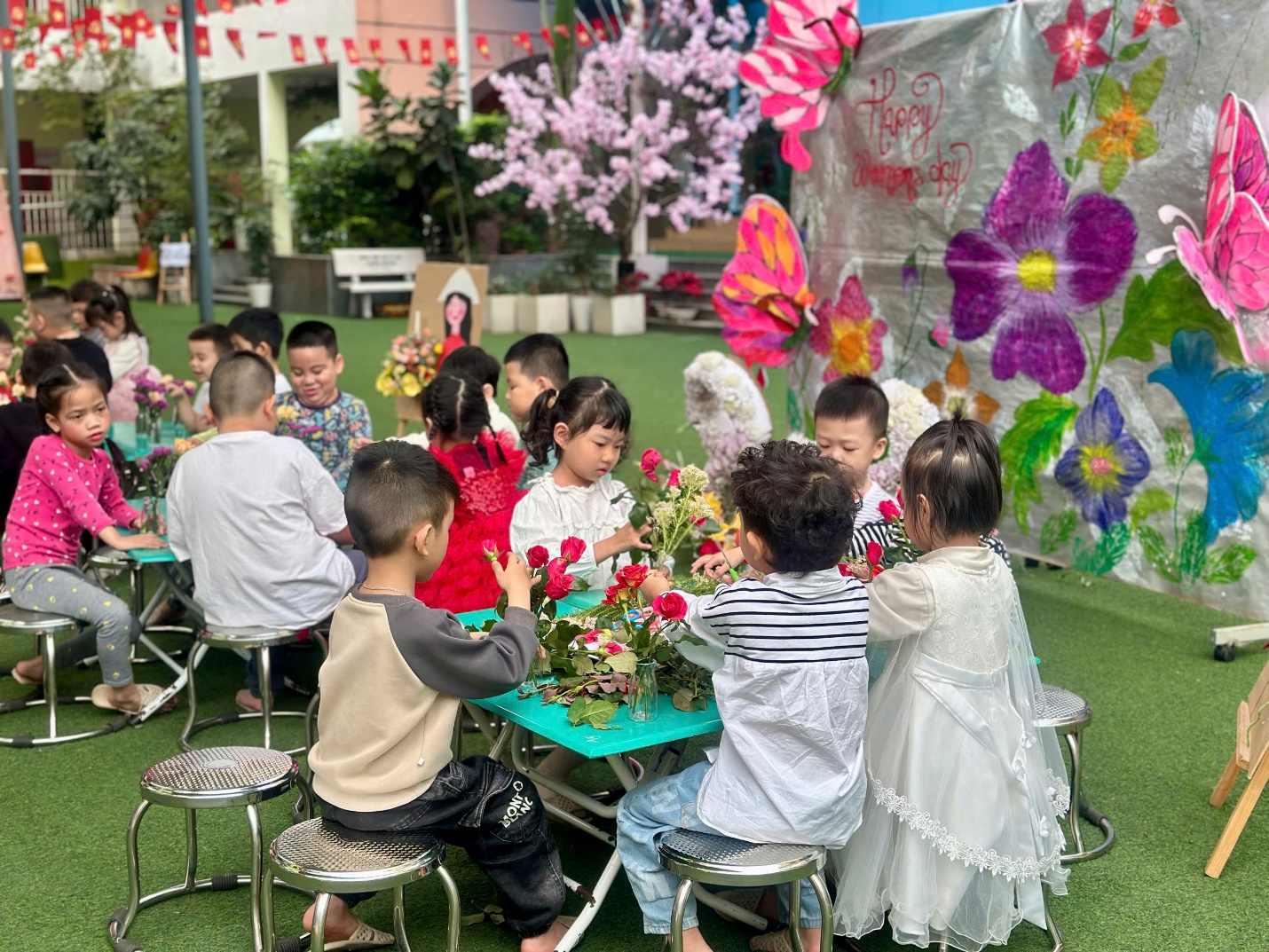 Hoạt động không chỉ giúp trẻ rèn luyện sự khéo léo của đôi tay, phát triển khả năng thẩm mỹ, mà còn là dịp để các con học cách bày tỏ tình yêu thương, sự biết ơn đối với mẹ – người luôn chăm sóc và yêu thương mình mỗi ngày.