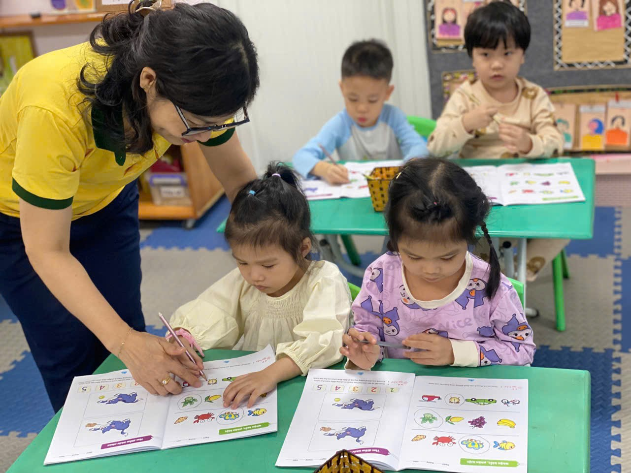 Chính vì vậy giờ học toán không chỉ là thời gian để trẻ làm quen với các con số, hình dạng đơn thuần mà còn là cơ hội để trẻ phát triển tư duy sáng tạo, kỹ năng giải quyết vấn đề và khả năng hợp tác với bạn bè. Với phương pháp dạy học “ Lấy trẻ làm trung tâm” gần gũi và dễ hiểu, trẻ 4 -5 tuổi sẽ dần dần yêu thích toán học và tiếp thu các kiến thức toán học cơ bản một cách tự nhiên, vui tươi.
