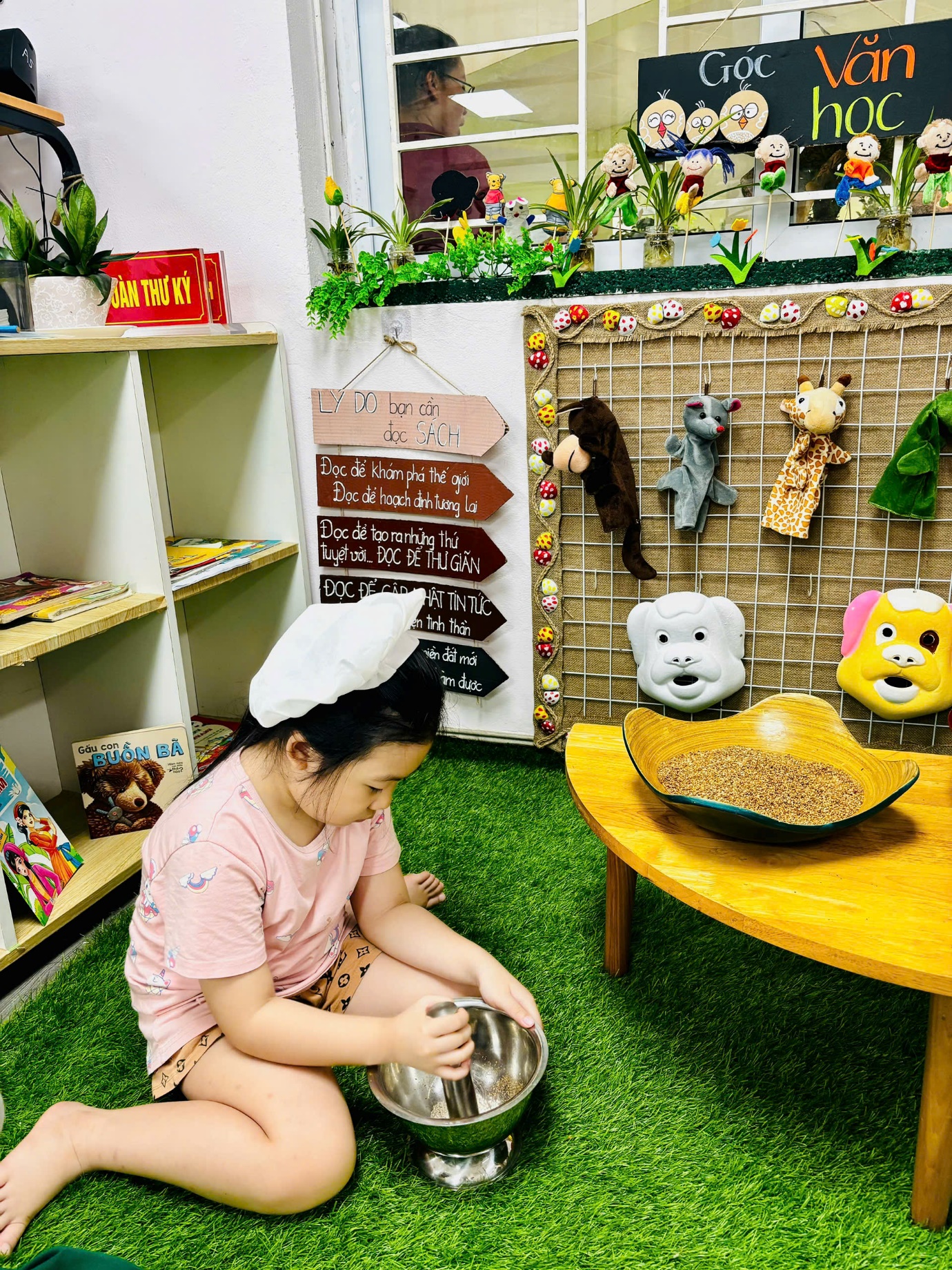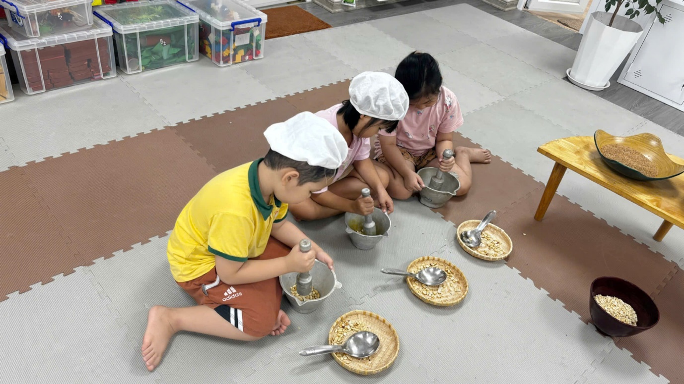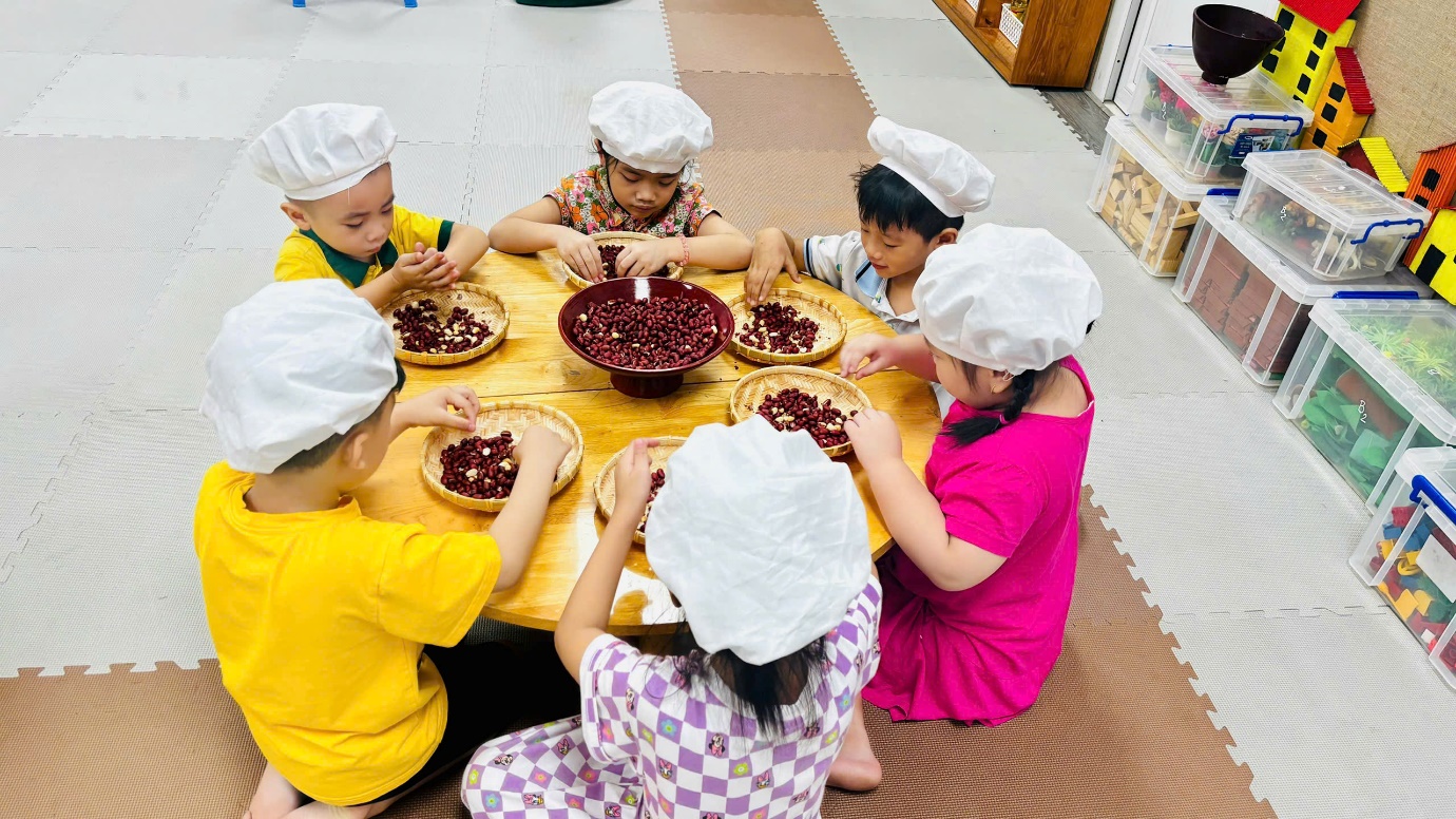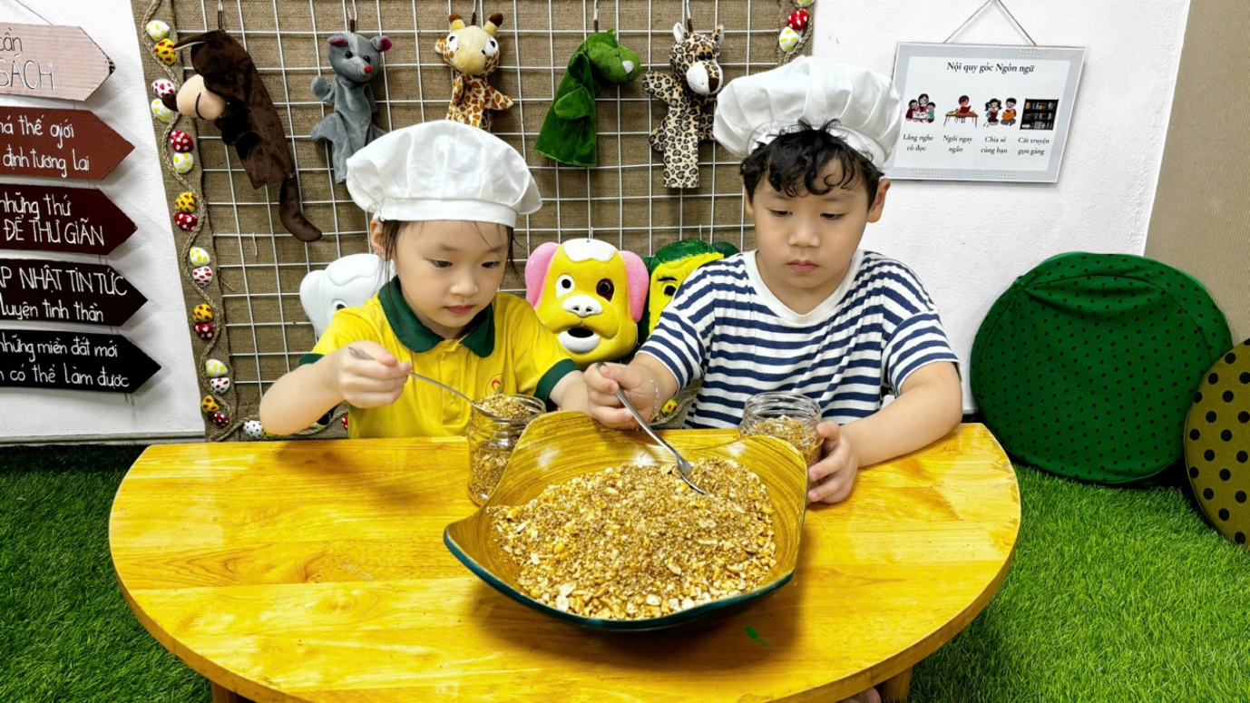 Các bé lớp A2 khám phá sự biến đổi của hạt lạc dưới đôi bàn tay xinh