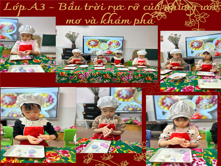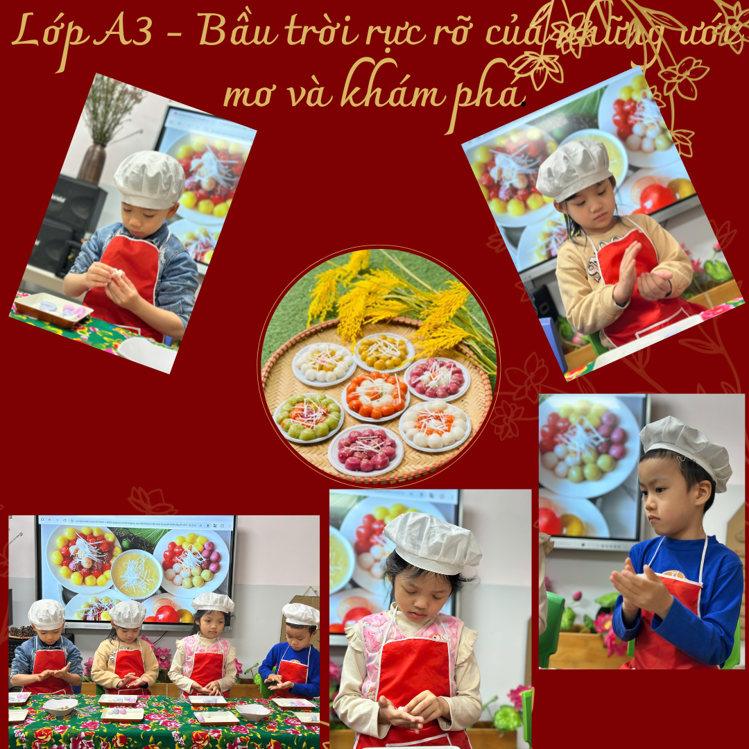 Tết Hàn Thực, hay còn gọi là Tết bánh trôi bánh chay, là một ngày lễ đặc biệt trong văn hóa Việt Nam, thường diễn ra vào mùng 3 tháng 3 âm lịch. Các bé lớp A3 đã được các cô giáo giới thiệu về nguồn gốc, ý nghĩa của ngày lễ này qua những câu chuyện dân gian sinh động. Các bé đã hiểu rằng, Tết Hàn Thực không chỉ là dịp để tưởng nhớ tổ tiên mà còn là cơ hội để các gia đình sum vầy, quây quần bên những món ăn truyền thống như bánh trôi, bánh chay.