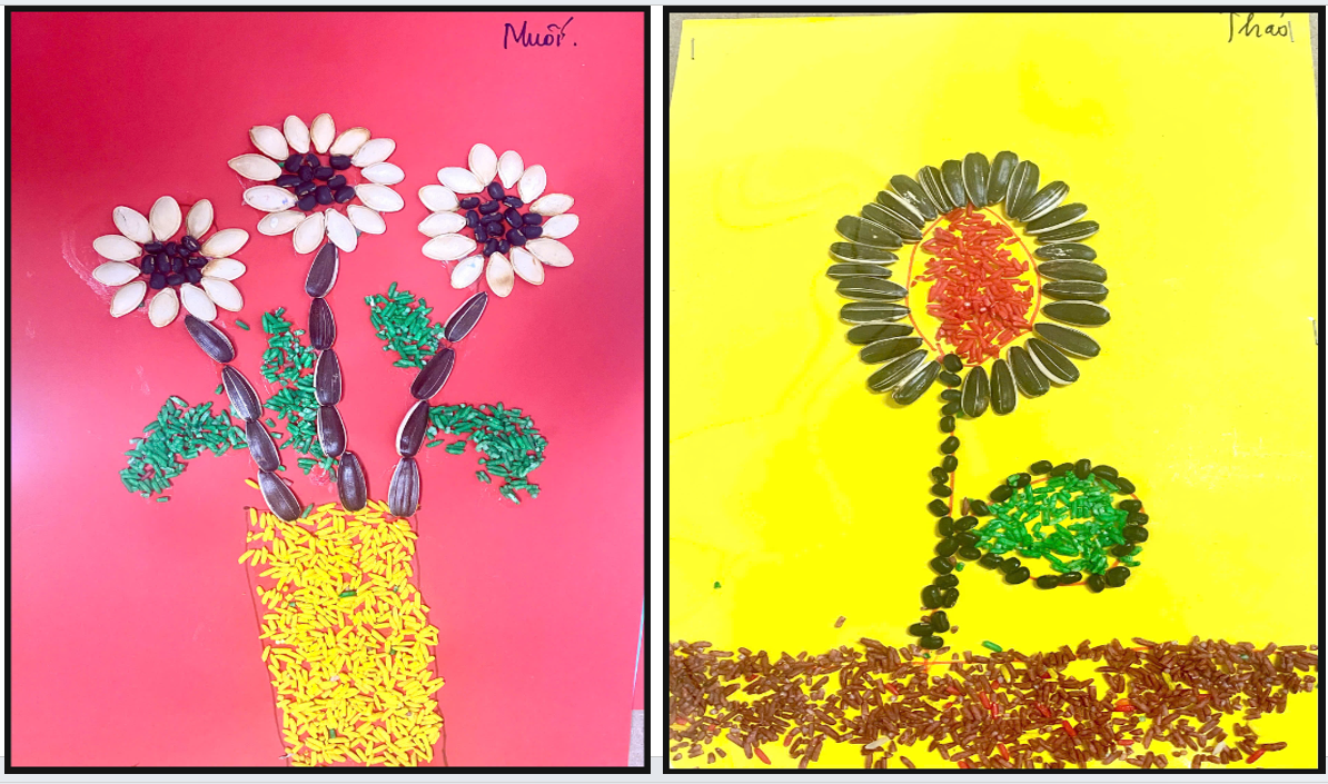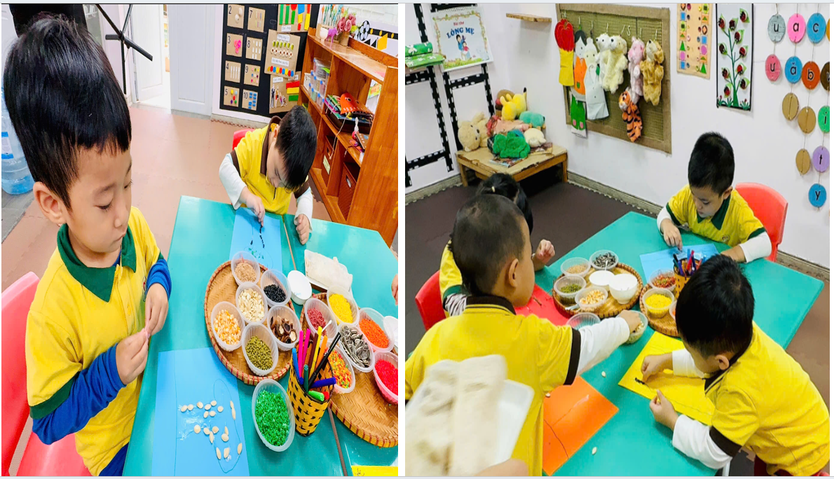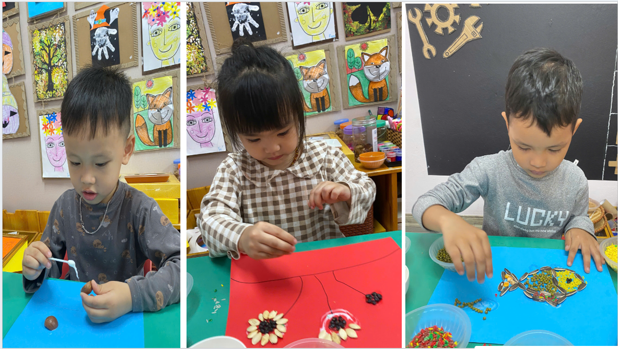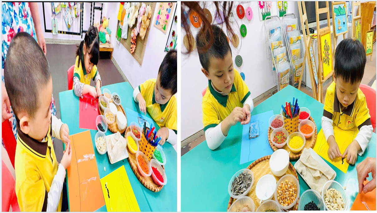 Thông qua hoạt động này, các bé không chỉ được rèn luyện khả năng quan sát, phối hợp tay – mắt mà còn phát triển óc sáng tạo, tính kiên nhẫn và sự tỉ mỉ. Đồng thời, việc được tiếp xúc với các loại hạt ngũ cốc cũng giúp trẻ hiểu hơn về thiên nhiên và nguồn thực phẩm quanh mình, biết trân trọng sức lao động của con người.