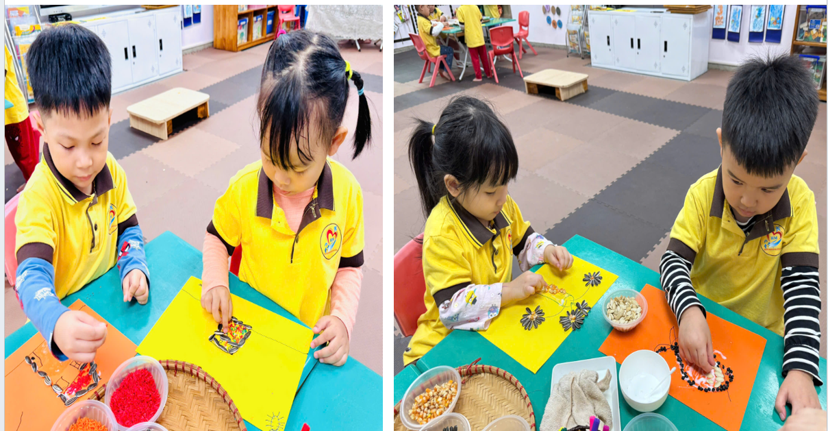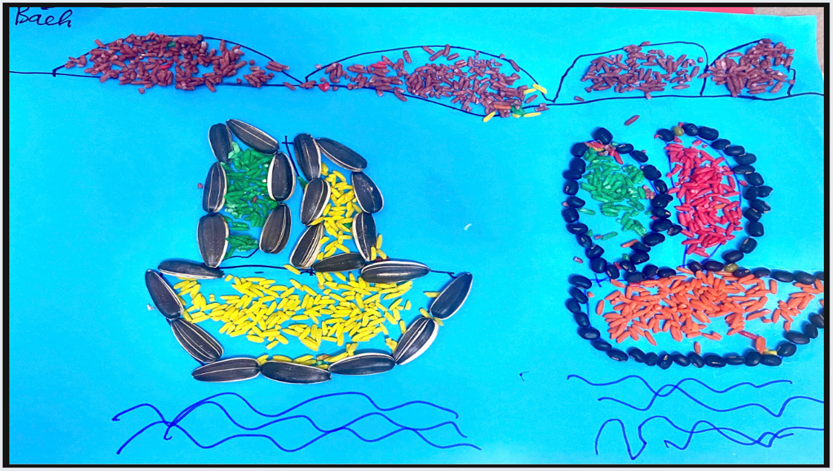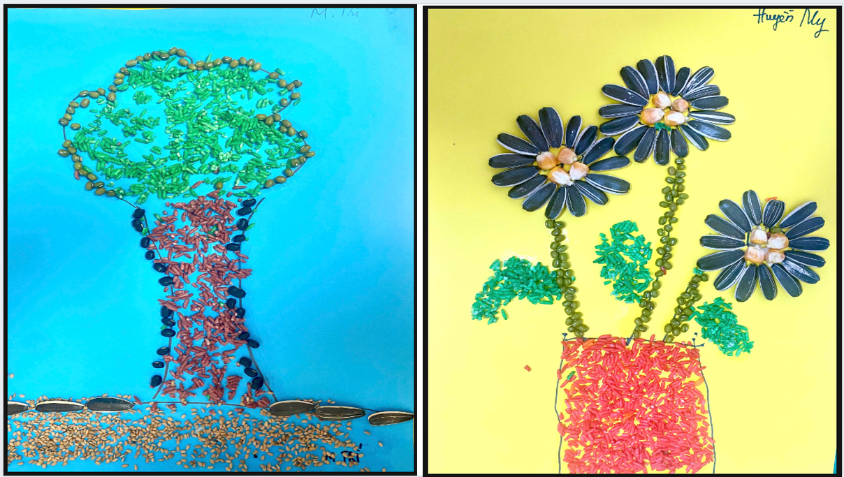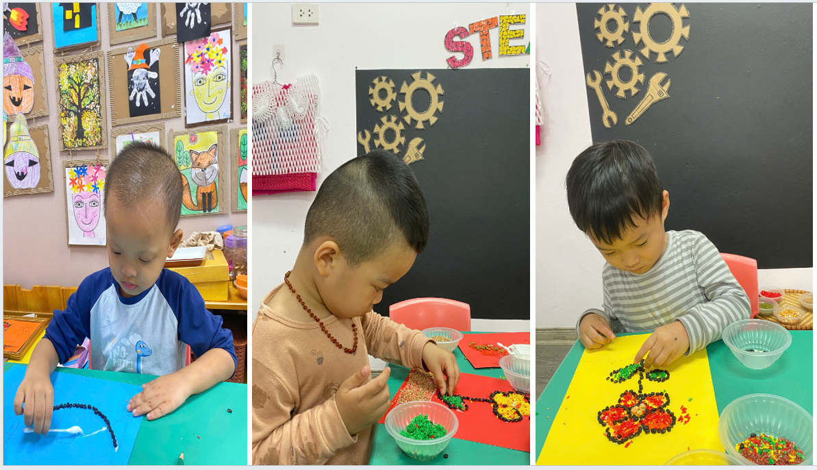 Thông qua hoạt động này, các bé không chỉ được rèn luyện khả năng quan sát, phối hợp tay – mắt mà còn phát triển óc sáng tạo, tính kiên nhẫn và sự tỉ mỉ. Đồng thời, việc được tiếp xúc với các loại hạt ngũ cốc cũng giúp trẻ hiểu hơn về thiên nhiên và nguồn thực phẩm quanh mình, biết trân trọng sức lao động của con người.