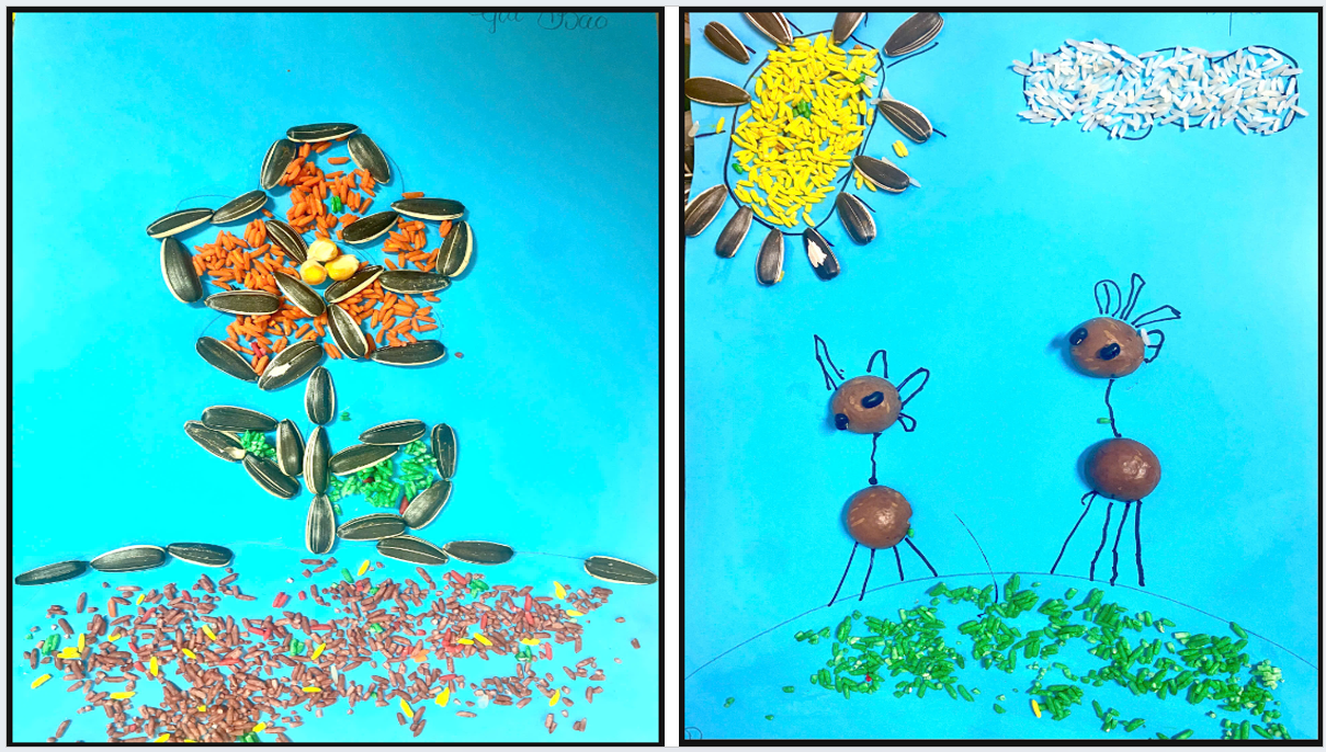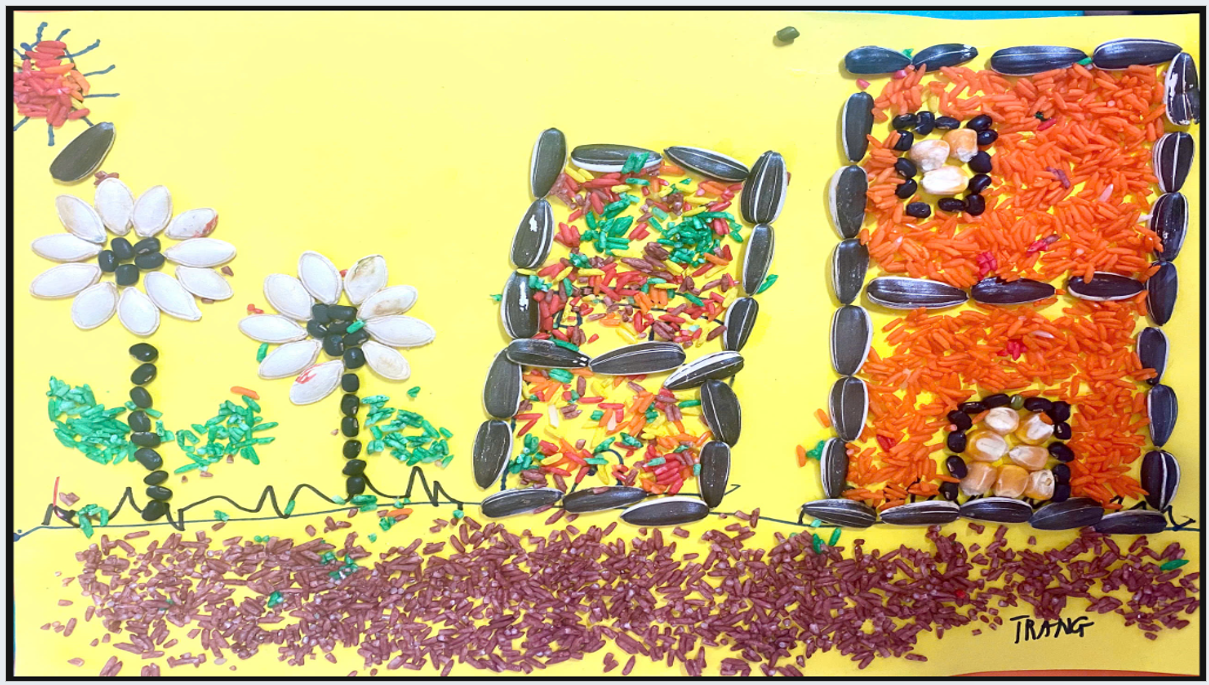 🌾 Các bé lớp MGN B1 sáng tạo làm tranh từ các loại hạt ngũ cốc🌾