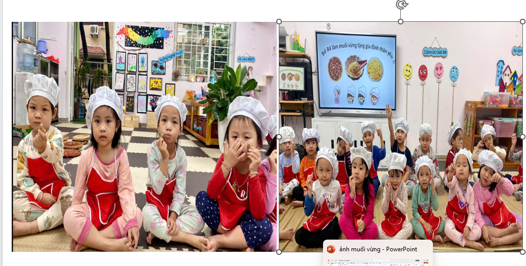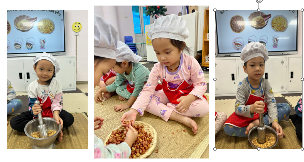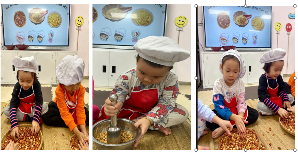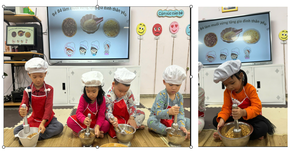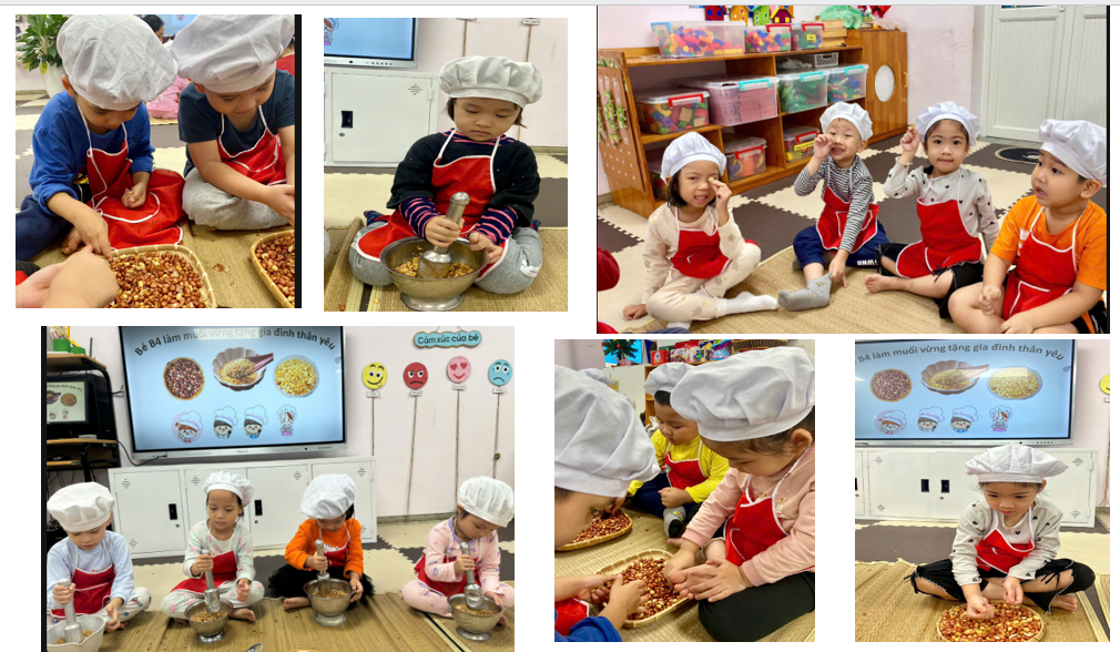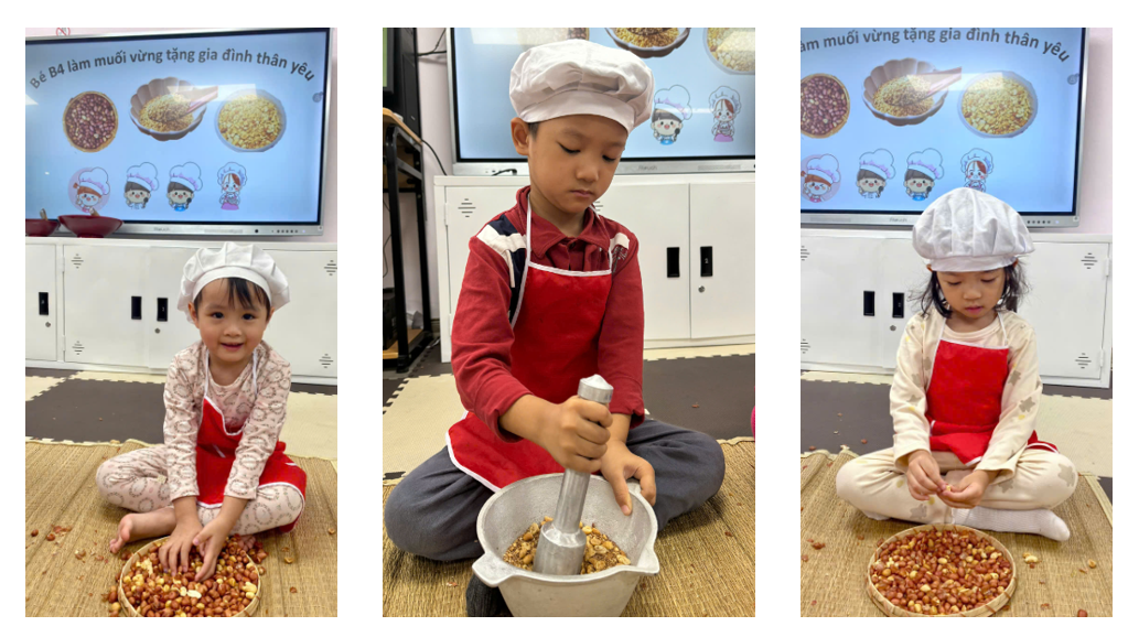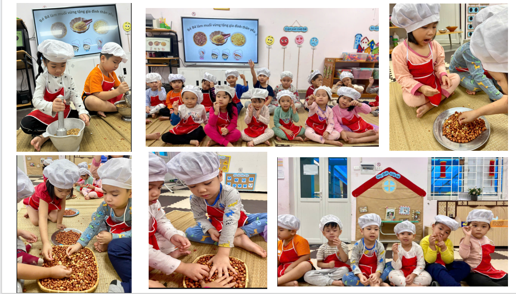 Các bé lớp MGN B4 thực hành làm món Muối vừng lạc