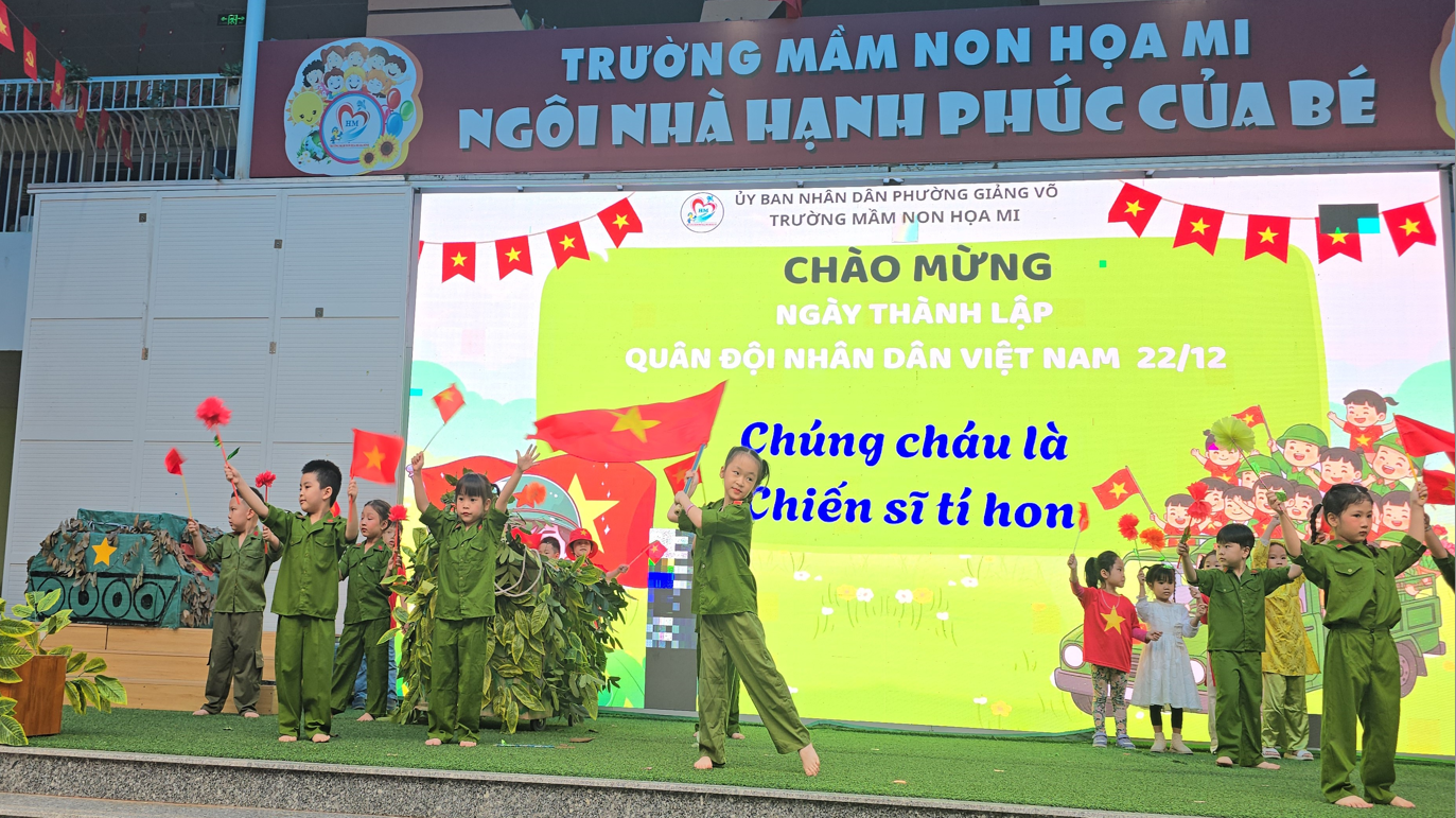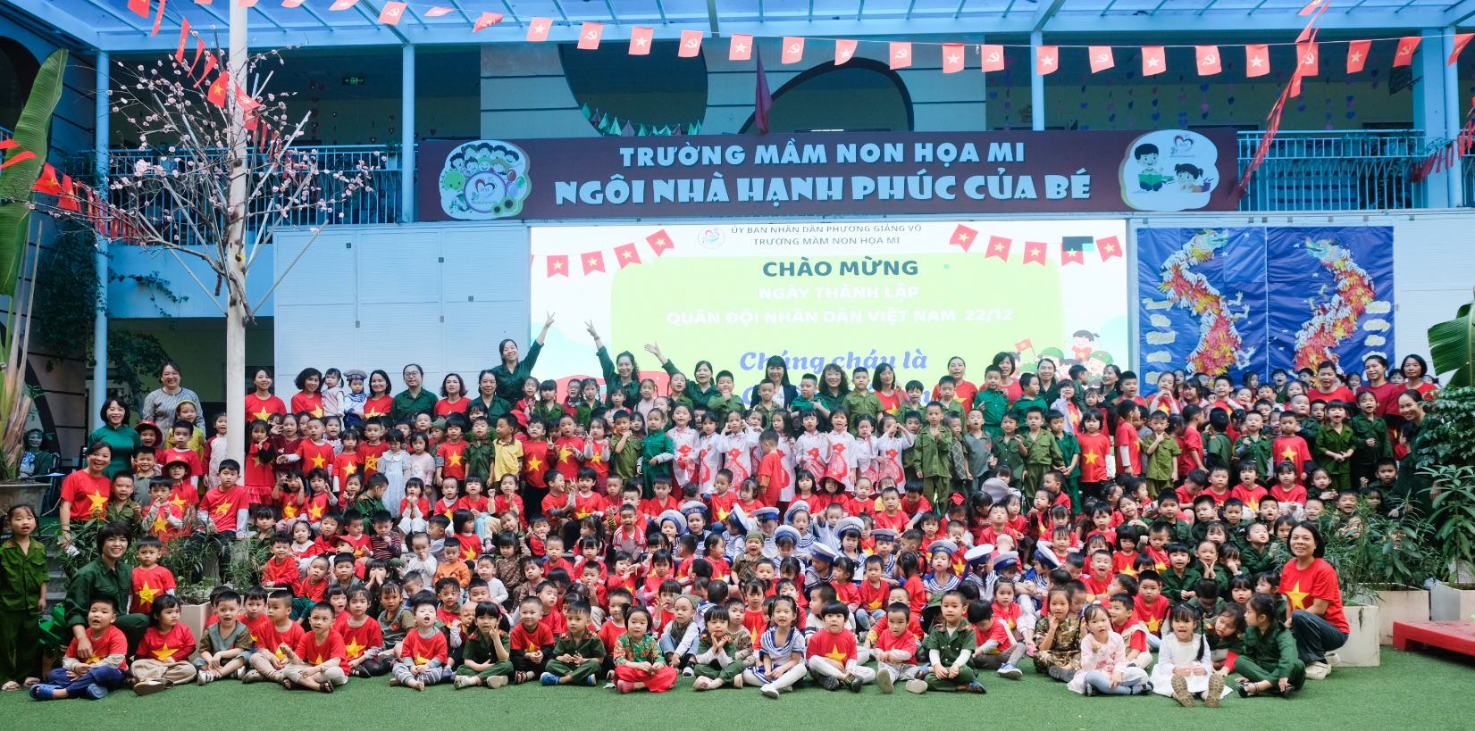 Hòa chung không khí thiêng liêng kỷ niệm 81 năm Ngày Thành lập Quân đội Nhân dân Việt Nam (22/12/1944 – 22/12/2025), sáng ngày 22/12, trường Mầm non Họa Mi đã long trọng tổ chức chương trình trải nghiệm ý nghĩa mang tên “Chúng cháu là chiến sĩ tí hon” dành cho gần 400 trẻ và phụ huynh cùng tham dự.