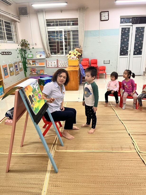 Ở tuổi mẫu giáo, thông qua việc làm quen với các tác phẩm có nội dung đơn giản, gần gũi, trẻ nhỏ sẽ được cung cấp một số kiến thức đơn giản về thiên nhiên và sinh hoạt xã hội xung quanh, củng cố và tổng hợp những kiến thức của các bài học khác. Từ đó, vốn hiểu biết và vốn từ của trẻ ngày càng được phong phú và chính xác hơn. Nắm vững được đặc điểm sinh lý của trẻ, tư duy trực quan hình tượng, cô giáo Lưu Hương đã sử dụng đồ dùng trực quan như tranh minh họa, rối tay trong giờ hoạt động làm quen văn học: truyện “ Đôi bạn tốt”.... giúp trẻ hứng thú với tác phẩm hơn. Không khí trong giờ hoạt động rất sôi nổi, hứng thú, vui tươi nhẹ nhàng.