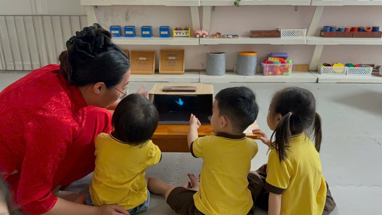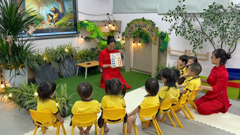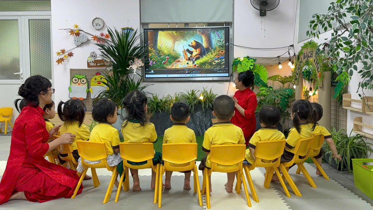 Tiết học thú vị đưa trẻ từ bất ngờ này đến bất ngờ khác, nhờ có công nghệ AI giúp cho hình ảnh sinh động và thu hút được sự chú ý của trẻ. Trẻ được nhận biết và phân biệt mầu thông qua các hoạt động.