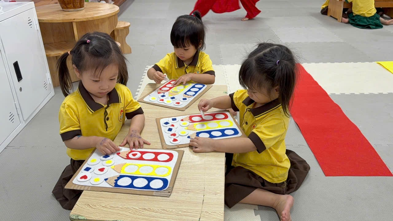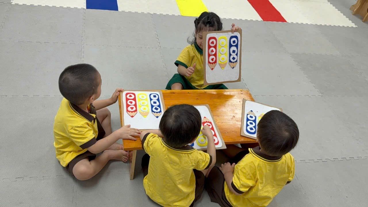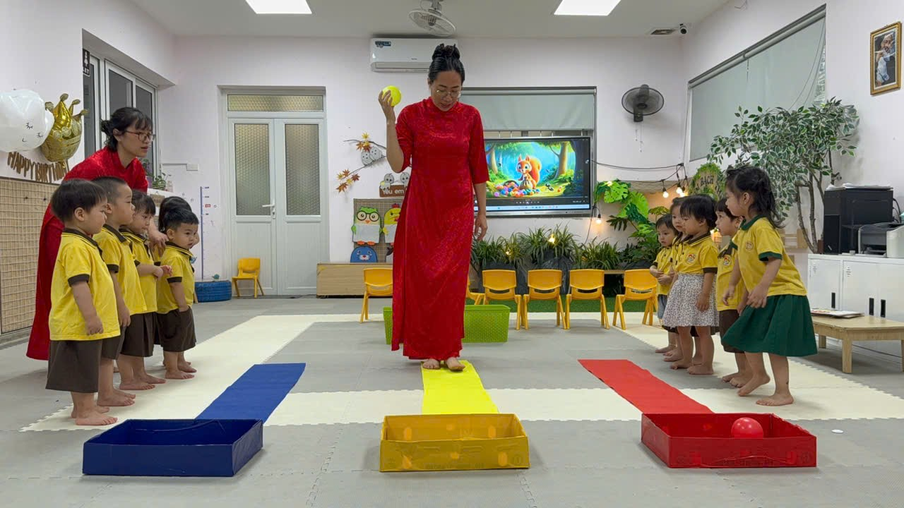 Cùng các bé lớp D1 đến với tiết học thú vị “ Phân biệt xanh – đỏ - vàng”