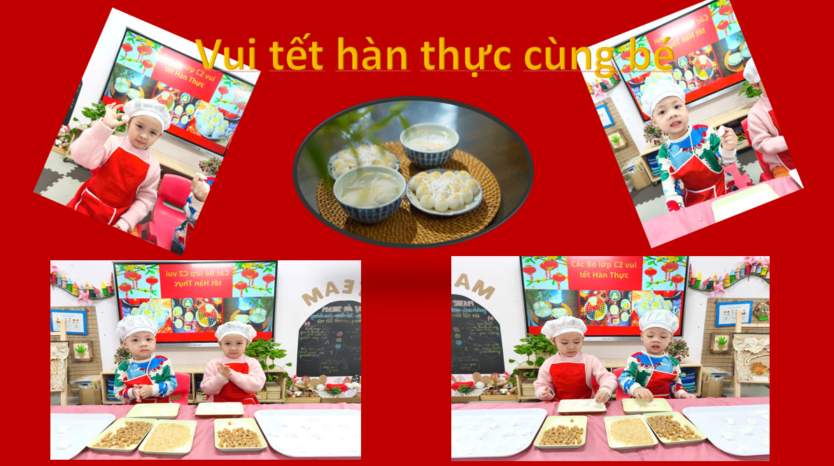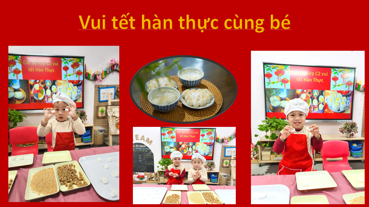 Để giúp trẻ biết được ý nghĩa của ngày Tết Hàn Thực, các cô lớp 3 tuổi C2 đã tổ chức hoạt động trải nghiệm: " Bé vui Tết Hàn thực" cho các con. Với hoạt động trải nghiệm này, các con được các cô giới thiệu về nguồn gốc, ý nghĩa của ngày Tết Hàn Thực. Thông qua hoạt động này, các bé được rèn luyện kỹ năng xoay tròn và làm ra những viên bánh trôi tròn tròn, xinh xắn trông thật đẹp mắt. Trước khi bắt tay vào làm, các bé được nghe cô giáo kể về ý nghĩa của ngày Tết Hàn Thực. Sau khi đã rửa tay sạch sẽ, các bé được bắt tay vào tự nặn những viên bánh trôi theo hướng dẫn của cô giáo.“ Tết hàn thực ” đã mang đến cho các bé trải nghiệm thú vị. Trẻ vô cùng háo hức vì đã được tự tay mình nặn ra những viên bánh trôi xinh xinh và thưởng thúc bánh trôi do mình làm ra.