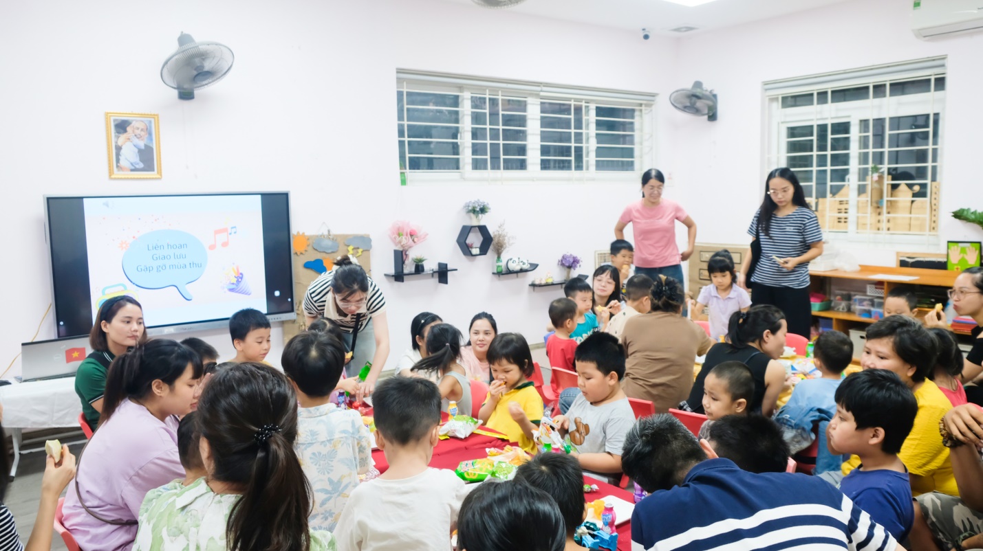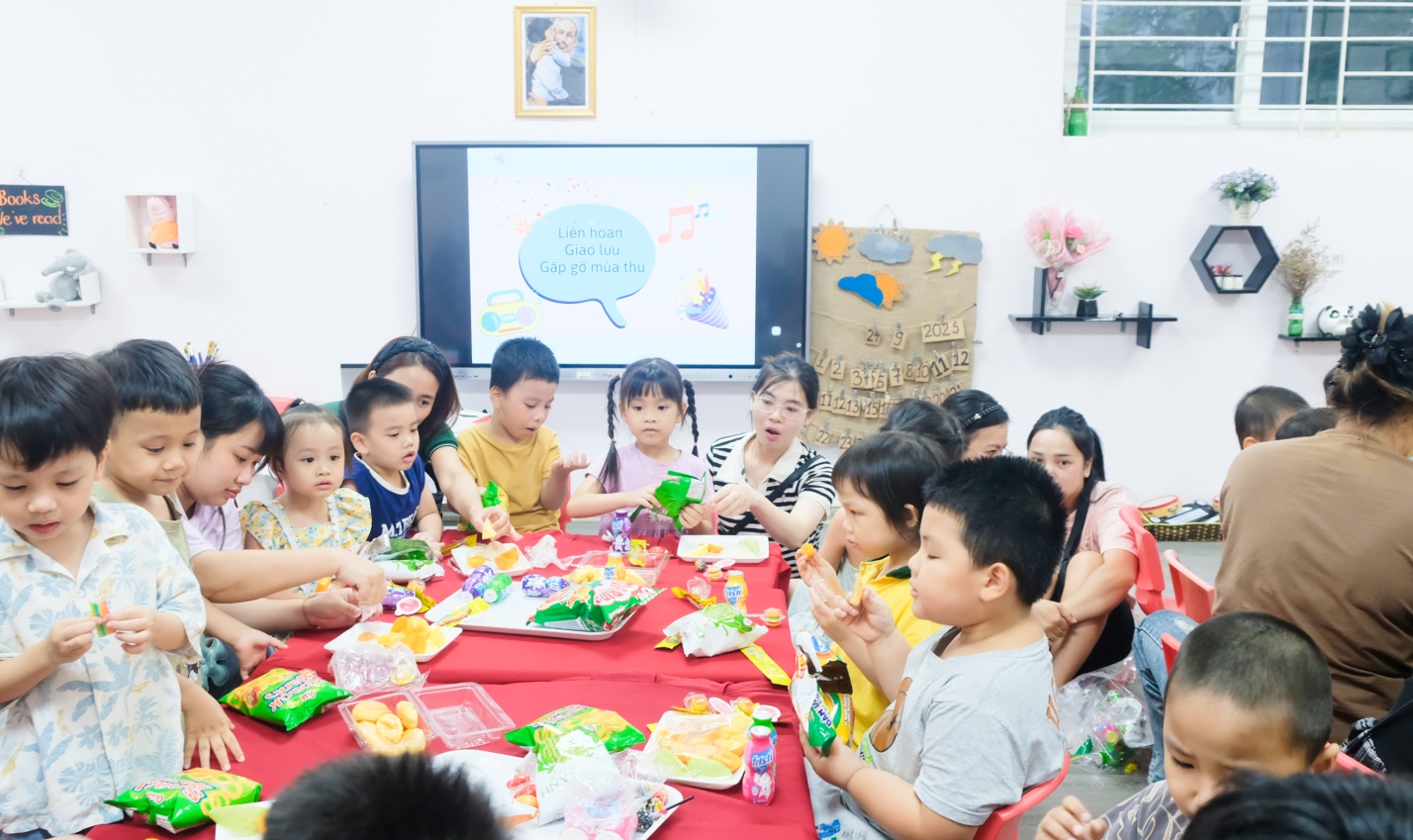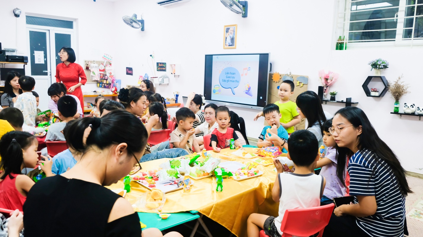 Kết thúc buổi họp, cô giáo, phụ huynh và các con cùng quây quần trong bữa tiệc “Gặp mặt mùa thu” ấm áp, thân tình. Những khoảnh khắc trò chuyện, sẻ chia và gắn bó đã để lại trong lòng mỗi người thật nhiều cảm xúc.