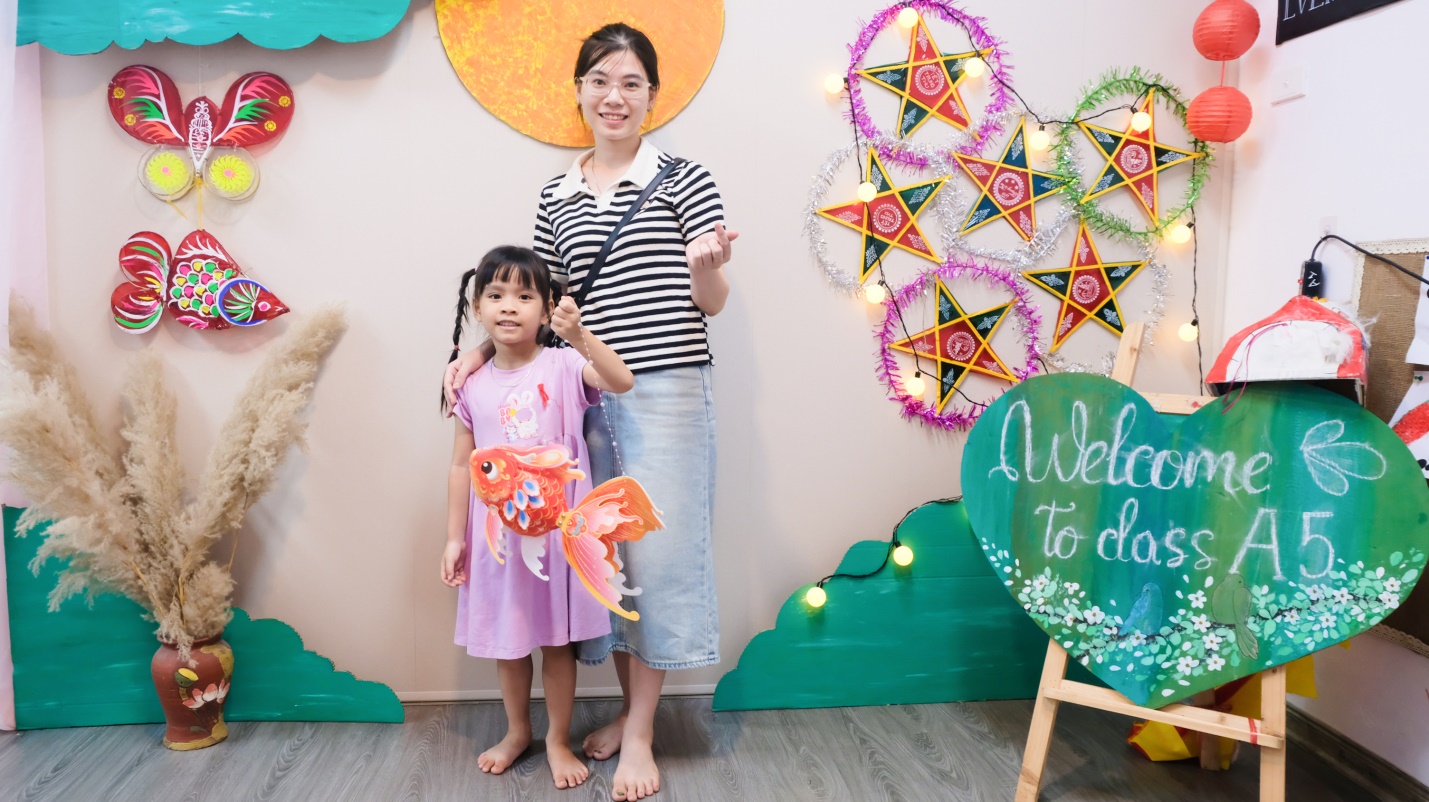 Trước khi ra về, phụ huynh và học sinh còn cùng nhau chụp ảnh check-in tại góc Trung thu rực rỡ sắc màu trong lớp học. Những nụ cười rạng rỡ, những bức hình đong đầy yêu thương đã trở thành dấu ấn đẹp, khép lại một buổi họp đầy ý nghĩa và mở ra một năm học mới tràn đầy niềm tin, niềm vui.