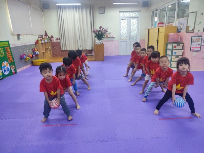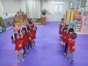 Cuối tiết học là phần trò chơi, đây cũng là phần các con rất hứng thú và mong đợi. Cô tổ chức cho các con chơi trò “Chuyền bóng qua đầu, qua chân” .