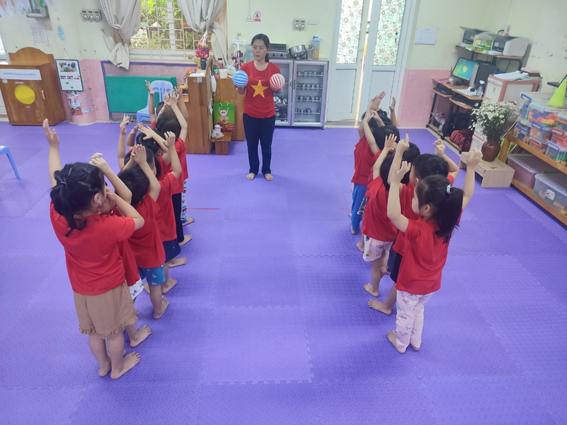 Trước khi tổ chức hoạt động, các cô đã chuẩn bị đầy đủ đồ dùng cho tiết học: Lớp học rộng rãi, thoáng mát; các đồ dùng cần thiết, và trang phục, tâm thế trẻ thoải mái.