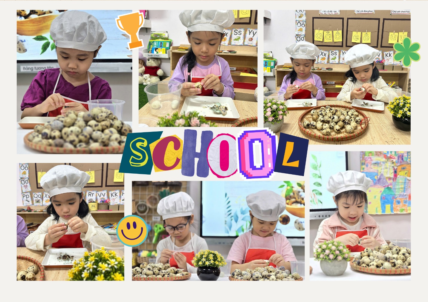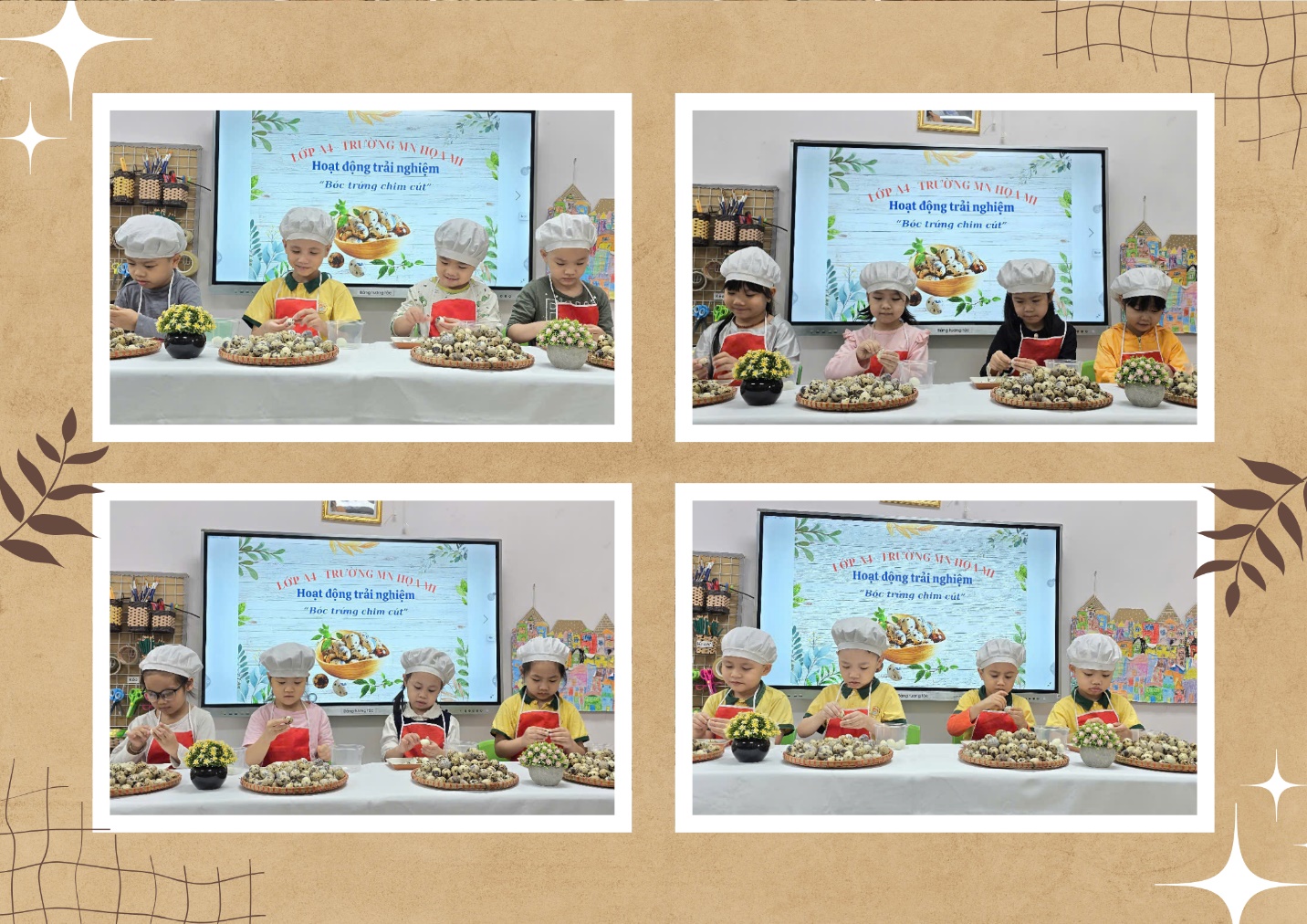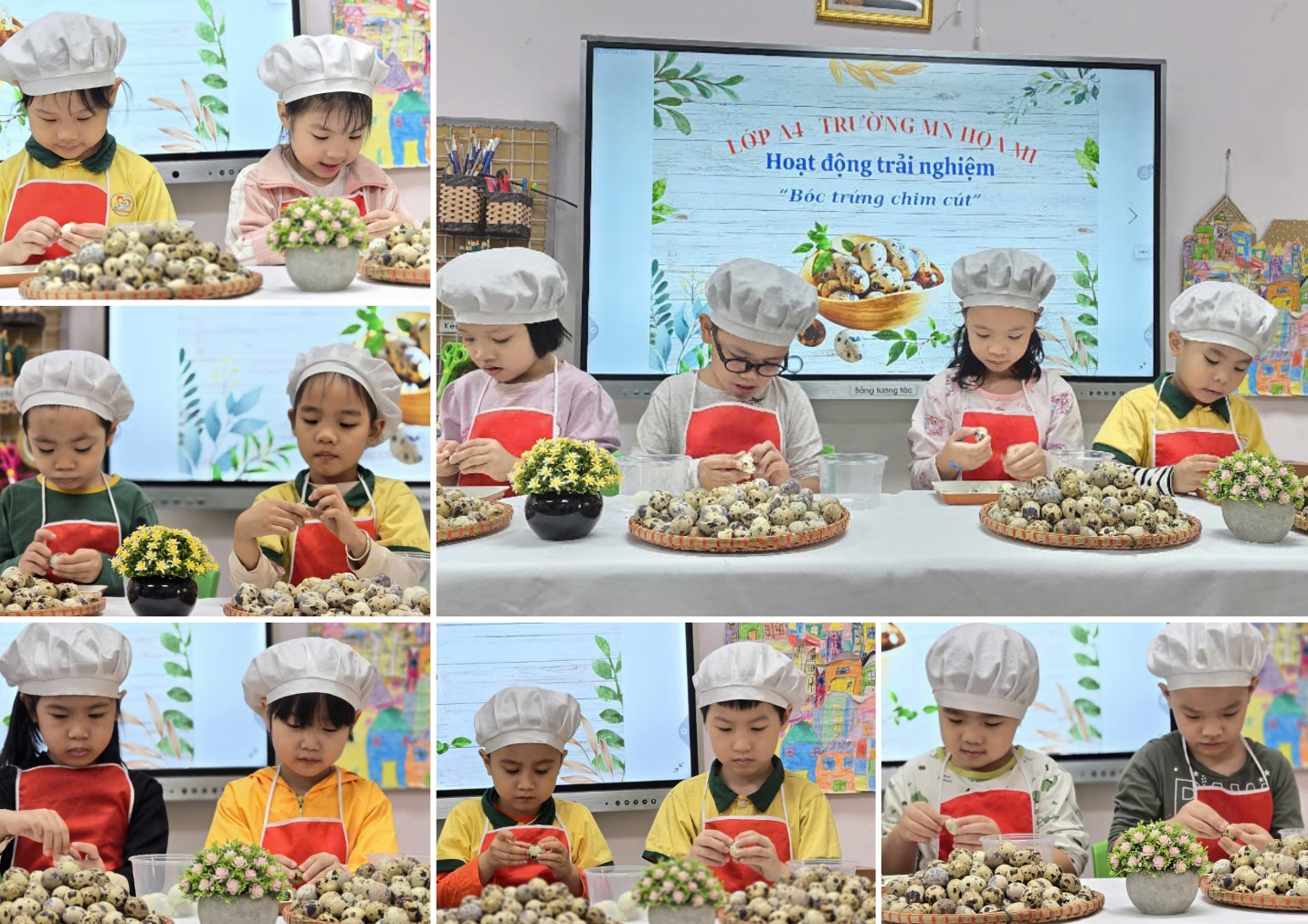 Hoạt động trải nghiệm: “Bóc trứng chim cút” của các bạn nhỏ lớp A4 – trường MN Họa Mi.