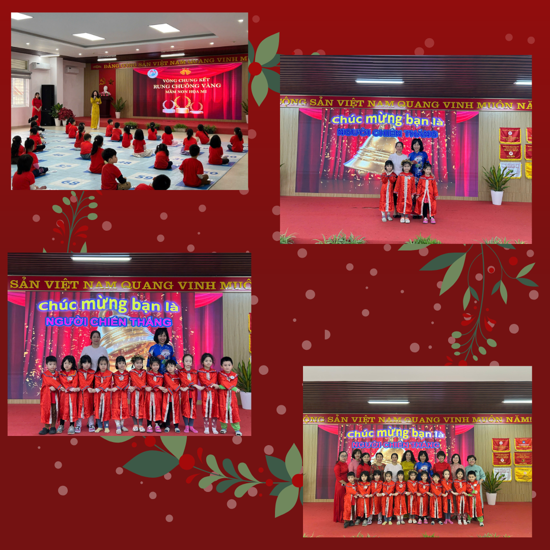 Trải qua rất nhiều phần thi hấp dẫn và bổ ích như: thi Vận Động, thi Ảnh, thi Rung Chuông Vàng, các bé đã thể hiện được tinh thần vượt khó, sự sáng tạo và khả năng tập trung cao. Các phần thi này không chỉ giúp trẻ rèn luyện thể lực mà còn khuyến khích sự phát triển trí tuệ và kỹ năng sống trong môi trường học tập vui tươi. Các bạn nhỏ lớp A3 đã nhiệt tình tham gia các phần thi sơ loại - bán kết - chung kết và đều giành được những thành tích xuất sắc.