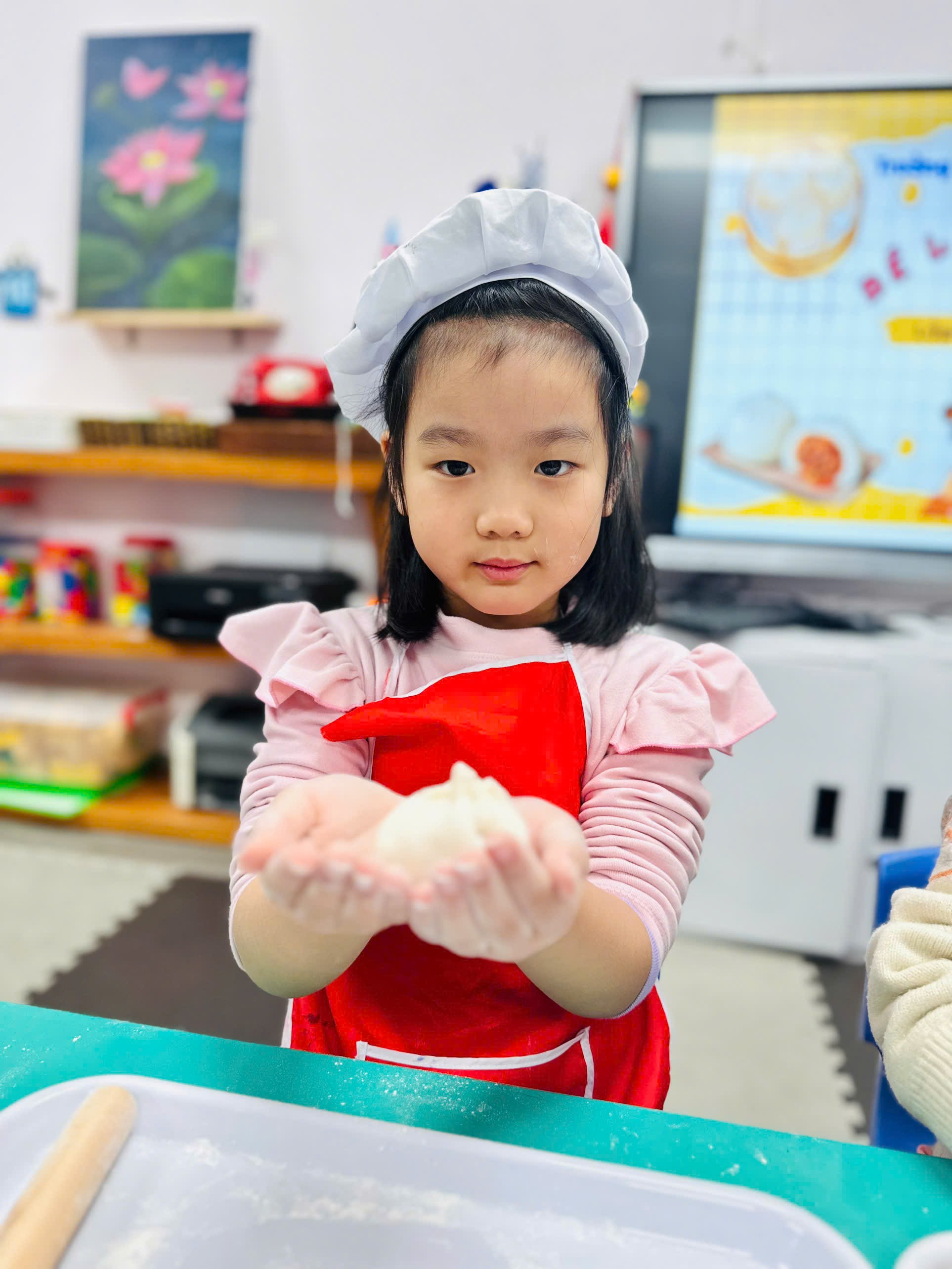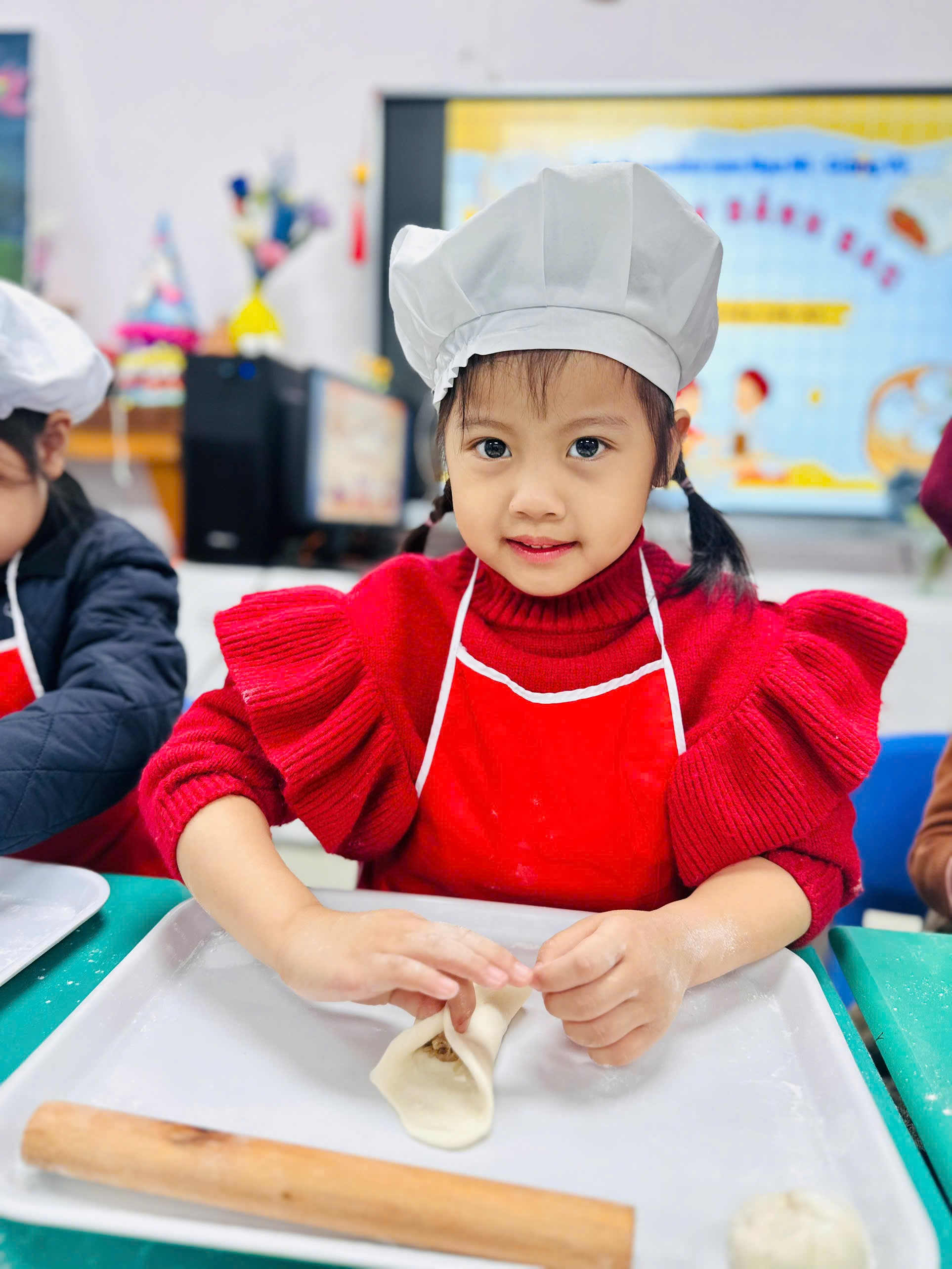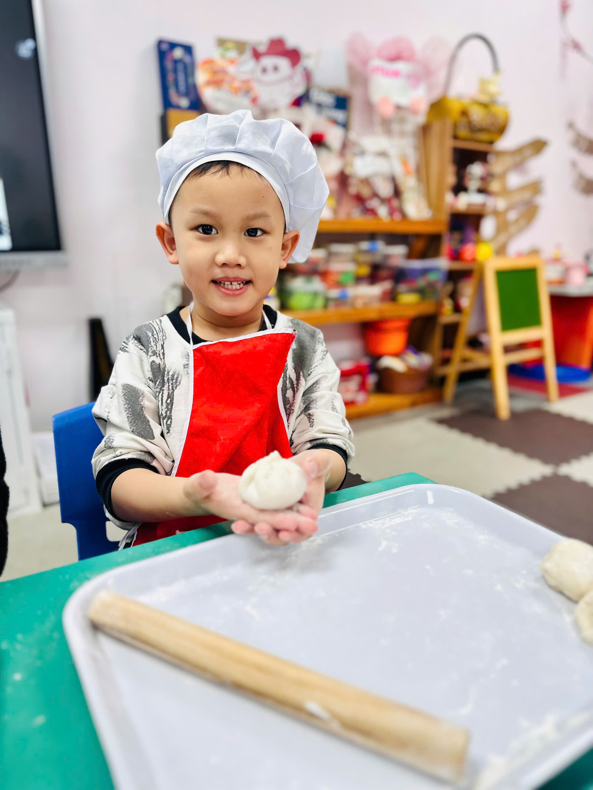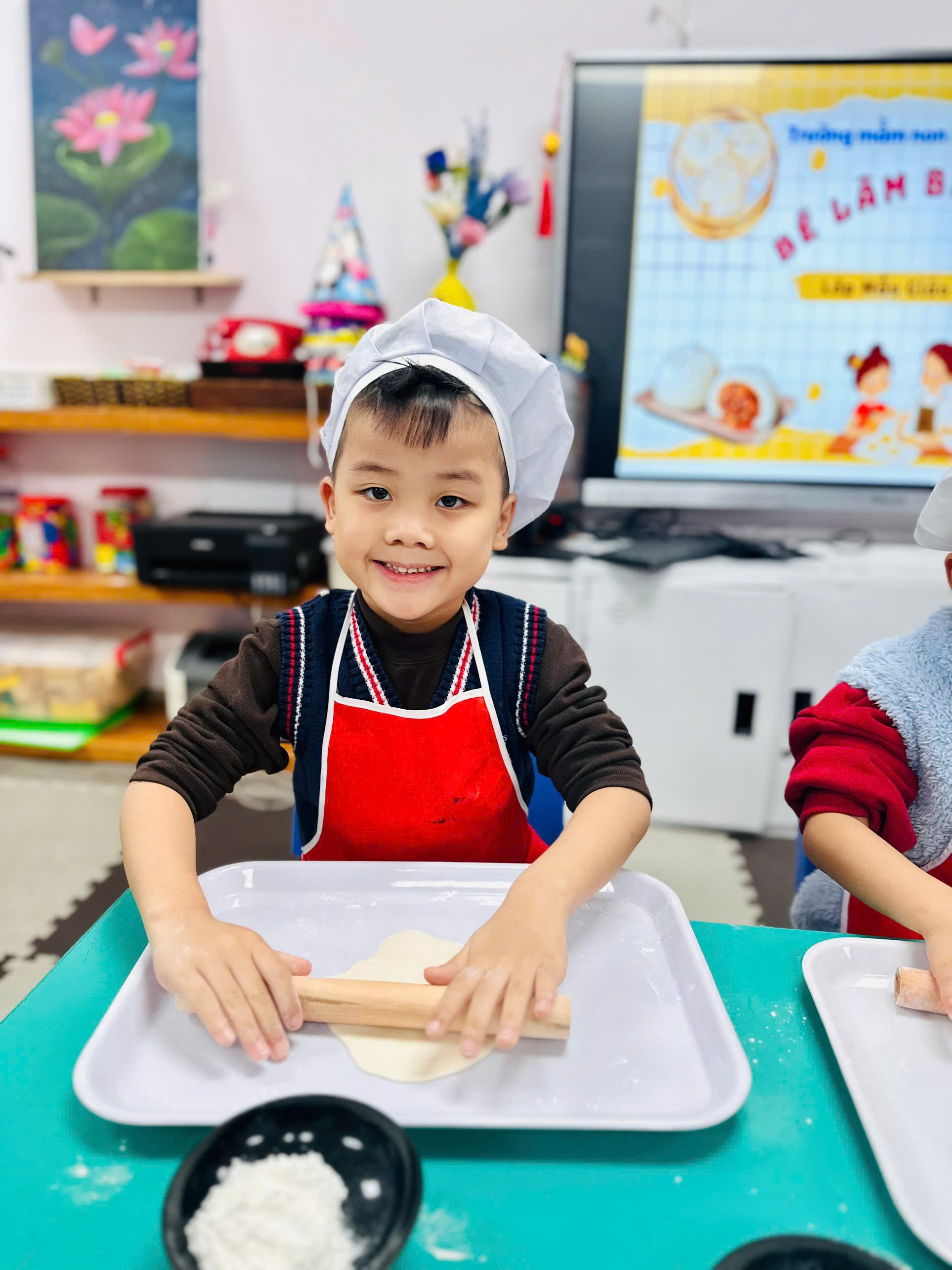 🥰 Không có bài vở chỉ có bột mì mềm mịn, nhân bánh ấm tay… và những bàn tay bé xíu đang rụt rè chạm vào bột lần đầu tiên.