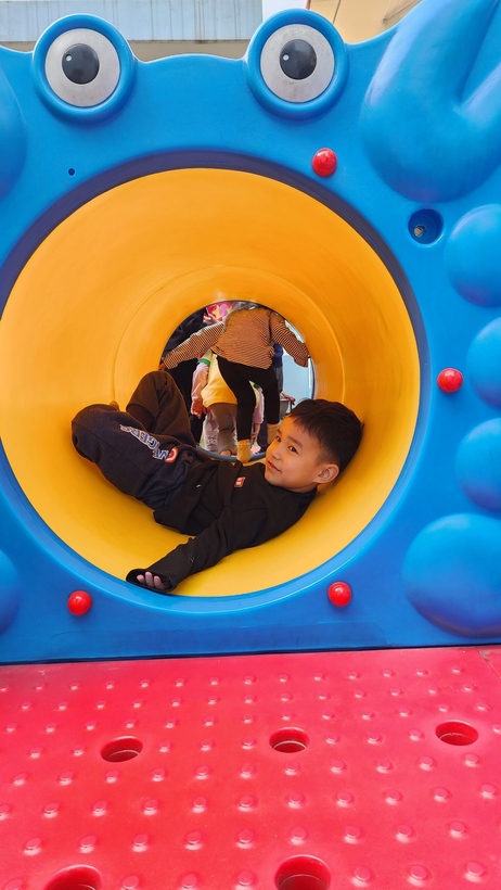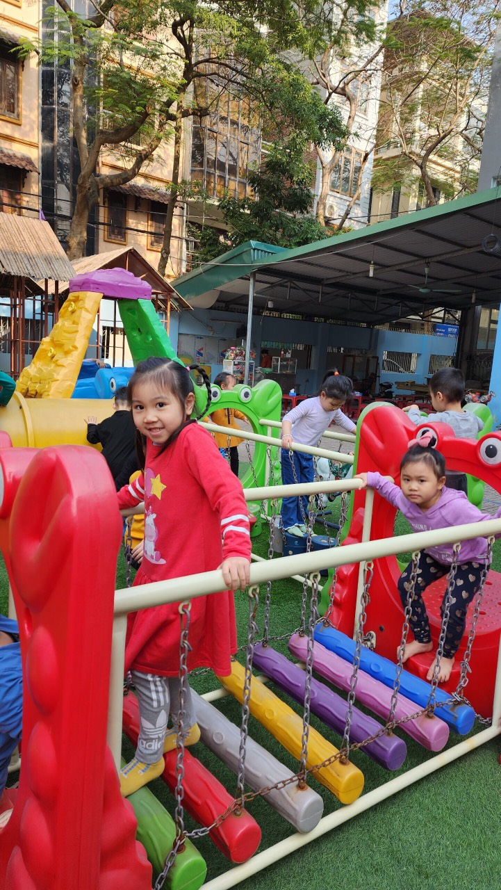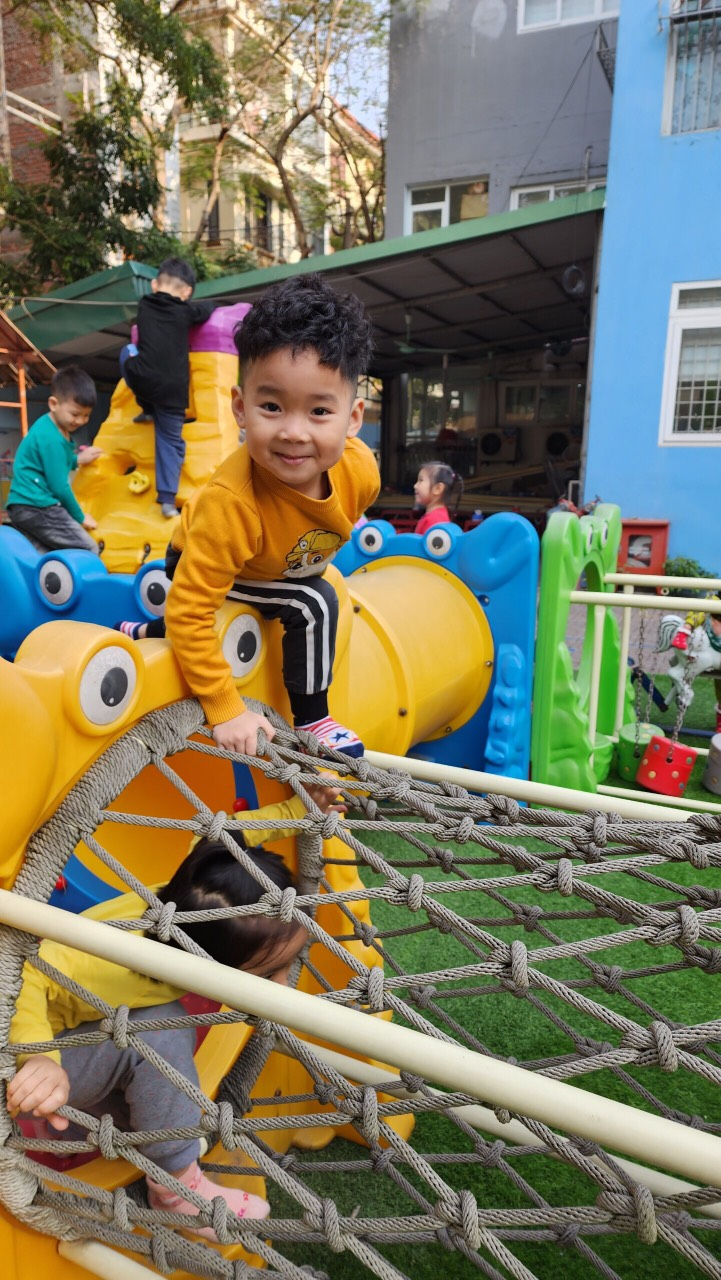 Trong không gian rộng rãi, thoáng mát, với nhiều đồ dùng, đồ chơi, nội dung chơi phong phú, bé nào cũng thích thú, hào hứng và hết mình với các trò chơi.