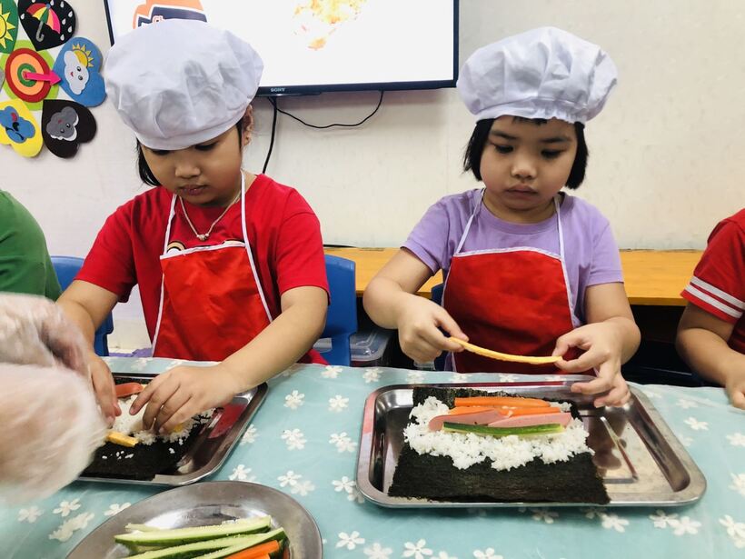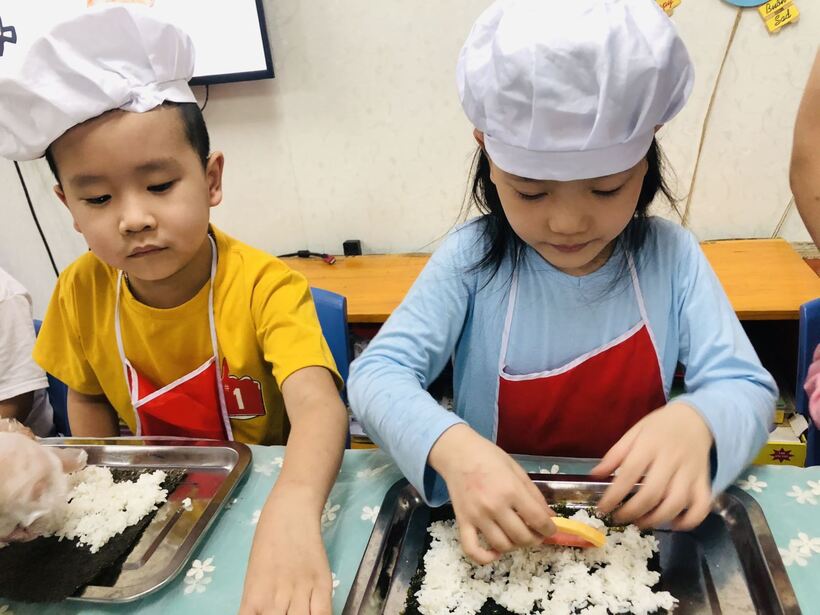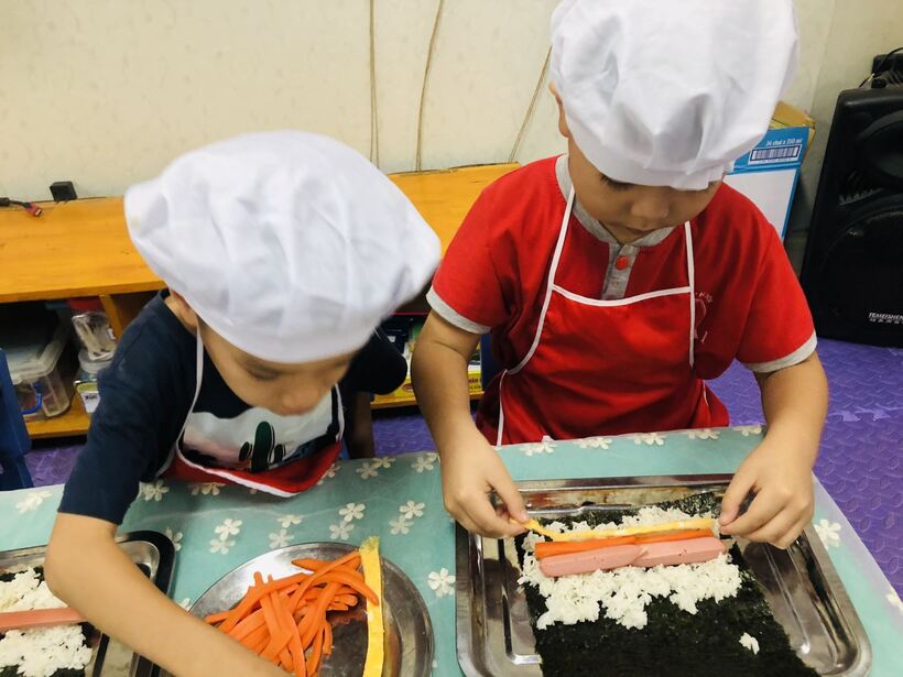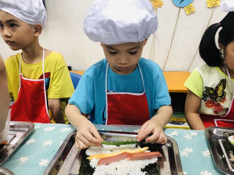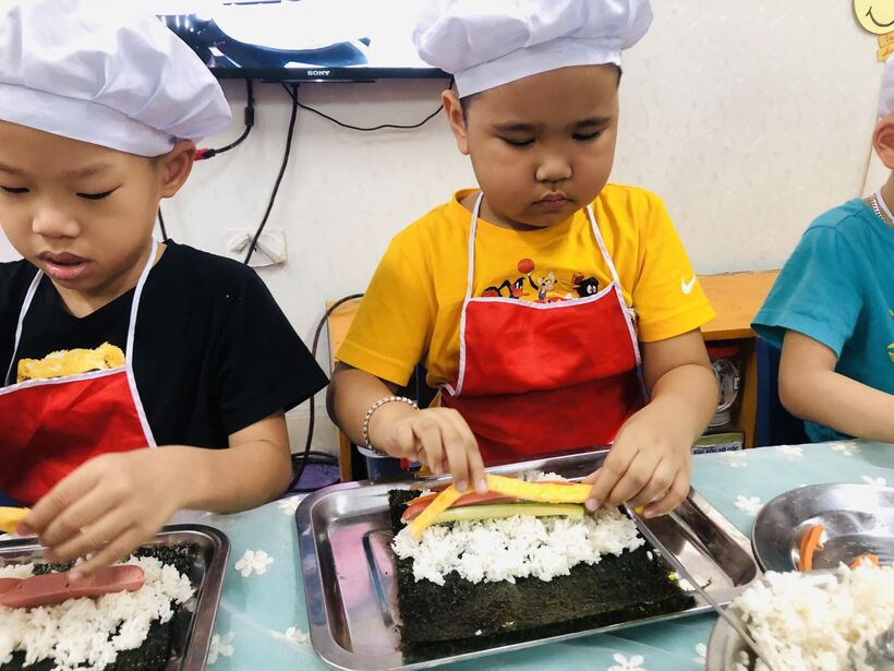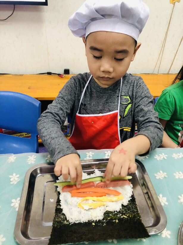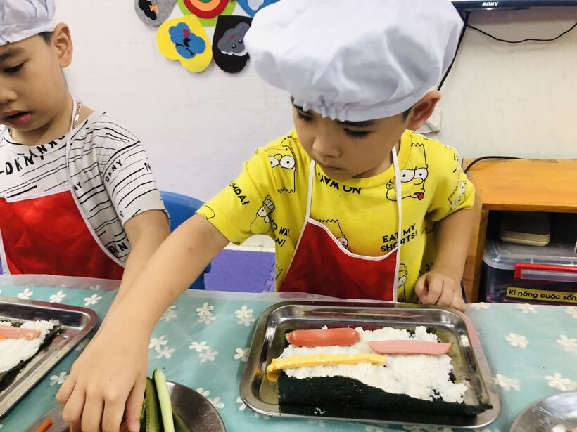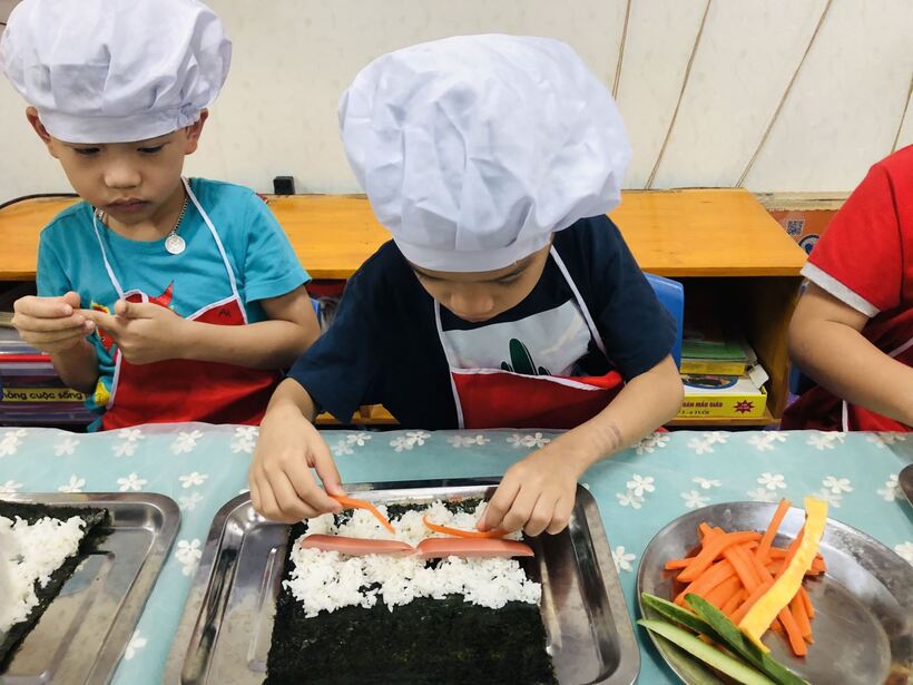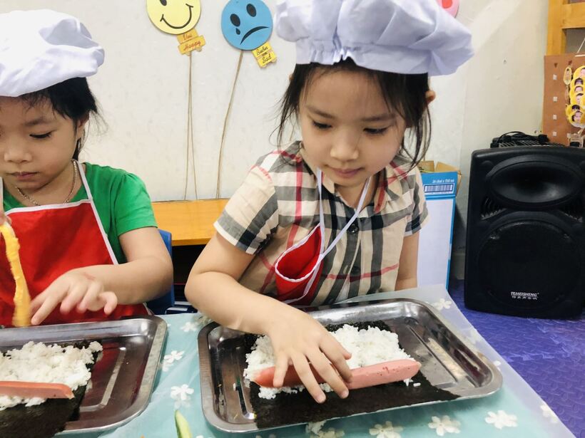Các bé ở trường mầm non Họa Mi cũng đã được thực hành " Bé tập làm nội trợ" cùng với các cô giáo của mình . Nào bây giờ mời các con lớp A2 và A5 hãy đi rửa tay thật sạch sẽ để chúng mình cùng nhau thực hành nhé. Hôm nay chúng mình cùng nhau làm món  "cơm cuộn" . Dưới đây là một số hình ảnh của các con lớp A2 và A5 đã được thực hành cùng  cô giáo đấy: