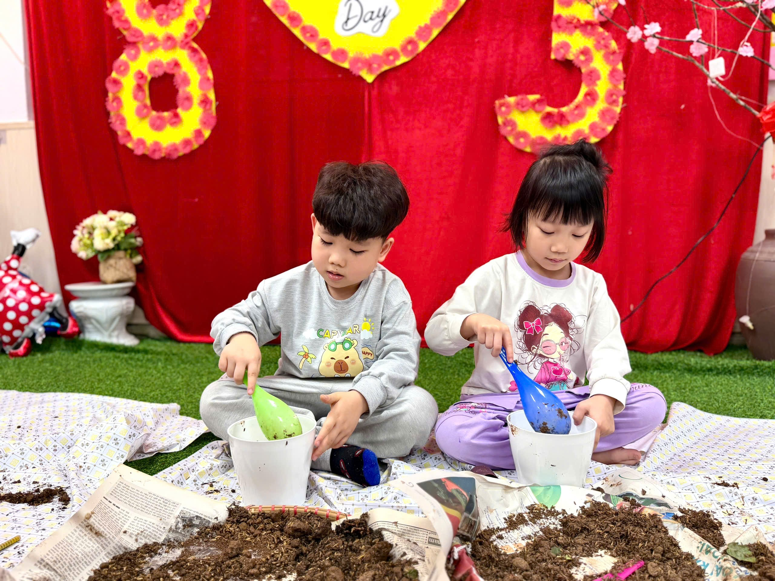 🌸 Trong không khí rộn ràng của mùa xuân, dưới sự hướng dẫn của các cô giáo, các bé đã hào hứng xới đất, trồng cây, tưới nước và chăm sóc những mầm xanh nhỏ bé. Mỗi chiếc lá, mỗi nhành cây như gửi gắm vào đó tình cảm trong trẻo của các con dành cho những người phụ nữ mà mình yêu quý❤️.