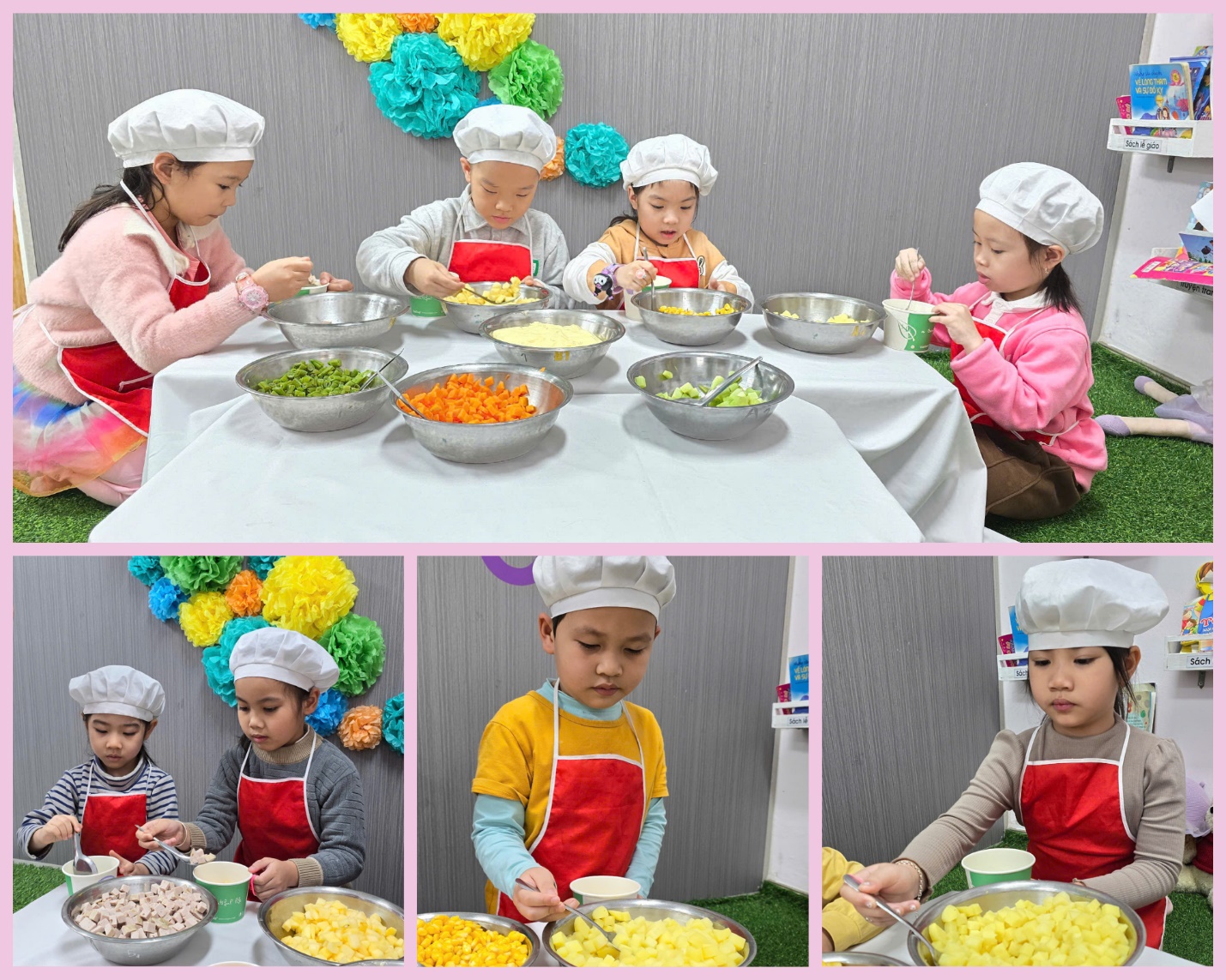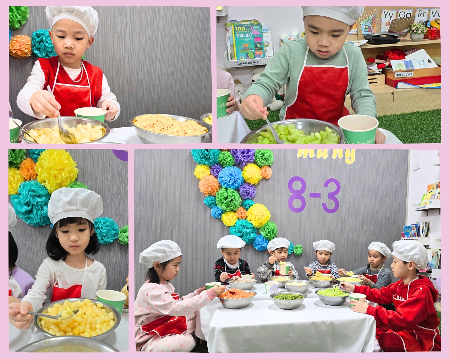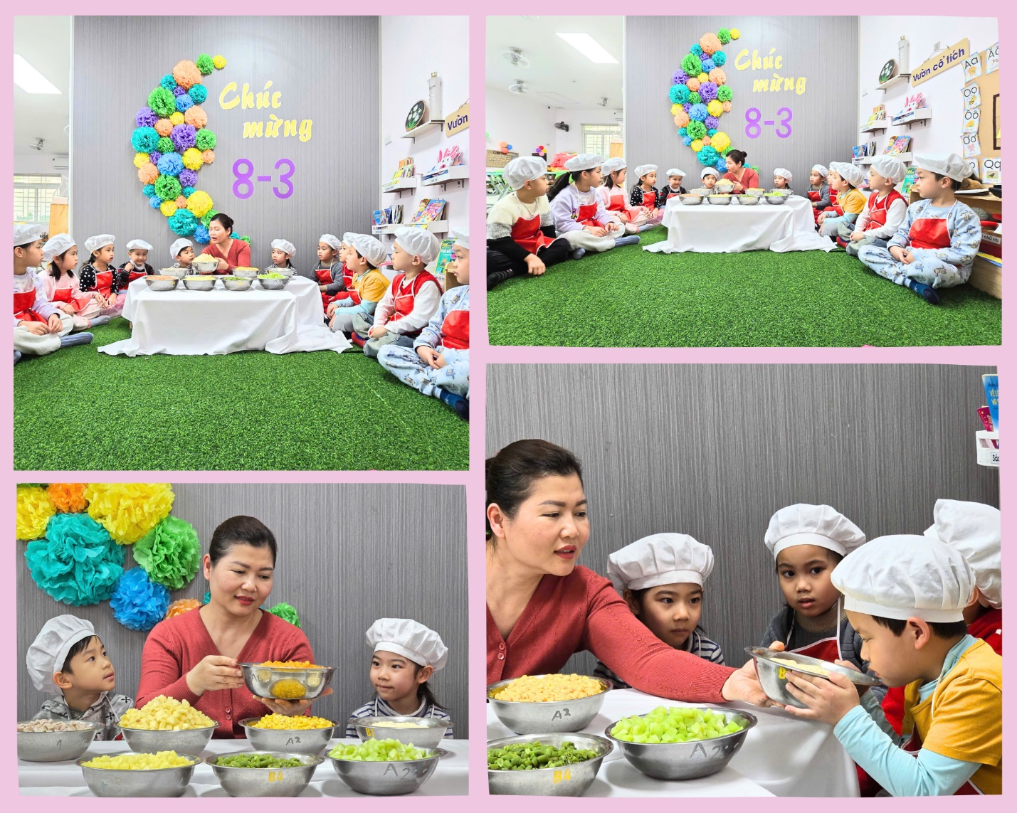 Ngày Quốc tế Phụ nữ 8/3 là dịp để các bé thể hiện tình yêu thương và sự biết ơn đối với mẹ – người luôn yêu thương và chăm sóc mình mỗi ngày. Các bé lớp MGL A4 của trường Mầm non Họa Mi đã cùng nhau trổ tài làm món Salad Nga thơm ngon, tươi mát dành tặng mẹ yêu.
