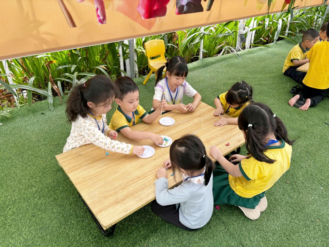 Cảm giác vui tươi và phấn khích vẫn chưa tan biến khi các bé chia sẻ với nhau những trò chơi mà mình đã tham gia, những lần cùng bạn bè chạy nhảy, kéo co hay trượt cỏ. Mặc dù đã rất mệt, nhưng các bé vẫn còn tràn đầy năng lượng và không ngừng nói về chuyến đi. Các bé cảm thấy tự hào khi được khám phá những điều mới lạ và học hỏi thêm về thế giới xung quanh.