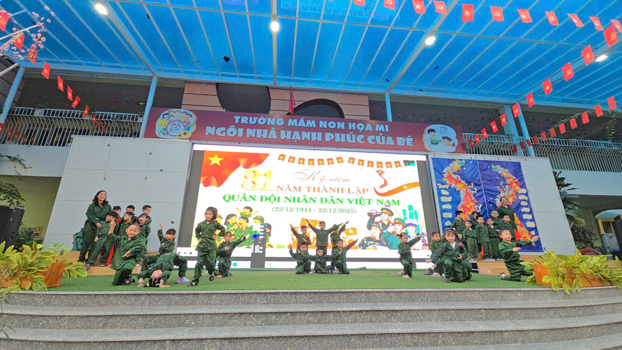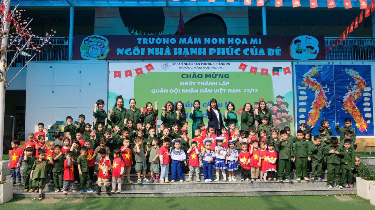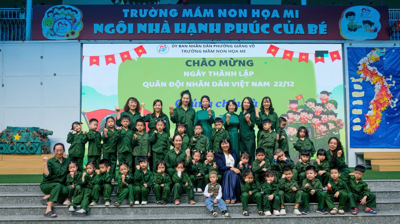 Hòa chung không khí thi đua sôi nổi chào mừng Ngày thành lập Quân đội Nhân dân Việt Nam 22/12, các bé lớp Mẫu giáo lớn A4 đã hào hứng tham gia Ngày hội “Chúng cháu là chiến sĩ tí hon” với nhiều hoạt động ý nghĩa, giàu tính giáo dục và để lại nhiều cảm xúc đẹp trong lòng cô trò, phụ huynh và toàn thể nhà trường.