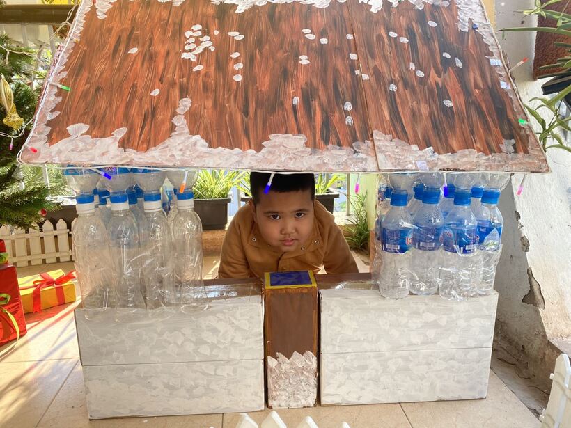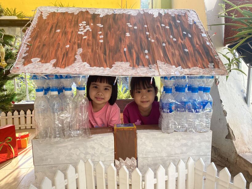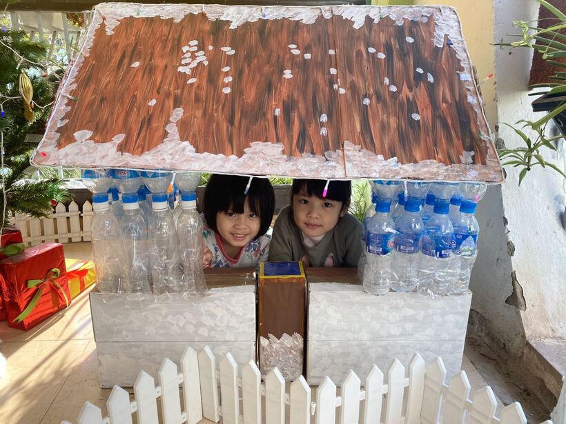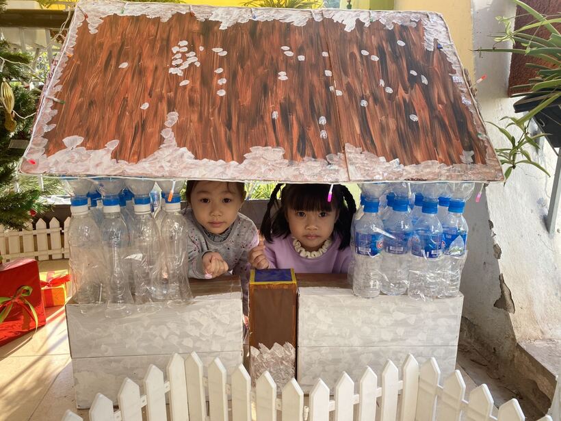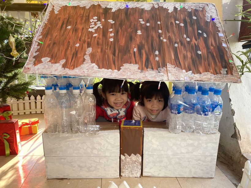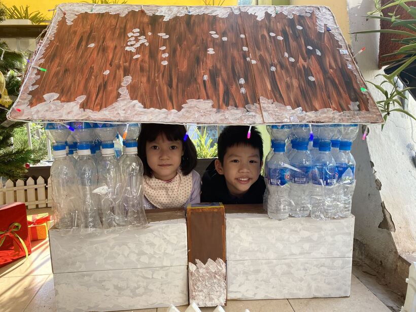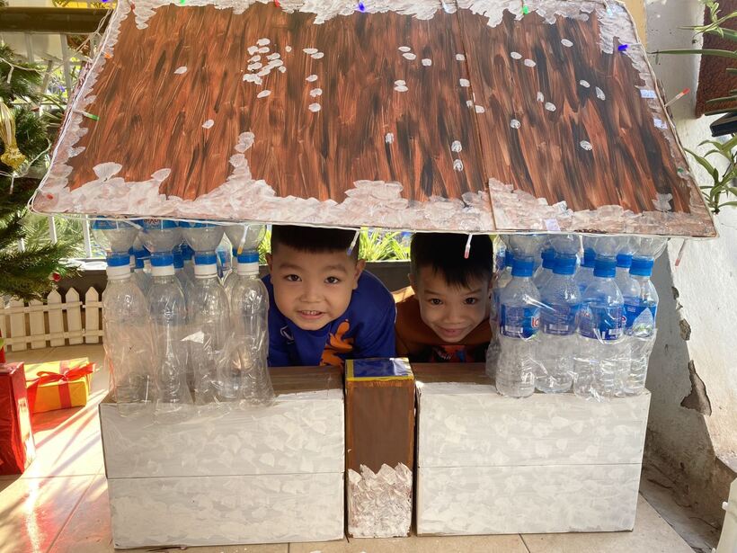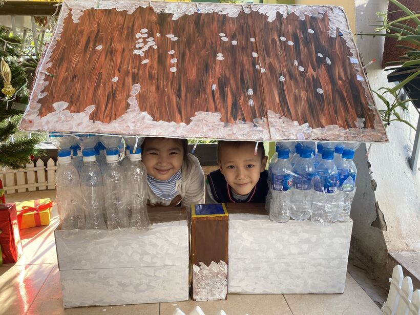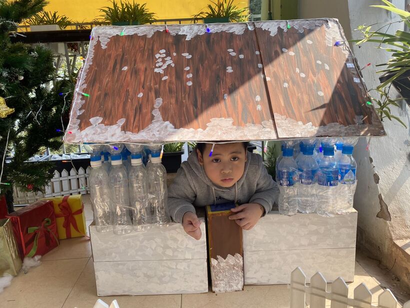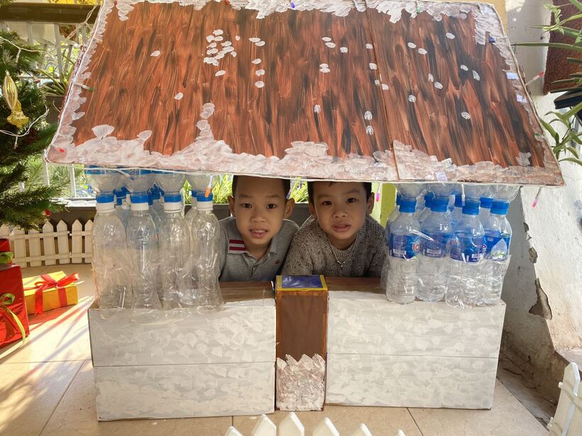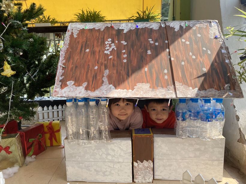 Trong một hoạt động steam ở lớp A2 trường mầm non Họa Mi các bé lớp A2 đã được cùng cô giáo “ làm ngôi nhà tuyết” bằng các chại nhựa và hộp cát tông đã qua sử dụng. Bằng các hoạt động trải nghiệm sáng tạo dưới sự gợi mở của cô giáo trẻ đã tưởng tượng và vận dụng thực tế  để tạo ra “ ngôi nhà tuyết “ của mình đón giáng sinh đấy.