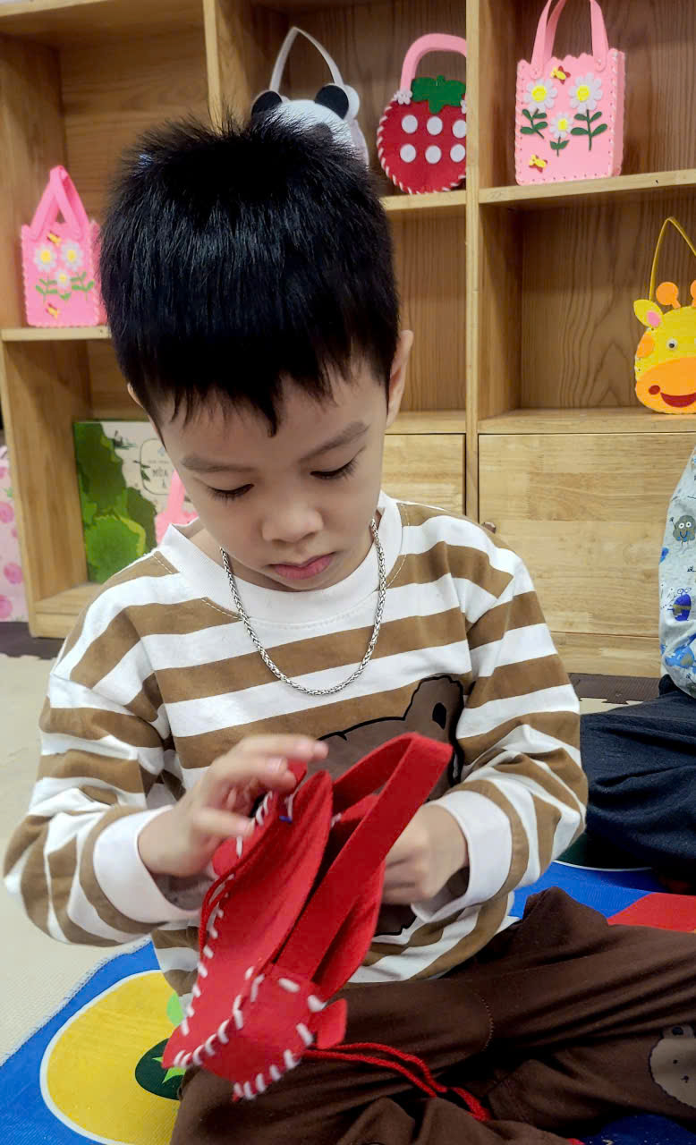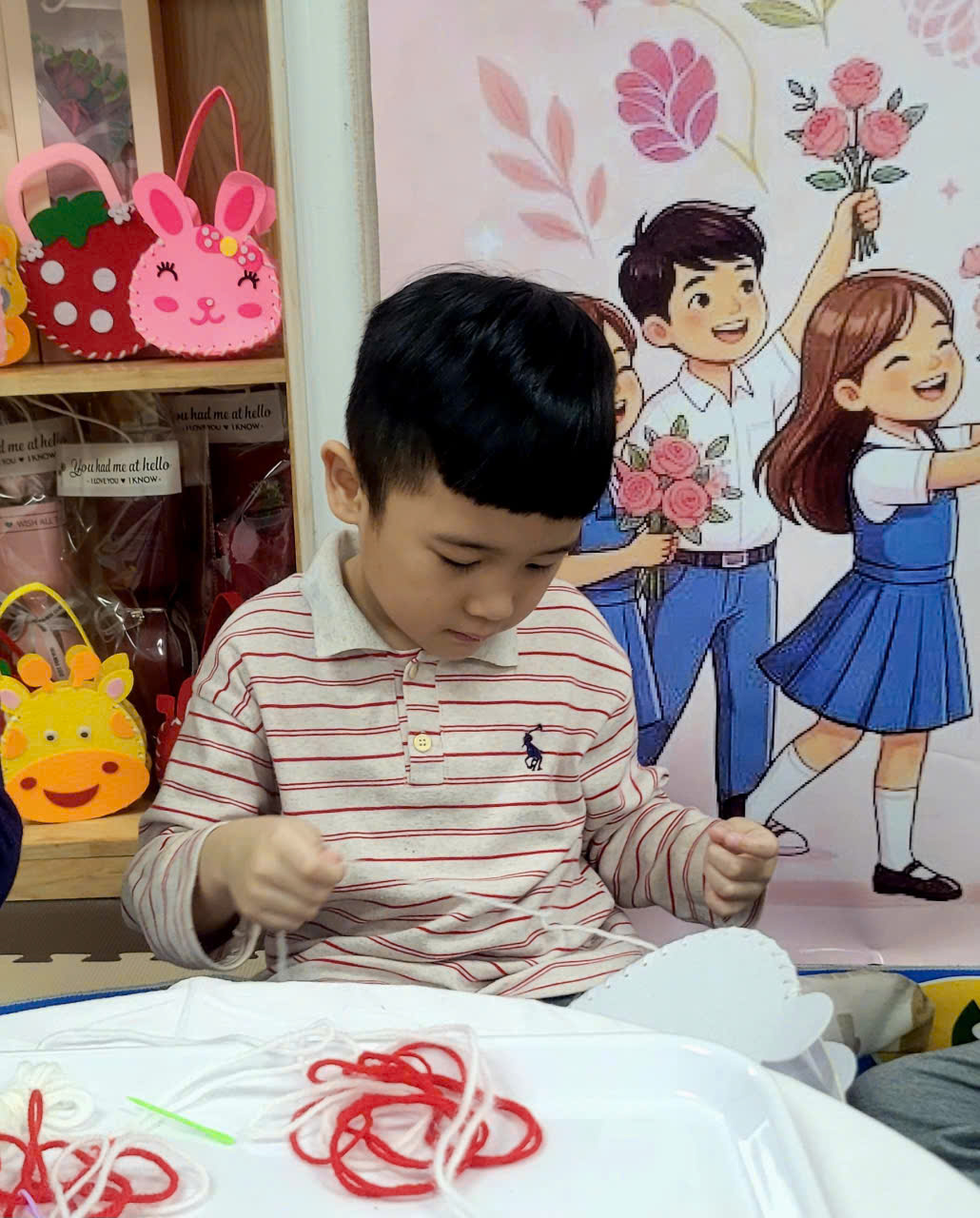 Thông qua hoạt động này, các con không chỉ tạo ra một món quà đáng yêu mà còn được rèn luyện nhiều kỹ năng mới như: làm quen với kim – chỉ, khâu những mũi đơn giản, thao tác bóc dán, rèn sự khéo léo, tính kiên trì và khả năng sáng tạo. Quan trọng hơn cả, các con còn học được cách bày tỏ tình cảm, sự biết ơn đối với bà và mẹ – những người luôn yêu thương và chăm sóc các con mỗi ngày.