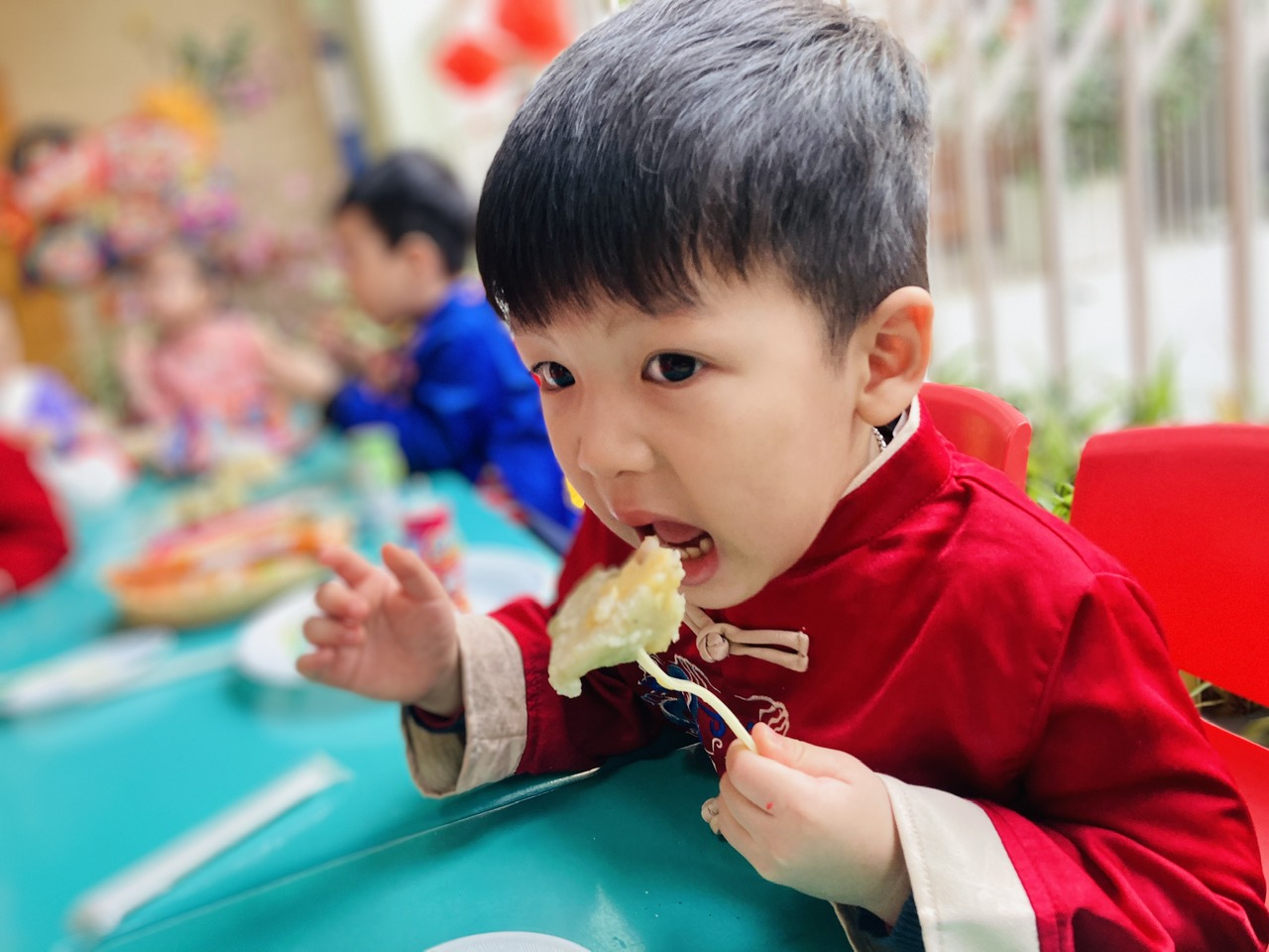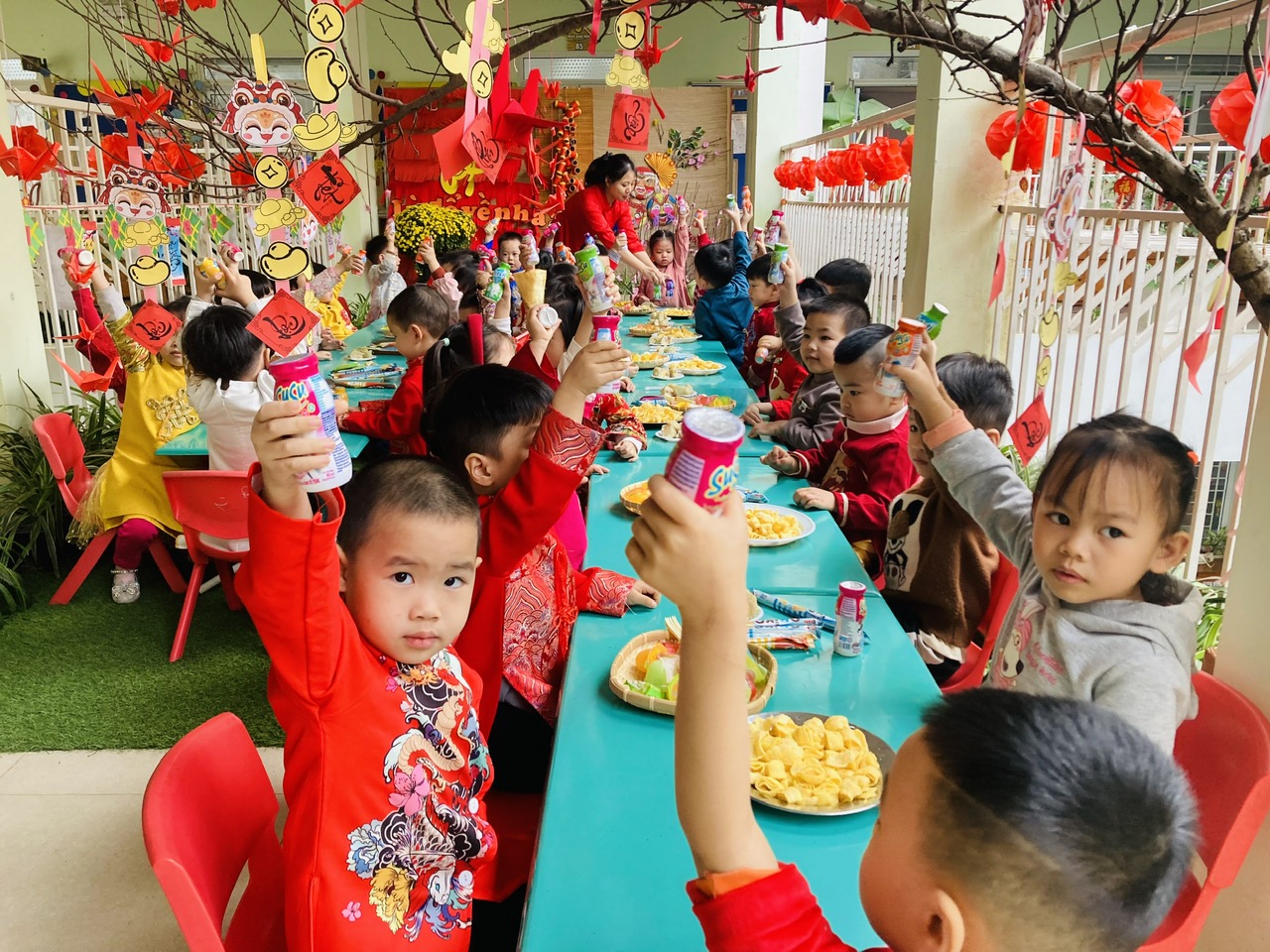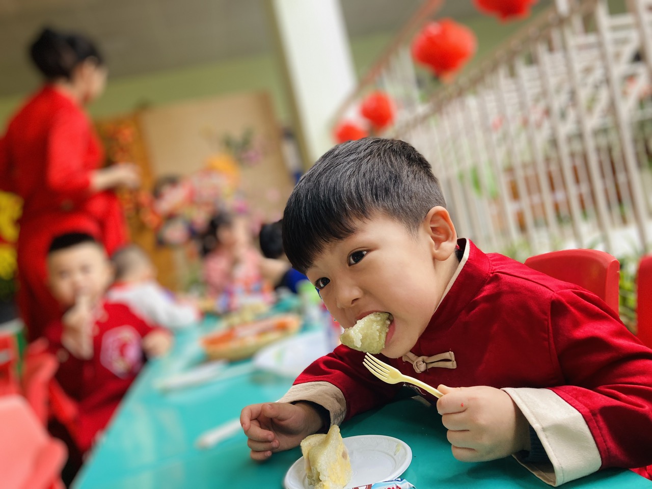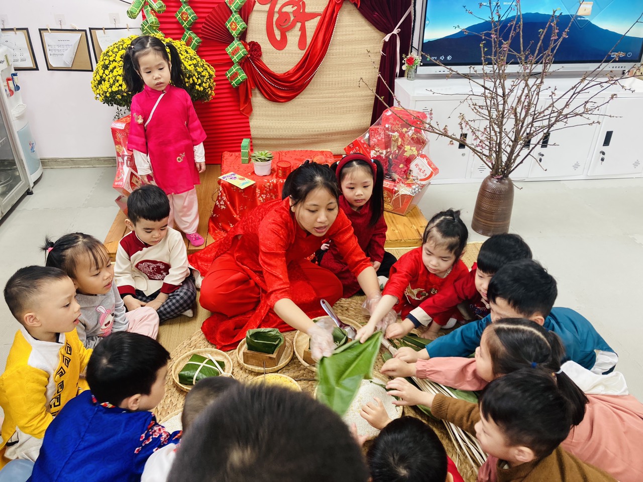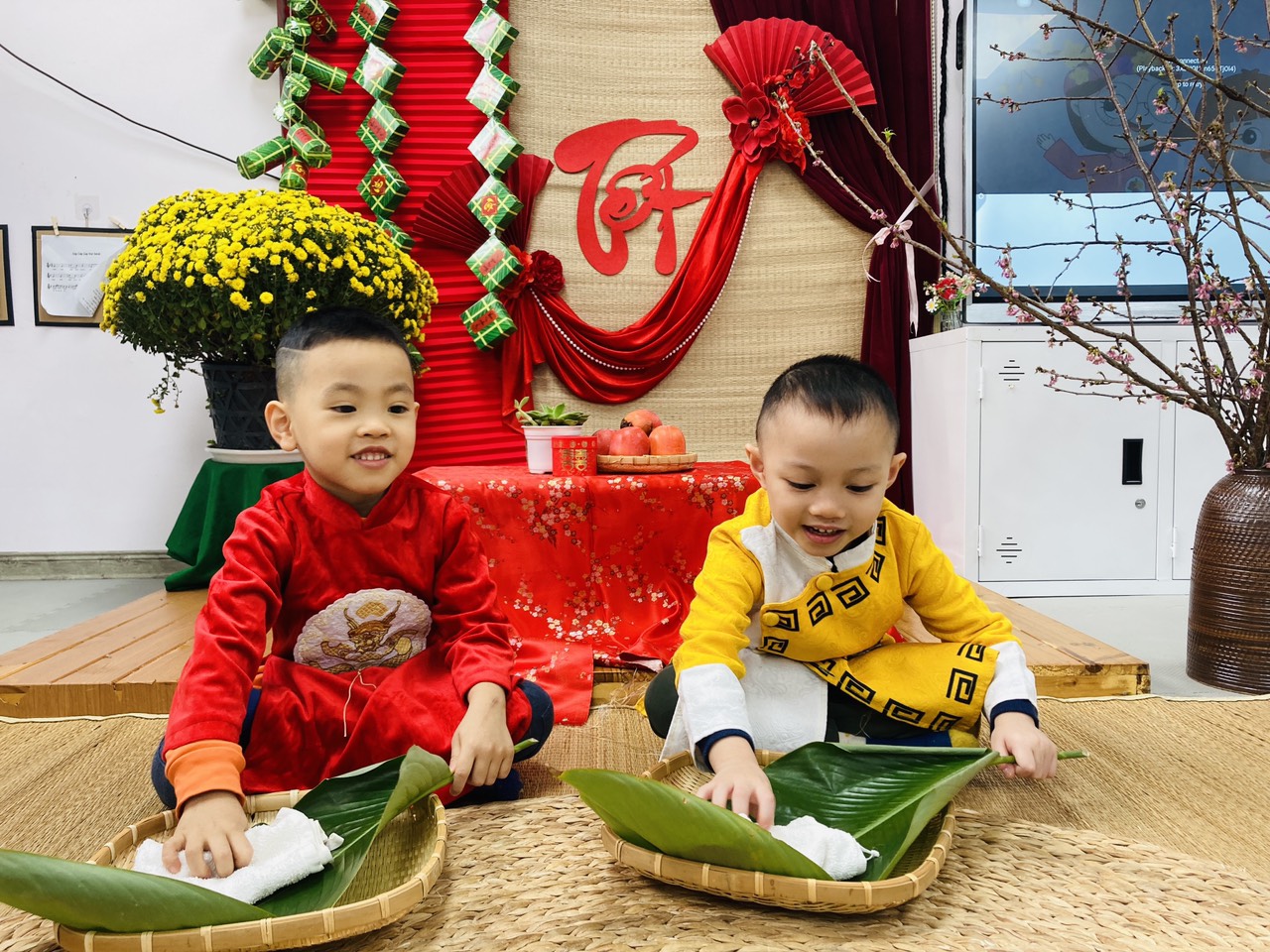 Với những nguyên liệu thân thuộc nhưng mang đậm nét đặc trưng của ngày Tết như: lá dong, gạo nếp, đỗ xanh, hạt tiêu ướp thịt… cùng với những tiếng cười đùa vui vẻ, những bàn tay nhỏ xinh và biết bao niềm háo hức của các con chúng ta đã có một trải nghiệm thật vui vẻ với hoạt động “Gói bánh chưng ngày Tết” đúng không nào?