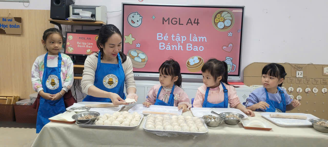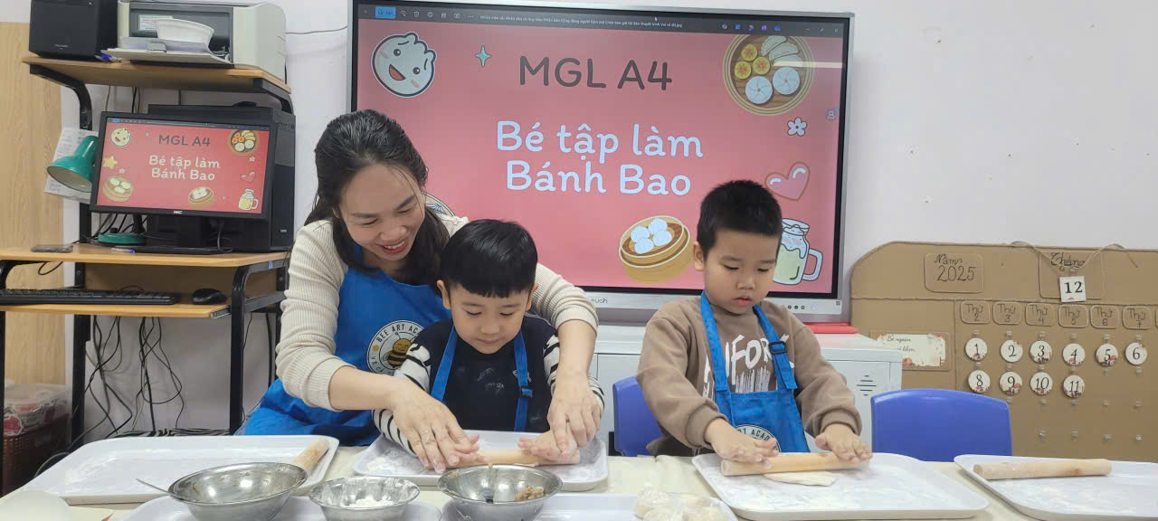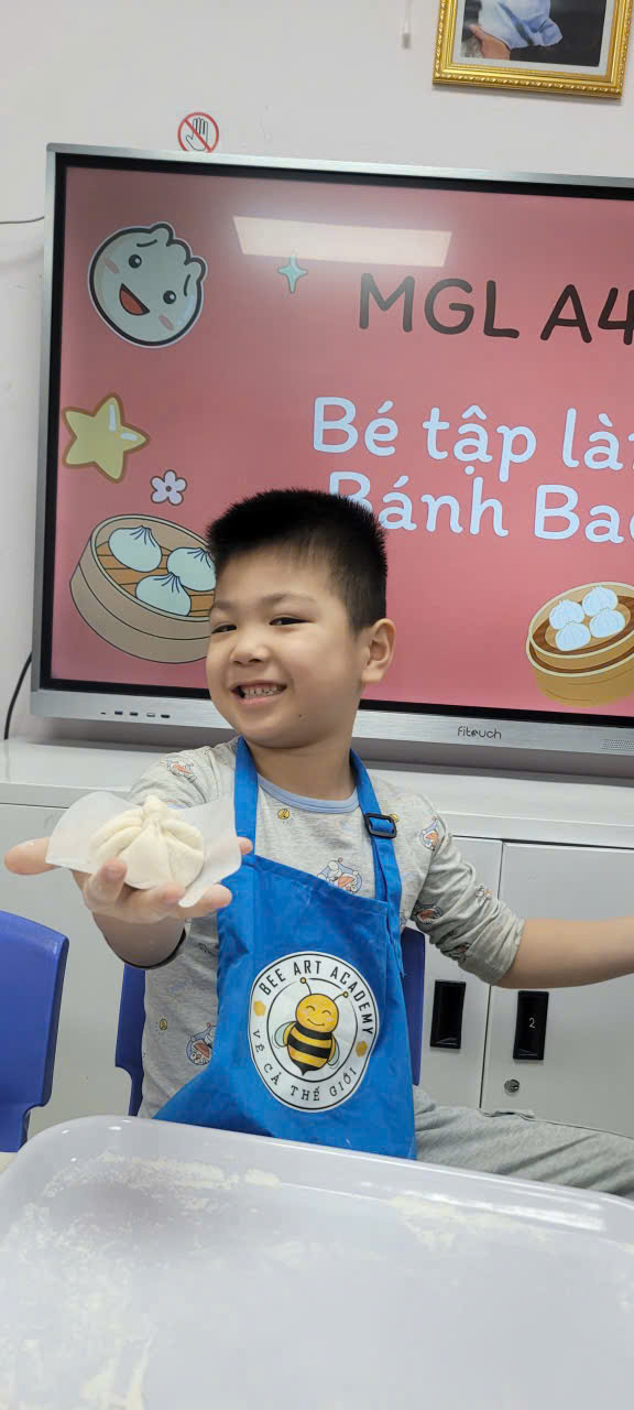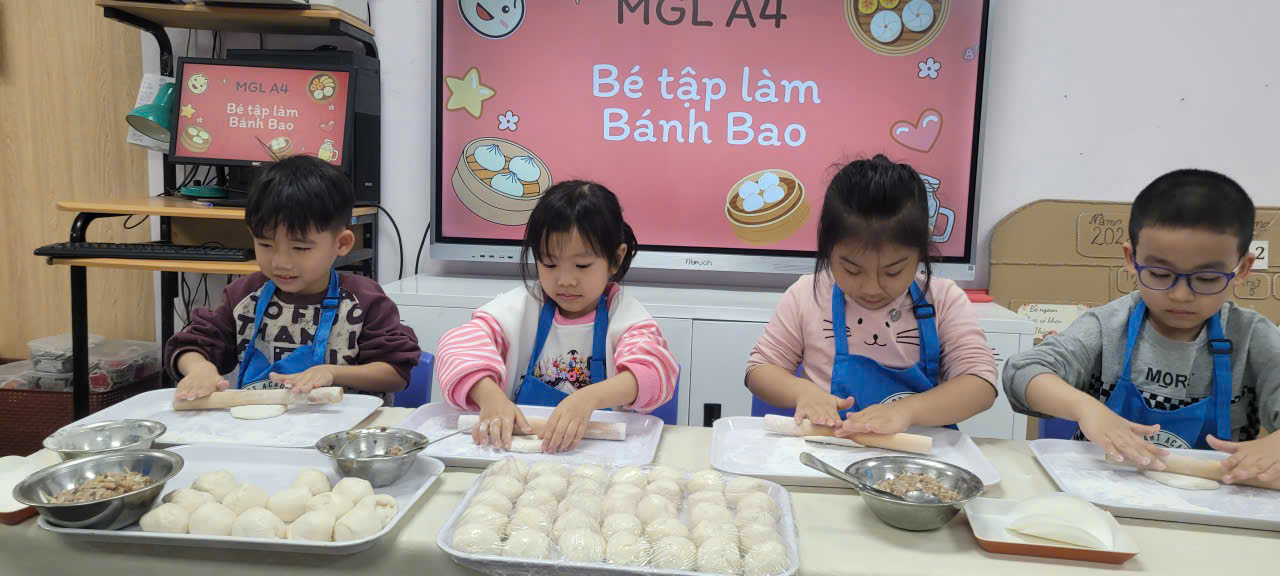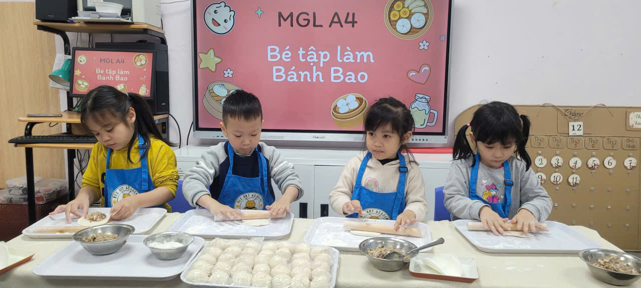 Trong không khí học tập sôi nổi và tràn đầy hứng khởi, các bạn nhỏ lớp MGL A4 đã có một buổi trải nghiệm vô cùng thú vị với hoạt động làm bánh bao truyền thống – một món ăn quen thuộc, gần gũi trong bữa ăn gia đình Việt.