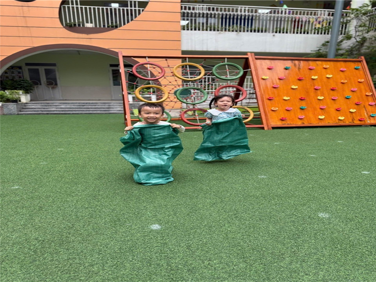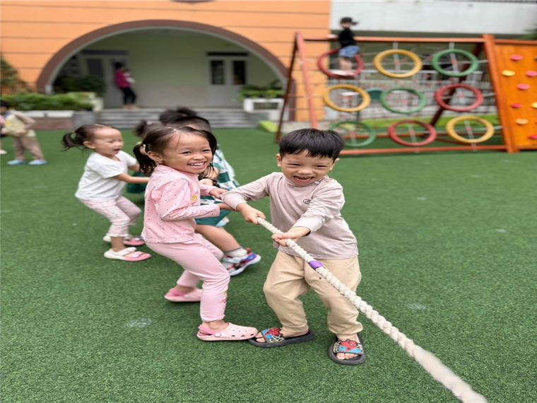 💐Tại giờ học ngoài trời, các cô đã tổ chức những trò chơi dân gian thú vị như: “Mèo đuổi chuột, Nhảy bao bố, Kéo co,… để các bạn nhỏ lớp B1 có thể thỏa sức trải nghiệm, tận hưởng sự vui vẻ mà những trò chơi dân gian này mang lại.