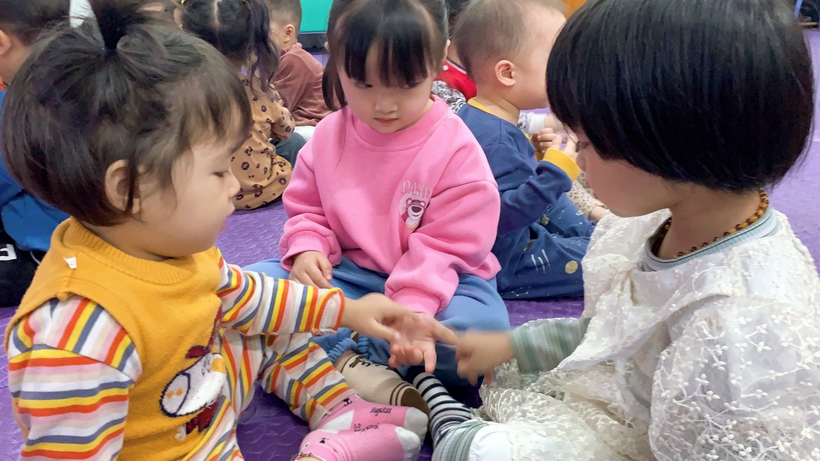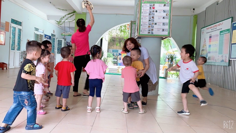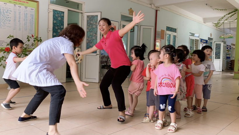 Các bé hứng khởi, vui vẻ khi tham gia trò chơi "Chi chi chành chành".