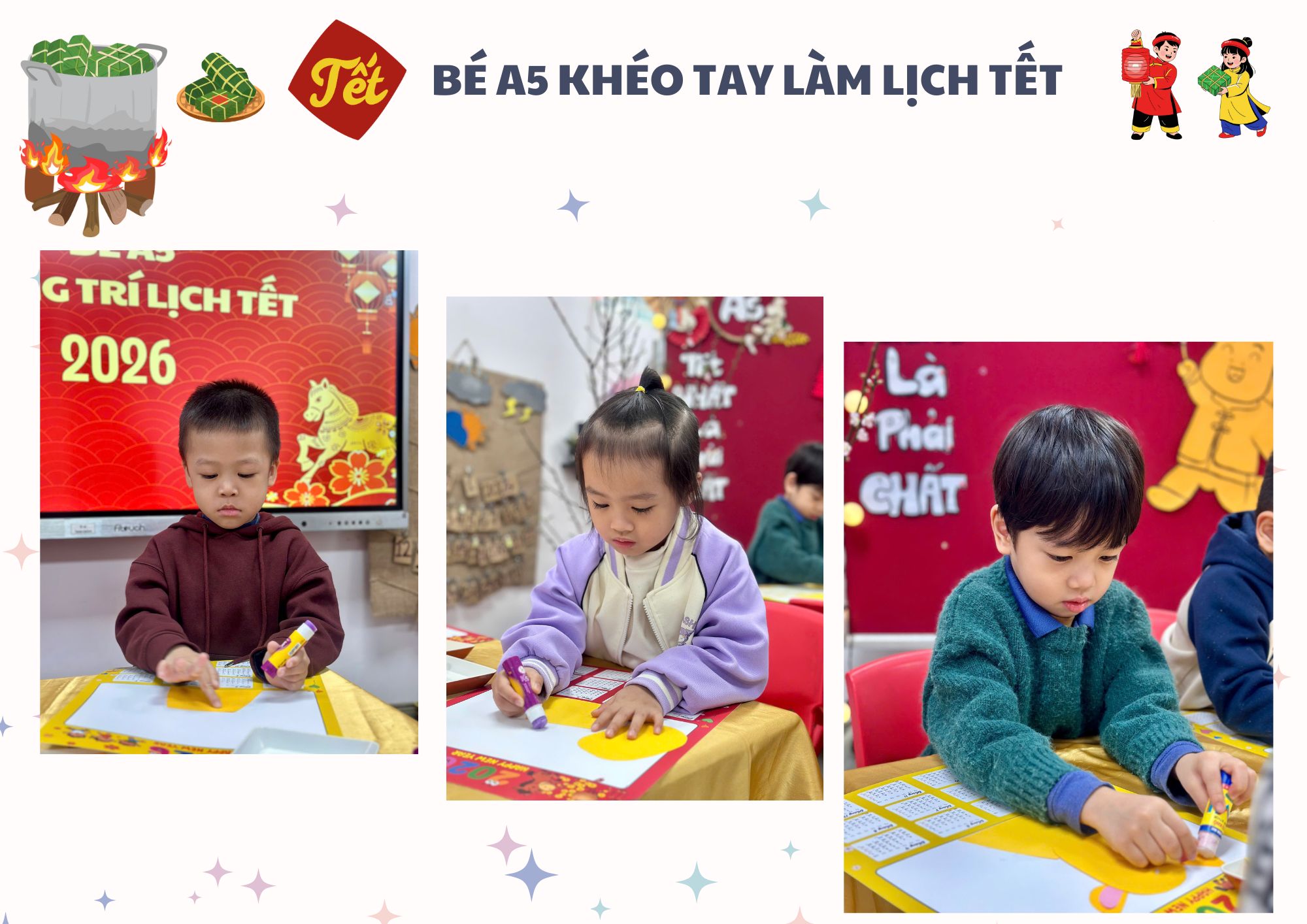 Qua hoạt động này, trẻ không chỉ được rèn luyện sự khéo léo của đôi tay, khả năng tập trung và phối hợp mắt – tay, mà còn được bồi dưỡng tình yêu với văn hóa truyền thống ngày Tết. Mỗi tờ lịch không chỉ là sản phẩm thủ công mà còn là món quà chứa đựng tình cảm, lời chúc và niềm vui của các con dành cho gia đình.