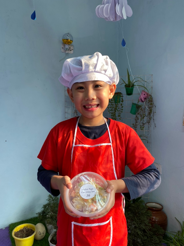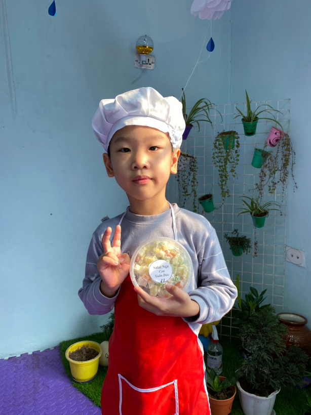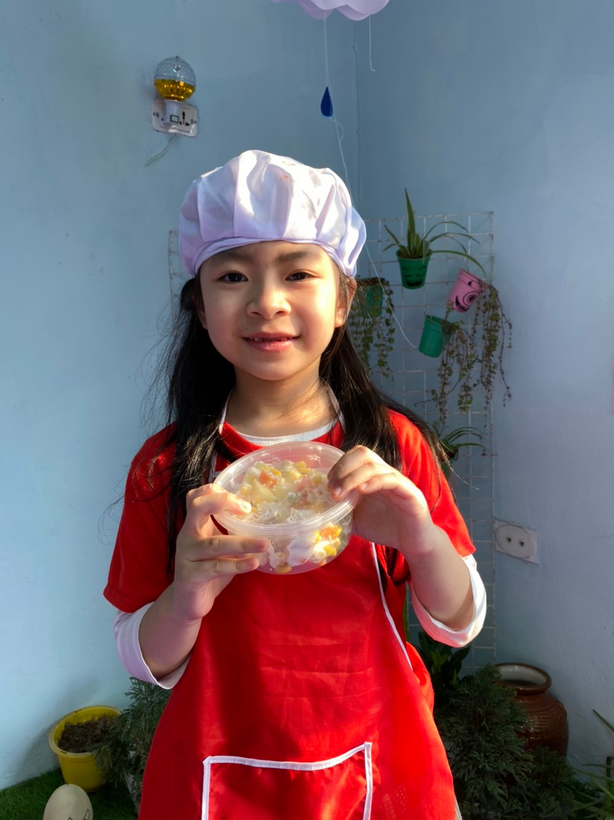 Bé tập làm nội trợ với món salad Nga