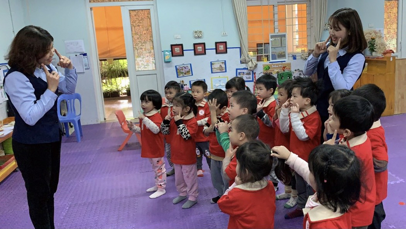Thay vì nhõng nhẽo,mếu máo khi rời bố mẹ,các con chào cô theo nhiều cách khác biệt rồi vui vẻ chạy vào lớp .Nhìn con sà vào lòng cô khi vừa đến lớp cũng như tự tin ,vui vẻ hăng hái bước vào lớp học càng khiến cho các phụ huynh yên tâm tin tưởng hơn khi ra về.