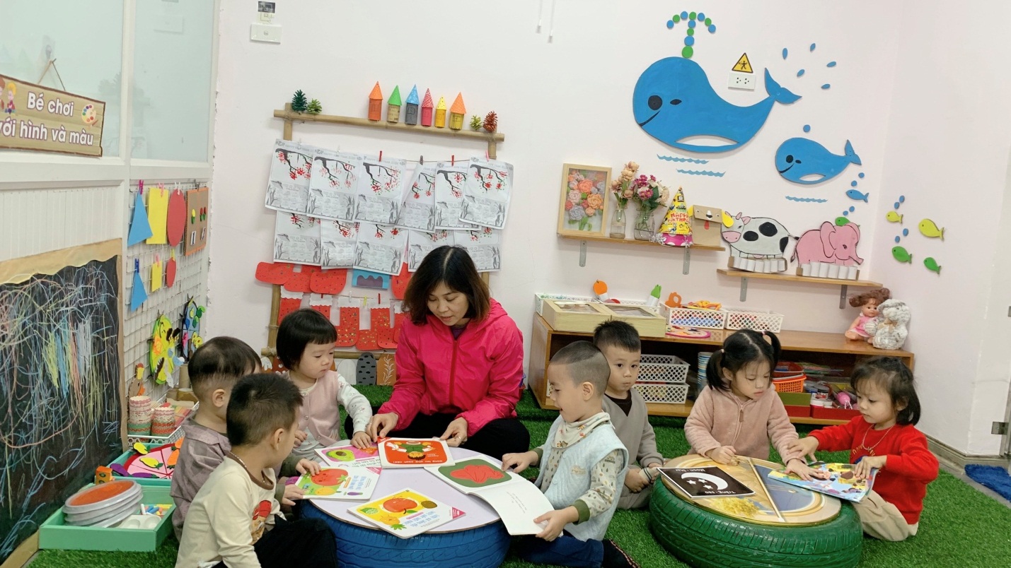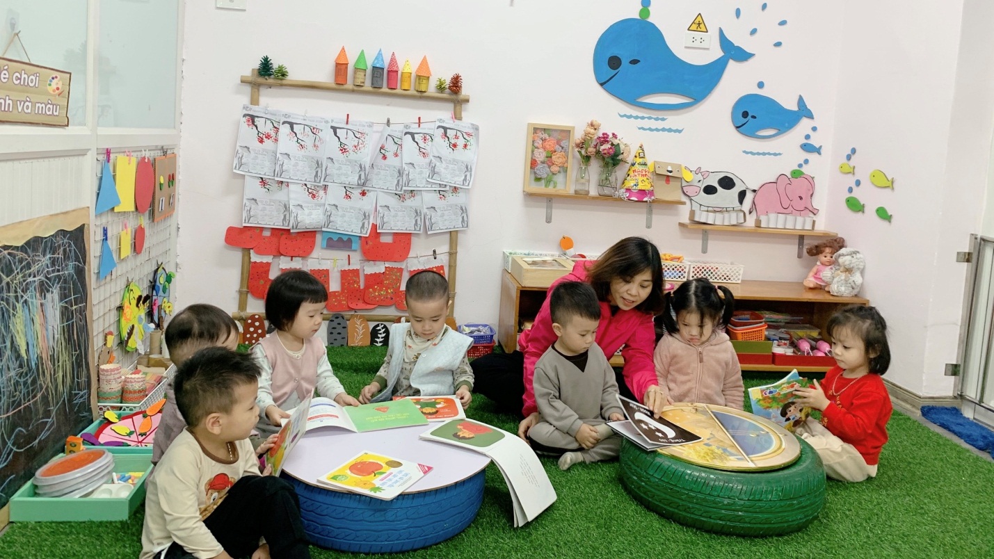 Bé được cô giới thiệu những câu chuyện bài thơ theo lứa tuổi.