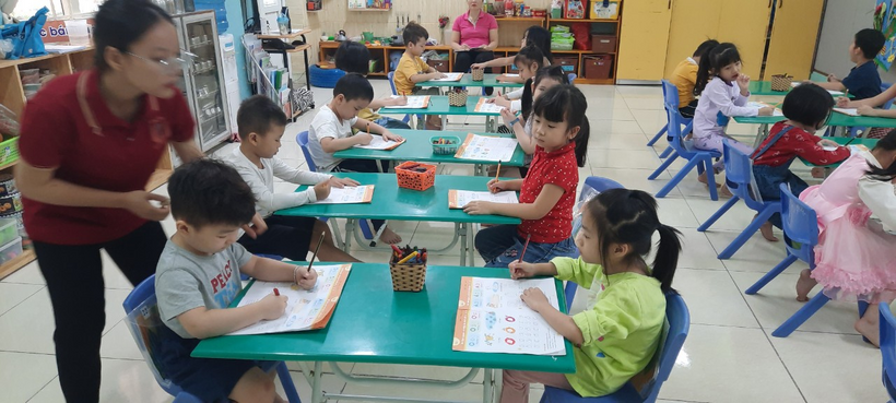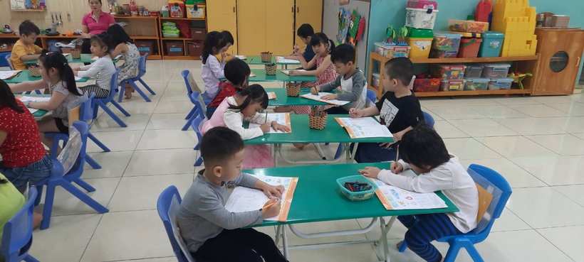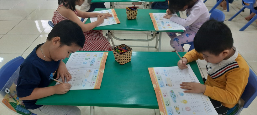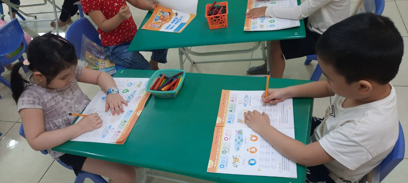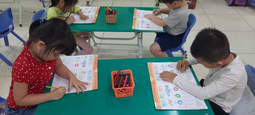 Các bé 5-6 tuổi với hoạt động Làm quen chữ viết: Tập tô chữ a, ă, â.