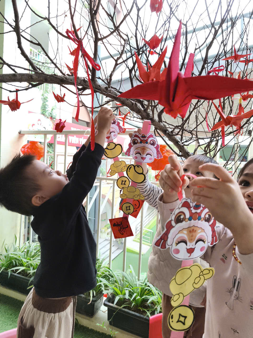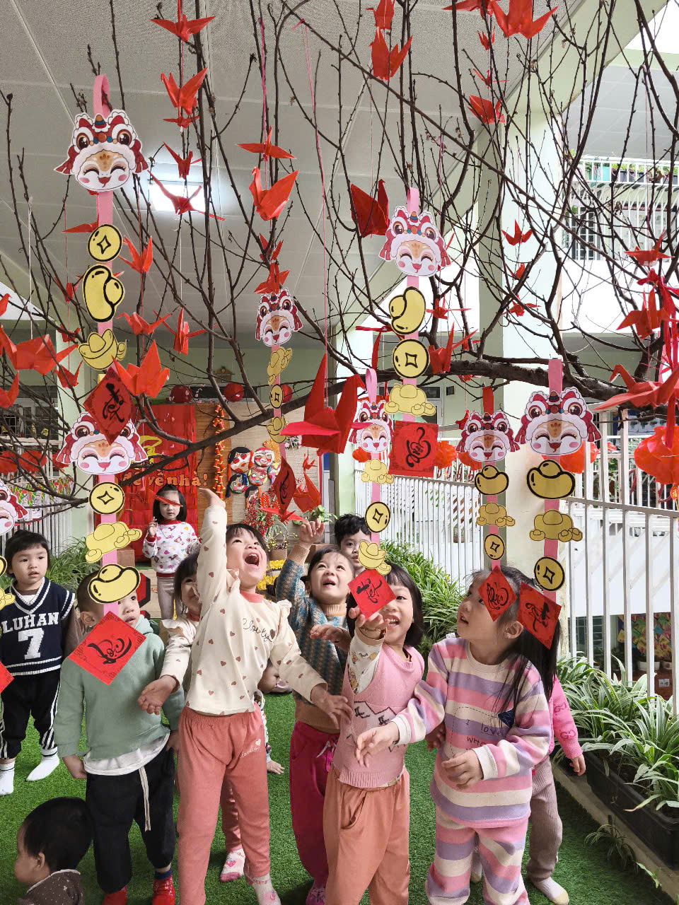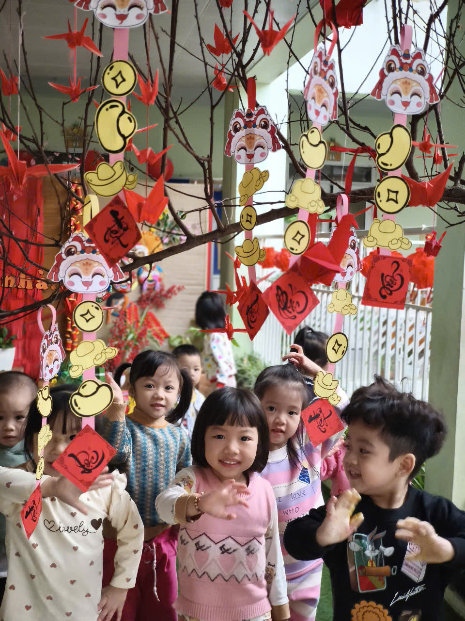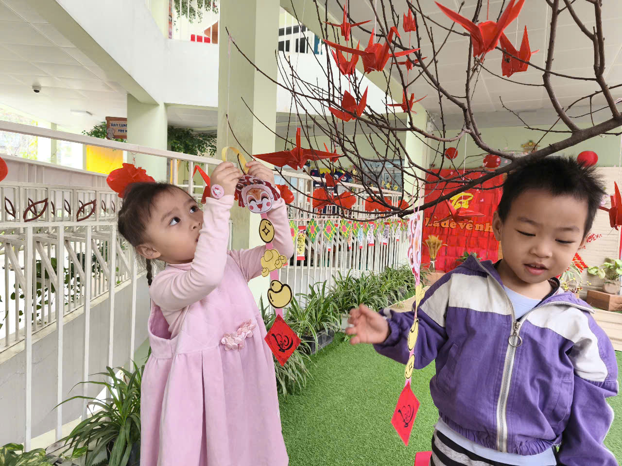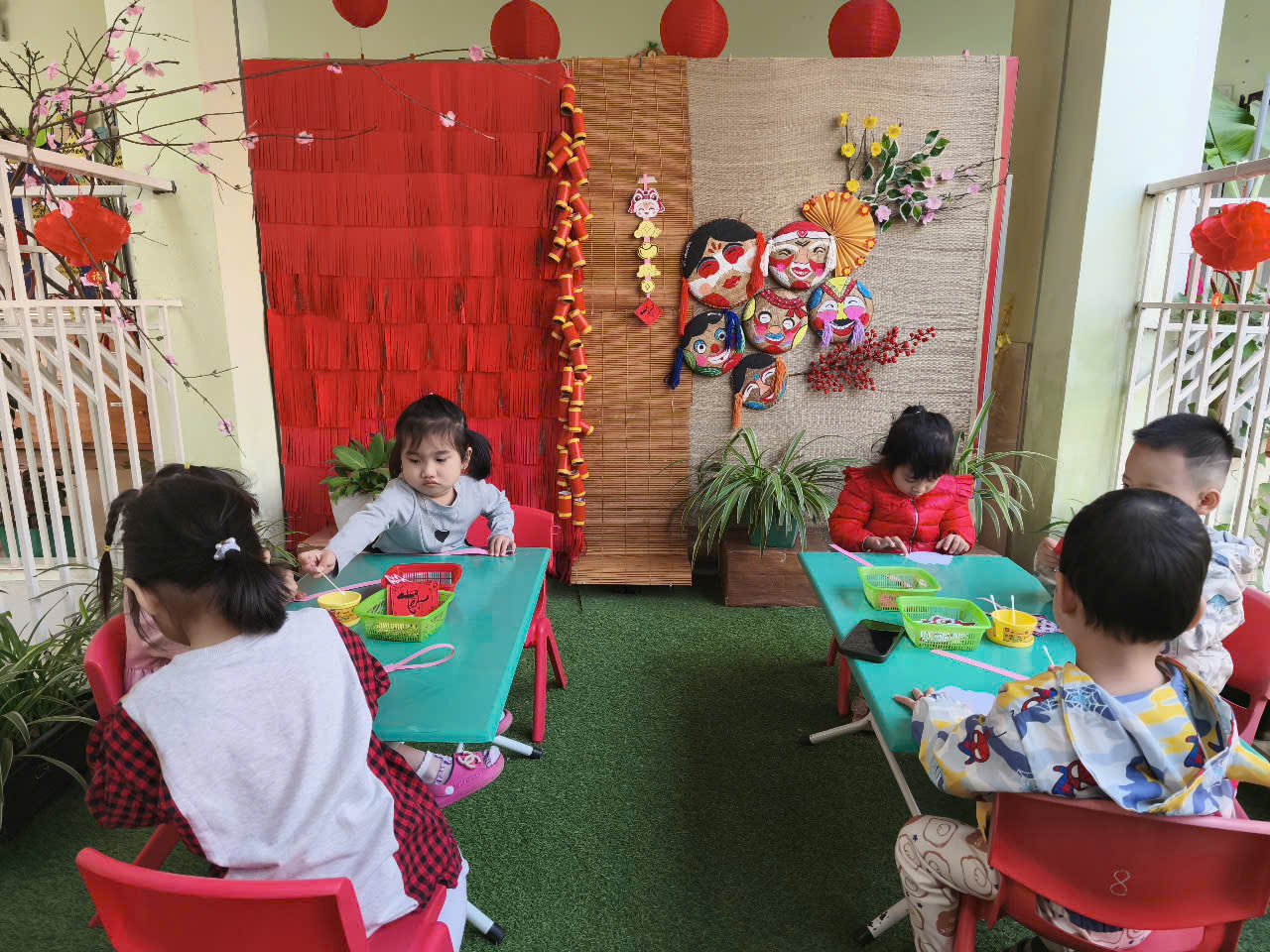 Các bé lớp C2 trường mầm non Họa Mi Ba ĐÌnh trang trí lớp đón Tết